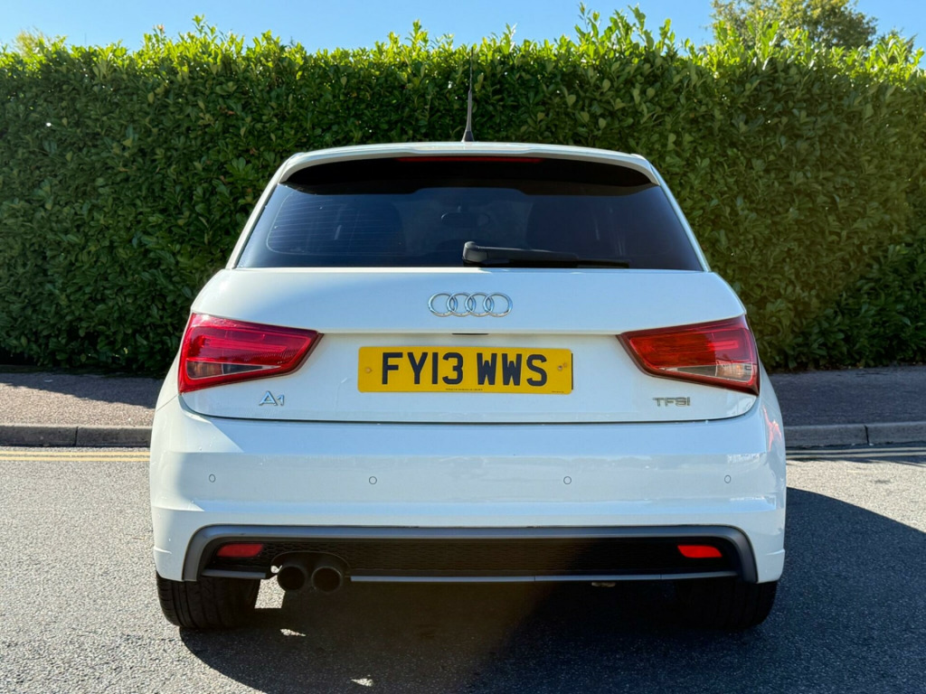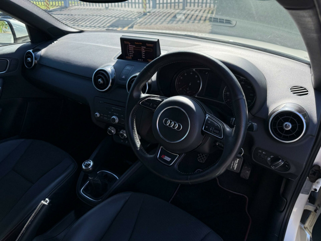 Sevenoaks Automotive are pleased to offer this lovely ulez compliant Audi A1 which is finished in amalfi white with black gloss wheels and black cloth upholstered seats. This vehicle has just been serviced and will come with a new 12 month MOT as well as a 3 month warranty with the option to extend. This 2013 Audi A1 TFSI S line comes with some great features including Mobile Telephone Preparation featuring a Bluetooth Interface, allowing for seamless connectivity on the go, and Air Conditioning to ensure a comfortable cabin environment in all conditions.Don't miss out on your chance to own this great car. Call us today to arrange a viewing. We work with several Finance companies, including Close Motor Finance, Blue Motor Finance and many more to make sure we are securing you the best possible finance rate.Part Ex Welcome, Low Rate HP & PCP Finance Available, Debit Cards Welcome. in alloy wheels - 5-twin-spoke design, 6.5in display screen, abs - anti-lock braking system, asr - anti slip regulation, aux-in socket, air conditioning, air vent sleeves - high gloss black, airbags - driver, airbags - front passenger, airbags - front side system, airbags - head system, alarm - thatcham category 1, aluminium trim for control switches, ambient lighting, anti theft locking wheel bolts, cloth headlining in black, concert radio - mp3-cd player, door handles - illuminated, door mirrors - body coloured with integrated indicators, door mirrors - electrically adjustable and heated, door sill trims - aluminium with s line logo, drivers information system - dis, ebd - electronic brakeforce distribution, edl - electronic differential lock, esp - electronic stability programme, electric windows - front and rear, first aid kit, floor mats, front fog lights, front passenger airbag deactivation switch, front reading lights, front sports seats, glovebox - illuminated, halogen headlights, handbrake grip - leather, head restraints - rear, heat insulating glass - windscreen and side windows, heated rear windscreen, heated windscreen washer jets, isofix child seat preparation for rear seats, illuminated footwell lighting, illuminated vanity mirrors, immobiliser, led interior light package, manually adjustable lumbar support in front seats, mobile telephone preparation - bluetooth interface, non-smoking package, power steering, remote central locking with 2 fold away keys, s line badges on wings, s line body styling, s line roof spoiler, s line suspension, sd card reader, seat belt reminder for all seats, seats - front height adjustment, split-folding rear seats, sport suspension, steering wheel - 3-spoke leather - multi-function - sports, steering wheel - height and reach adjustable, steering wheel - multi-function, tool kit and car jack, tyre repair kit, voice control - telephone, warning triangle, washer fluid level indicator