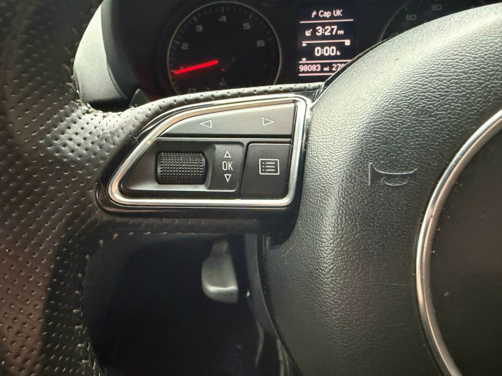 THREE MONTHS WARRANTY, 12 MONTHS MOT, BLUETOOTH, ko. 12V Power Socket - Centre Console, 17in Alloy Wheels - 10-Spoke Design High Gloss, ABS - Anti-Lock Braking System, AMI - Audi Music Interface, ASR - Anti Slip Regulation, AUX-IN Socket, Adaptive Brake Lights, Air Conditioning, Air Vent Sleeves - High Gloss Black, Airbags - Driver, Airbags - Front Passenger, Airbags - Front Side System, Airbags - Head System, Alarm - Thatcham Category 1, Aluminium Trim for Control Switches, Ambient Lighting, Anti Theft Locking Wheel Bolts, Audi Drive Select, Bluetooth Audio Streaming, Cloth Headlining in Black, Concert Radio - MP3-CD Player, Cup Holders - x2 in Centre Console, DAB Digital Radio, Dashboard - Black, Display Screen - 6.5in High Gloss Black, Display Screen Monochrome - 3.5in Dashboard Binnacle, Door Handles - Aluminium Look Trim, Door Handles - Illuminated, Door Mirrors - Body Coloured with Integrated Indicators, Door Mirrors - Electrically Adjustable and Heated, Door Sill Trims - Aluminium with S Line Logo, Door or Boot Open Warning, Drivers Information System - DIS, EBD - Electronic Brakeforce Distribution, EDL - Electronic Differential Lock, ESP - Electronic Stability Programme, Efficiency Program in the Drivers Information System - DIS, Electric Windows - Front and Rear, First Aid Kit, Floor Mats, Front Fog Lights, Front Passenger Airbag Deactivation Switch, Front Reading Lights, Front Sports Seats, Gear Knob - Leather Sports with Aluminium Trim, Glovebox - Illuminated, Handbrake Grip - Black Leather, Head Restraints - Rear, Headlights - Automatic Adjustment, Headlights - Bi-Xenon Plus, Headlights - Dynamic Range Control, Headlights Washers, Heat Insulating Glass - Windscreen and Side Windows, Heated Rear Windscreen, Heated Windscreen Washer Jets, ISOFIX Child Seat Preparation for Rear Seats with Top Tether, Illuminated Footwell Lighting, Illuminated Front Door Armrests, Illuminated Vanity Mirrors, Immobiliser, LED Daytime Running Lights, LED Interior Light Package, LED Rear Lights, Luggage Compartment - LED Light, Manually Adjustable Lumbar Support in Front Seats, Mobile Telephone Preparation - Bluetooth Interface, Non-Smoking Package, Outside Temperature Display, Platinum Grey Rear Bumper Diffuser Insert, Polished Tailpipes, Pollen Filter, Power Steering, Reflected Lighting for Centre Console, Remote Central Locking with 2 Fold Away Keys, S Line Badges on Wings, S Line Body Styling, S Line Roof Spoiler, SD Card Reader x2, Satellite Navigation System - Preparation, Seat Belt Reminder for All Seats, Seats - Front Height Adjustment, Seats - Front with Embossed S Line Logo, Secondary Collision Brake Assist, Speakers x6 - Front and Rear, Split-Folding Rear Seats, Steering Wheel - 3-Spoke Leather - Multi-function - Sports, Steering Wheel - Height and Reach Adjustable, Steering Wheel - Multi-function, Suspension - S Line, Tool Kit and Car Jack, Tow Away Protection and Interior Monitoring, Traction Control, Tyre Pressure Monitoring System, Tyre Repair Kit, USB Connection, Voice Control - Telephone, Warning Triangle, Washer Fluid Level Indicator.