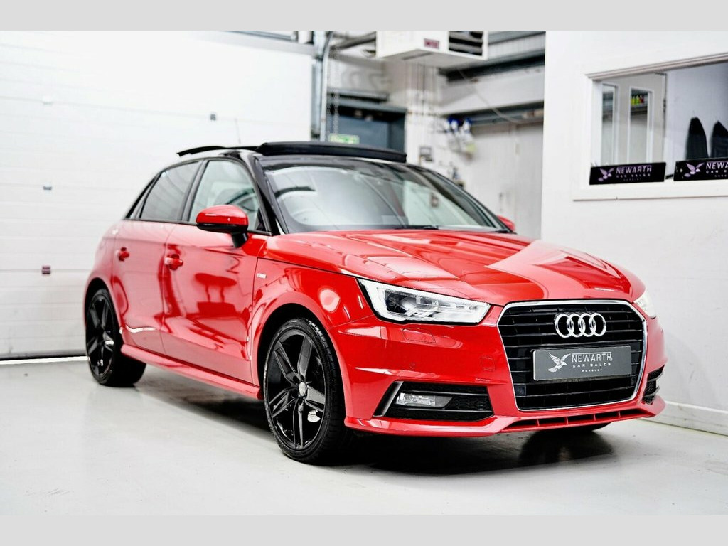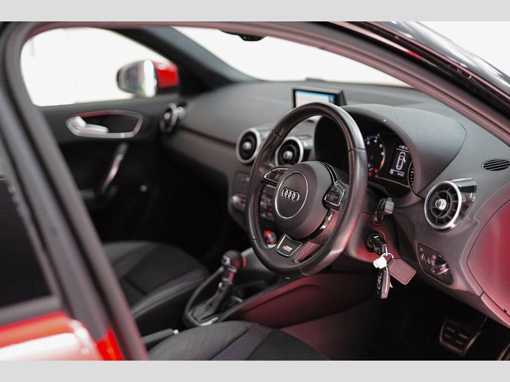 Misano Red A1 S Line - Panoramic Glass Sunroof Roof, Black Exterior Pack with Gloss Black 18" S Line Alloys, Privacy Glass Tinted Windows, LED DRL Headlights, Front & Rear Parking Sensors, Folding Heated Door Mirrors, Satellite Navigation, Bluetooth, AUX / USB, Media Interface, DAB Digital Radio, Climate Control AC, Steering Wheel Mounted Shifters, Cruise Control, Audi Drive Select, Background Lighting, Voice Control, Auto Lights, Auto Wipers, Black Edition Mats, Auto Dimming Rear View & Many More Fitted Features. Phone Lines Open 7 Days a Week. Free Local Deliveries on all Seen & Purchased Vehicles. Full Video Presentations Available on all Cars. Full Warranties available up to 2 Years with Zero Excess at Trade Cost. Low Rate PCP & HP Finance Available on Most Cars Up to 10 Years Old - Can Assist with Part Exchange. We Are FCA Regulated with Indoor Viewing Available. All Vehicles HPI Clear. We aim to offer the highest market part exchange value -------------- Available Now this Audi A1 S Line Auto Petrol has covered 43k Miles in Pearl Misano Red with Black Half Leather Interior. Documented Service History & Freshly Serviced for Sale. All Vehicles Subject to Full Health Check and/or Fresh MOT Before or at Point of Sale - LOW RATE FINANCE AVAILABLE TERMS APPLY // Consumer Credit Licence Number: 793202 // Any Further Questions Relating to this Car Please Call 0161 641 0078 or 07974600500 12V Power Socket - Centre Console, 17in Alloy Wheels - 10-Spoke Design High, ABS - Anti-Lock Braking System, AMI - Audi Music Interface, ASR - Anti Slip Regulation, AUX-IN Socket, Adaptive Brake Lights, Air Conditioning, Air Vent Sleeves - High Gloss Black, Airbags - Driver, Airbags - Front Passenger, Airbags - Front Side System, Airbags - Head System, Alarm - Thatcham Category 1, Aluminium Trim for Control Switches, Ambient Lighting, Anti Theft Locking Wheel Bolts, Audi Drive Select, Audi Hill Hold Assist, Bluetooth Audio Streaming, Cloth Headlining in Black, Concert Radio - MP3-CD Player, Cup Holders - x2 in Centre Console, DAB Digital Radio, Dashboard - Black, Display Screen - 6.5in High
