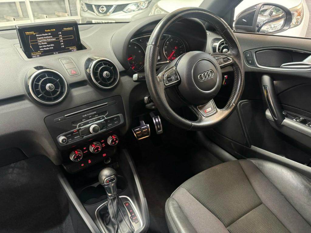 This 2016 Audi A1 TFSI S line offers a compelling blend of style and performance, boasting a recent full service in October 2025 at 73,000 miles, ensuring its readiness for the road with a fresh 12 months MOT provided on purchase. This Euro 6 compliant model features a dynamic 1.4 litre petrol engine, delivering an impressive 0-60mph acceleration in just 8.6 seconds. Its striking appearance is enhanced by a Floret Silver metallic contrast roof and a high gloss black styling package, while the S line trim adds a touch of sporty sophistication.Experience enhanced comfort and convenience with the Satellite Navigation, DAB Radio, Cruise control and Acoustic Parking System at the rear, making manoeuvring effortless. Inside, you'll find effective air conditioning to keep you comfortable in all conditions, and Bluetooth connectivity for seamless audio streaming and hands-free calls. The Audi A1 TFSI S line stands out with its low CO2 emissions, indicating a more environmentally conscious choice compared to many vehicles in its class, and its brisk acceleration further highlights its engaging driving experience.. 12V Power Socket - Centre Console, 17in Alloy Wheels - 10-Spoke Design High Gloss, ABS - Anti-Lock Braking System, AMI - Audi Music Interface, ASR - Anti Slip Regulation, AUX-IN Socket, Adaptive Brake Lights, Air Conditioning, Air Vent Sleeves - High Gloss Black, Airbags - Driver, Airbags - Front Passenger, Airbags - Front Side System, Airbags - Head System, Alarm - Thatcham Category 1, Aluminium Trim for Control Switches, Ambient Lighting, Anti Theft Locking Wheel Bolts, Audi Drive Select, Audi Hill Hold Assist, Bluetooth Audio Streaming, Cloth Headlining in Black, Concert Radio - MP3-CD Player, Cup Holders - x2 in Centre Console, DAB Digital Radio, Dashboard - Black, Display Screen - 6.5in High Gloss Black, Display Screen Monochrome - 3.5in Dashboard Binnacle, Door Handles - Aluminium Look Trim, Door Handles - Illuminated, Door Mirrors - Body Coloured with Integrated Indicators, Door Mirrors - Electrically Adjustable and Heated, Door Sill Trims - Aluminium with S Line Logo, Door or Boot Open Warning, Drivers Information System - DIS, EBD - Electronic Brakeforce Distribution, EDL - Electronic Differential Lock, ESP - Electronic Stability Programme, Efficiency Program in the Drivers Information System - DIS, Electric Windows - Front and Rear, First Aid Kit, Floor Mats, Front Fog Lights, Front Passenger Airbag Deactivation Switch, Front Reading Lights, Front Sports Seats, Gear Knob - Leather Sports with Aluminium Trim, Glovebox - Illuminated, Handbrake Grip - Black Leather, Head Restraints - Rear, Headlights - Automatic Adjustment, Headlights - Bi-Xenon Plus, Headlights - Dynamic Range Control, Headlights Washers, Heat Insulating Glass - Windscreen and Side Windows, Heated Rear Windscreen, Heated Windscreen Washer Jets, ISOFIX Child Seat Preparation for Rear Seats with Top Tether, Illuminated Footwell Lighting, Illuminated Front Door Armrests, Illuminated Vanity Mirrors, Immobiliser, LED Daytime Running Lights, LED Interior Light Package, LED Rear Lights, Luggage Compartment - LED Light, Manually Adjustable Lumbar Support in Front Seats, Mobile Telephone Preparation - Bluetooth Interface, Non-Smoking Package, Outside Temperature Display, Platinum Grey Rear Bumper Diffuser Insert, Polished Tailpipes, Pollen Filter, Power Steering, Reflected Lighting for Centre Console, Remote Central Locking with 2 Fold Away Keys, S Line Badges on Wings, S Line Body Styling, S Line Roof Spoiler, SD Card Reader x2, Satellite Navigation System - Preparation, Seat Belt Reminder for All Seats, Seats - Front Height Adjustment, Seats - Front with Embossed S Line Logo, Secondary Collision Brake Assist, Speakers x6 - Front and Rear, Split-Folding Rear Seats, Steering Wheel - 3-Spoke Leather - Multi-function - Sports - Shift Paddles, Steering Wheel - Gear Shift Paddles, Steering Wheel - Height and Reach Adjustable, Steering Wheel - Multi-function, Suspension - S Line, Tool Kit and Car Jack, Tow Away Protection and Interior Monitoring, Traction Control, Tyre Pressure Monitoring System, Tyre Repair Kit, USB Connection, Voice Control - Telephone, Warning Triangle, Washer Fluid Level Indicator, Satellite Navigation System - SD Card Based, Contrast Roof - Floret Silver - Metallic, High-Gloss Black Styling Package, Acoustic Parking System - Rear.