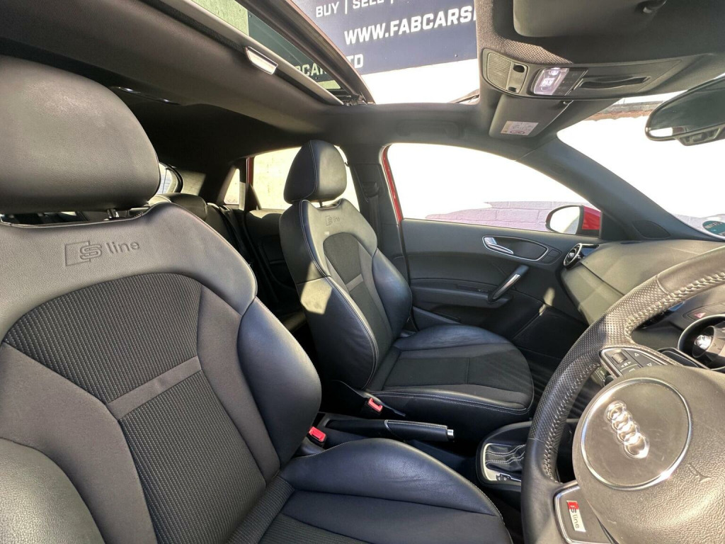 FAB CARS LTD take great pleasure in presenting this stunning Audi A1 1.4 TFSI S line Sportback S Tronic Euro 6 (s/s) 5dr (Nav)This specific model features the 1.4 TFSI petrol engine, S Tronic automatic gearbox, S line trim, and Sportback (5-door) configuration, making it a well-rounded urban runabout with a sporty edge. Engine: 1.4-litre 4-cylinder turbocharged petrol (TFSI) Power Output 123Bhp, with a 7-speed S Tronic dual-clutch automatic gearbox, The A1 S line has a premium, athletic appearance. Design highlights include, Sporty body kit (deeper bumpers, side skirts, rear diffuser) LED DRL, 17 Black gloss alloys, Aggressive front grille & sculpted lines, 5-door Sportback body style for added practicality. The cars compact footprint makes it excellent for urban parking, Audi interiors are among the best in the business, & the A1 doesnt disappoint. The cabin feels tightly screwed together with high-quality materials throughout. The front seats are Heated & supportive, & sporty, especially in S line trim with part-leather upholstery. Infotainment MMI Display, Pan Roof, Sat Nav, Cruise control, DAB Rear PDC, Auto lights, Isofix, Just serviced, with full Audi service history, RARE car. FREE 6 months nationwide warranty covering electrical & mechanical parts + VAT + Labour. *Option to extended warranty to 12, 24, 36 months. *We can offer a nationwide delivery. Bespoke finance packages available HPI Clear, V5 & all relevant car docs. This lovely car looks & drives superb. At FAB CARS LTD we dont just sell cars, we do everything possible to get you on the road with your perfect vehicle. Check our great reviews. All cars Prepped to a high standard, *Most cars can be driven away the same day. We pride ourselves on our fantastic 5-star reputation, repeat business & referrals from many happy customers. All Payment methods accepted. Independent mechanical inspection welcome. test drive with a no pressure relaxed environment. P/X considered. Viewing Appointment only. Please call for more information, or to arrange an appointment on 01702568190
