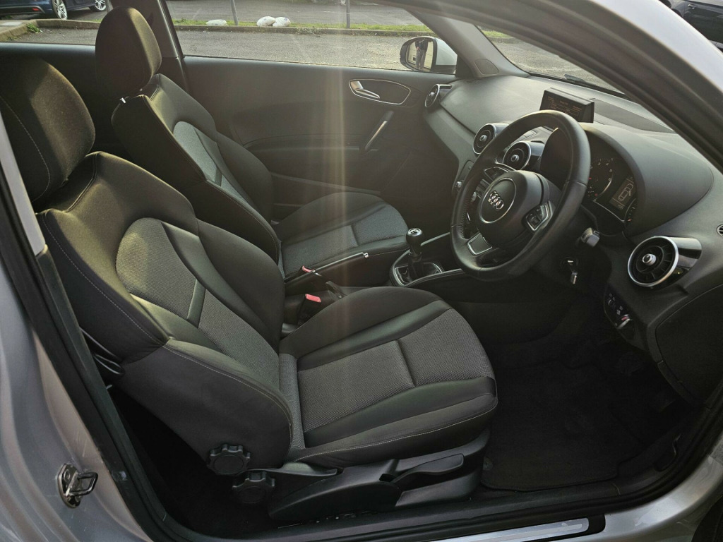 Kingston Cars and Vans present this nice clean A1 1.4 TFSI Sport 3dr in one of the best colour combo and Good Spec of options ,Genuine Mileage and Excellent 1.4l petrol engine, Full Service History with 12 stamps , Last Full Service done 50 miles ago, including (Oil ,Oil Filter,Air Filter,Cabin Filter ,Front &Rear Disc and Pads) , MOT until January/2027 , Very stylish A1 1.4 l with wonderful colour , Fantastic Engine and Nice and Smooth 6 Speed Manual Gearbox. Finished in stunning Ice Silver Metallic with Sports Seats in Grey Cloth and Garnet Black leather and Aluminium dashboard trim, Sport spec includes: 16'' Multi Spoke Arm Design Alloy wheels , Multifunction leather steering wheel ,Rear Parking Sensors,Audi Infotainment & Music Interface, Bluetooth connectivity,Cruise Control, Sports front seats with height adjustment, Audi MMI System, Aux connection for playing deices , Stability and traction control,Audi anti theft alarm and immobiliser ,Electric windows, Manual Air Condition ,Electrically /Adjustable/ Heated door mirrors,Remote central locking,Tool kit, Spare Wheel, All documents and User handbooks, Set of 2 remote keys etc. Covered just 62k genuine miles with full Service History ,The vehicle is Completely Original and Unmodified, Excellent exterior condition, very nice and clean non smoking interior, Powerful and economical 1.4l petrol engine with 122 Bhp,Vehicle can return 62 MPG on a long run and drives superbly,HPI Checked and clear with certificate ,Road tax is £150 per year and can be purchase online,3 months parts and labour Warranty by Autoguard Warranty included in the price, P/X welcome,Viewing by appointment so please call or mail us, for more stock please visit our website-www.kingstoncarsandvans.co.uk oustic parking system- rear, audi sound system, bluetooth phone prep- low, cruise control, flat tyre warning indicator, light & rain sensor pack, cloth- tornado- black, 16in 10spoke alloy wheels, 6 speakers, air conditioning, air vents - high gloss black, alarm - thatcham category 1, body coloured roof line, concert radio & cd player with mp3 sd card reader & aux input socket, delete engine designation at rear, deletion of model & engine designation at rear, dynamic suspension, high gloss red garnet air vent sleeves when with media style pack, high gloss white air vent sleeves when with media style pack, high gloss velvet beige air vent sleeves when with media style pack, high gloss wasabi green air vent sleeves when with media style pack, immobiliser, mobile telephone preparation- bluetooth interface, non smoking pack, sports suspension