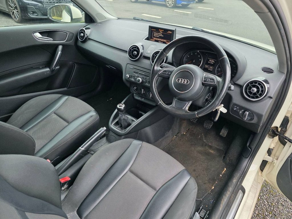 Moto Vation Car Sales are proud to present this Audi A1 in the most desirable colour with half Black Leather interior and Alloy wheels! Low miles for the age- 79K and it is clear it has been loved by its previous owners from new. Would make a great 1st time car with its low running and insurance costs. Supplied with a long MOT until 20/11/26 and full service History attached with 13 stamps- last in 01/26! Bosting a great specification with a Multi Functional Steering Wheel, 17" Alloys, Electric Windows, Parking Sensors, Bluetooth, AUX, USB, Voice Command, Isofix and Auto Headlights. £165 Annual Tax. Please confirm with a Sales Executive how many keys this vehicle comes with. All of our vehicles come with a 3 months Nationwide warranty and a 12 months basic AA breakdown cover. Please read our reviews! Please note- the above vehicle specification is confirmed and correct. The vehicle specification listed elsewhere may sometimes be inaccurate so please check with the Sales team when enquiring to clarify this prior to purchase. Glacier White, Cruise Control, Audi Sound System, Tyre Pressure Loss Indicator, 6CD Changer, 16in Alloy Wheels - 10-Spoke Design, 6.5in Display Screen, ABS - Anti-Lock Braking System, ASR - Anti Slip Regulation, AUX-IN Socket, Air Conditioning, Air Vent Sleeves - High Gloss Black, Airbags - Driver, Airbags - Front Passenger, Airbags - Front Side System, Airbags - Head System, Alarm - Thatcham Category 1, Aluminium Trim for Control Switches, Anti Theft Locking Wheel Bolts, Concert Radio - MP3-CD Player, Door Mirrors - Body Coloured with Integr, Door Mirrors - Electrically Adjustable a, Drivers Information System - DIS, EBD - Electronic Brakeforce Distribution, EDL - Electronic Differential Lo