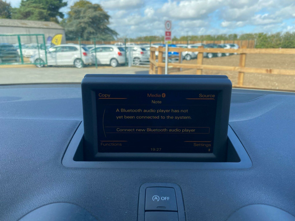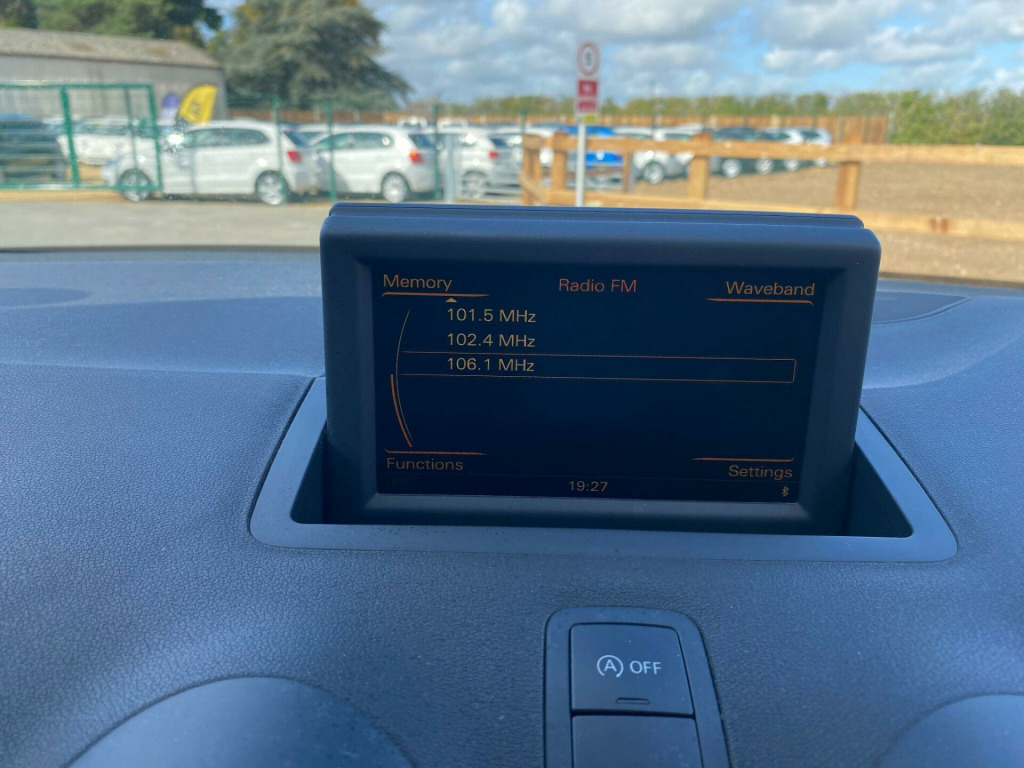 . 16in Alloy Wheels - 10-Spoke Design, 6.5in Display Screen, ABS - Anti-Lock Braking System, ASR - Anti Slip Regulation, AUX-IN Socket, Air Conditioning, Air Vent Sleeves - High Gloss Black, Airbags - Driver, Airbags - Front Passenger, Airbags - Front Side System, Airbags - Head System, Alarm - Thatcham Category 1, Aluminium Trim for Control Switches, Anti Theft Locking Wheel Bolts, Audi Hill Hold Assist, Concert Radio - MP3-CD Player, DAB Digital Radio, Door Mirrors - Body Coloured with Integrated Indicators, Door Mirrors - Electrically Adjustable and Heated, Drivers Information System - DIS, EBD - Electronic Brakeforce Distribution, EDL - Electronic Differential Lock, ESP - Electronic Stability Programme, Electric Windows - Front, First Aid Kit, Floor Mats, Front Fog Lights, Front Passenger Airbag Deactivation Switch, Front Sports Seats, Glovebox - Illuminated, Halogen Headlights, Handbrake Grip - Leather, Head Restraints - Rear, Heat Insulating Glass - Windscreen and Side Windows, Heated Rear Windscreen, Heated Windscreen Washer Jets, ISOFIX Child Seat Preparation for Rear Seats, Immobiliser, Manually Adjustable Lumbar Support in Front Seats, Mobile Telephone Preparation - Bluetooth Interface, Non-Smoking Package, Power Steering, Remote Central Locking with 2 Fold Away Keys, SD Card Reader, Seat Belt Reminder for All Seats, Seats - Front Easy Entry, Seats - Front Height Adjustment, Split-Folding Rear Seats, Steering Wheel - 3-Spoke Leather - Multi-function - Sports - Shift Paddles, Steering Wheel - Height and Reach Adjustable, Steering Wheel - Multi-function, Tool Kit and Car Jack, Tyre Repair Kit, Voice Control - Telephone, Warning Triangle, Washer Fluid Level Indicator.