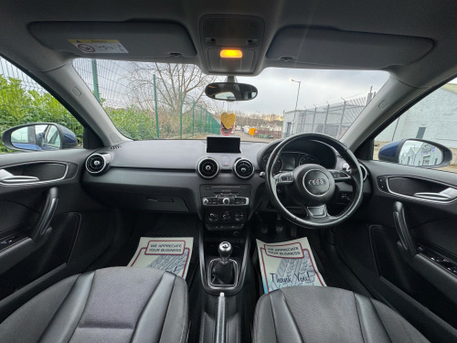 This 2018 Audi A1 1.4 TFSI Sport Sportback 5dr Petrol Manual Euro 6 (s/s) (Nav) (125 ps) is a sleek and efficient hatchback with only 92466 miles on the clock. It runs on petrol and is ULEZ compliant, ensuring it meets the latest emissions standards. With 5 seats and 5 doors, it's spacious and practical for everyday use., giving you peace of mind for the road ahead. The car features 16in Alloy Wheels, Anti Theft Locking Wheel Bolts, and Electric Windows, providing both style and convenience. The body-coloured door mirrors are electrically adjustable and heated, adding to the vehicle's modern appeal. Perfect for those seeking a reliable and stylish ride, this Audi A1 is ready to hit the road. in alloy wheels - 5-spoke sport design, anti theft locking wheel bolts, door mirrors - body coloured with integrated indicators, door mirrors - electrically adjustable and heated, electric windows - front and rear, heat insulating glass - windscreen and side windows, heated rear windscreen, polished tailpipes, tyre repair kit, 6.5in mmi display screen in high-gloss black - manually retractable, ami - audi music interface, aux-in socket, concert radio, dab digital radio, mobile telephone preparation - bluetooth interface, sd card reader, satellite navigation system - sd card based, usb charging adaptor, acoustic parking system - rear, audi drive select, cruise control, drivers information system - dis, electromechanical power steering, sport suspension, tyre pressure monitoring system, voice control of key telephone and radio functions, washer fluid level indicator, adaptive brake lights, driver - front passenger - front side and head airbag system, esc - electronic stabilisation control, first aid kit, front passenger airbag deactivation switch, hill hold assist, isofix child seat mounting, remote central locking with 2 fold away keys, seat belt height adjustment for front seats, seat belt monitoring, secondary collision brake assist, thatcham category 1 alarm and immobiliser, three-point seat belts, warning triangle, air conditioning, air vent sleeves - high gloss black, aluminium trim for control switches-glove compartment-door handles-door sills, centre console with two cup holders and 12v socket, connectivity package, door sill trims - aluminium, driver and front passenger seats with manual height-forwards and backwards adjustment, front floor mats, glovebox - illuminated, head restraints - rear, headlining - titanium grey cloth, leather handbrake grip and sports gear knob with aluminium trim, manually adjustable lumbar support in front seats, rear fog lights, split folding rear seat, steering wheel - 3-spoke leather - multi-function - sports, steering wheel - height and reach adjustable, three rear seats, tool kit and car jack, front fog lights, halogen headlights