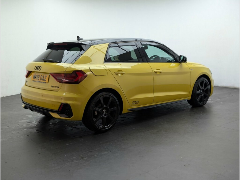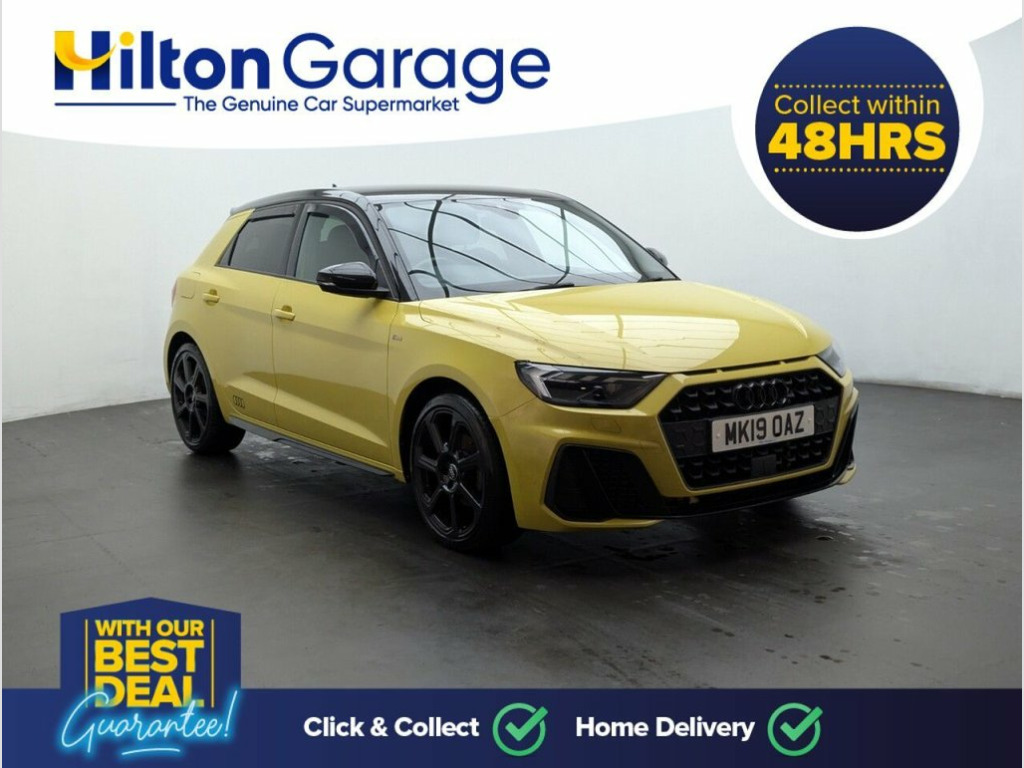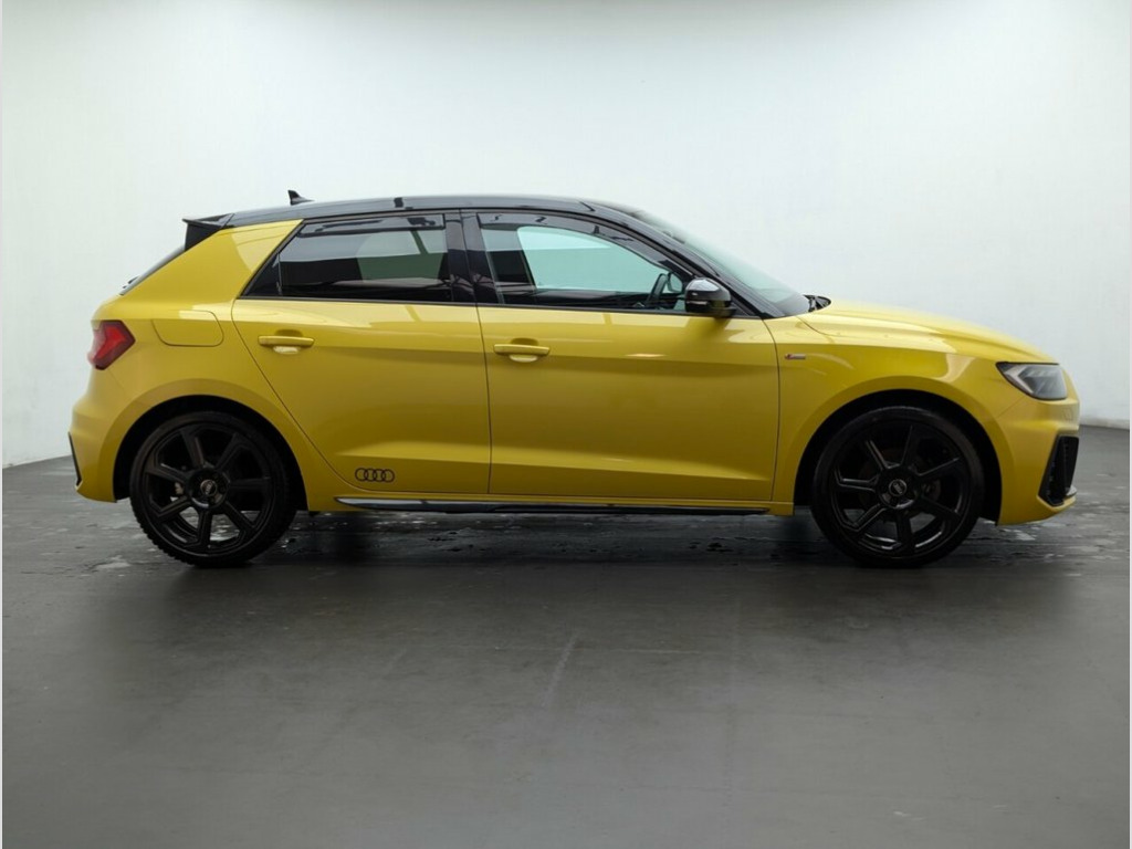Great looking Audi A1 in Yellow with Privacy Glass - Parking Sensors - Heated Rear Windscreen - Cruise Control - 18" Alloy Wheels   Last serviced at 12/04/2023 at 31k  This 2019 Audi A1 TFSI S line Contrast Edition boasts an MOT valid until August 2026, offering you peace of mind for the road ahead. This stylish hatchback features a 1.5 litre petrol engine, meeting Euro 6 emissions standards, and comes equipped with a range of desirable features. You'll find rear parking sensors to aid manoeuvring, automatic headlights that activate with the light and rain sensor, and striking darkened LED headlights with dynamic rear indicators. Inside, enjoy the convenience of a Bluetooth interface for seamless connectivity and air conditioning to keep you comfortable in all conditions.  The Audi A1 TFSI S line Contrast Edition offers a compelling blend of performance and practicality. Its acceleration from 0 to 60 miles per hour in just 7.7 seconds demonstrates its responsive nature, making it a joy to drive. Furthermore, its low CO2 emissions indicate a more environmentally conscious choice compared to many similar vehicles. You'll also appreciate the generous boot space, providing ample room for shopping, luggage, or any other essentials you need to carry. 1 x USB-C and 1 x USB-A Charging Points, 10.25in Digital Instrument Cluster, 18in Alloy Wheels - 7.5J 7-Spoke Rotor D, 6 Passive Loud Speakers, Air Conditioning, Aluminium Trim for Control Switches - Ai, Anti Theft Locking Wheel Bolts, Anti-Theft Alarm, Audi Connect Emergency and Service with , Audi Drive Select, Audi Pre-Sense Front with Pedestrian and, Audi Rings Logo Foil in Black, Audi Smartphone Interface, Auto-Dimming Rear-View Mirror, Black Styling Package with Black Rings, Bluetooth Interface, Body Coloured Side Sill, Centre Console with Two Cup Holders and , Cloth Headlining in Black, Contrast Roof - Mythos Black - Metallic, Cruise Control, DAB Digital Radio, Darkened LED Headlights