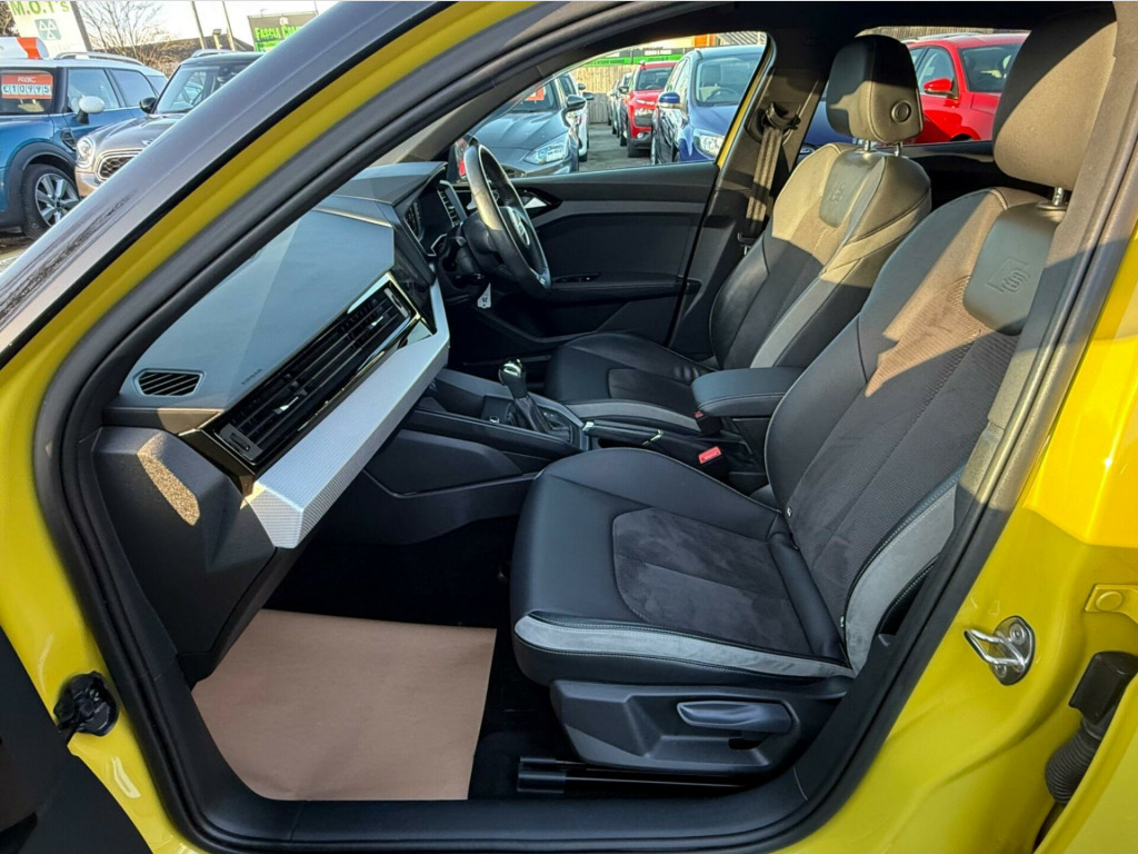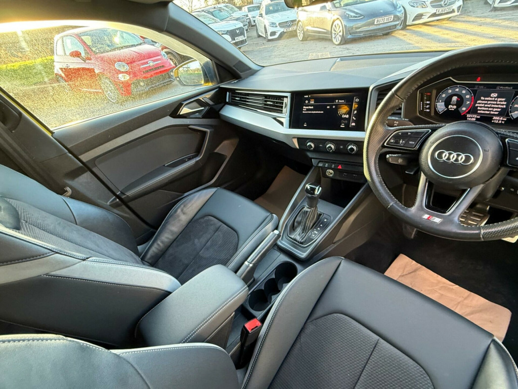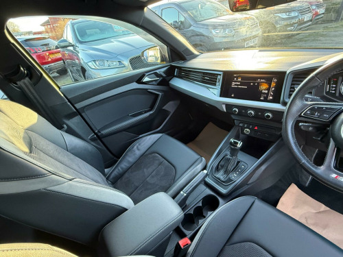 This 2019 Audi A1 TFSI S line Contrast Edition boasts a clear vehicle history, offering you peace of mind. This stylish hatchback features a 1.5 litre petrol engine, meeting Euro 6 emissions standards. Inside, you'll find a comfortable cabin equipped with air conditioning and a Bluetooth interface for seamless connectivity. The S line Contrast Edition trim adds a touch of sophistication, while practical features like a light and rain sensor, automatic LED headlights with dynamic rear indicators, and rear parking sensors enhance your driving experience.Experience impressive performance with this Audi A1, capable of accelerating from 0 to 62 miles per hour in just 7.7 seconds, demonstrating its agility. The generous boot space ensures you have ample room for your luggage or shopping, making it a versatile choice for everyday life. Furthermore, its low CO2 emissions indicate that this vehicle is more environmentally conscious and potentially more economical to run compared to similar models. chnology package, 1 x usb-c and 1 x usb-a charging points, 10.25in digital instrument cluster, 18in alloy wheels - 7.5j 7-spoke rotor design - gloss anthracite black - diamond turned, 6 passive loud speakers, air conditioning, aluminium trim for control switches - air vents and digital instrument cluster, anti theft locking wheel bolts, anti-theft alarm, audi connect emergency and service with e-call, audi drive select, audi pre-sense front with pedestrian and cyclist recognition, audi rings logo foil in black, audi smartphone interface, auto-dimming rear-view mirror, black styling package with black rings, bluetooth interface, body coloured side sill, centre console with two cup holders and 12v socket, cloth headlining in black, contrast roof - mythos black - metallic, cruise control, dab digital radio, darkened led headlights with dynamic rear indicators, door mirrors - contrast colour, door mirrors - electrically adjustable and heated with integrated led side indicators, door sill trims - aluminium with s line logo, driver - front passenger - front side and head airbag system, driver and front passenger seats with manual height-forwards and backwards adjustment, esc - electronic stabilisation control inc abs - ebd - asr - edl, electric windows - front and rear, electromechanical power steering, first aid kit and warning triangle, front passenger airbag deactivation switch, front spoiler clip - rear diffuser clip in matt platinum grey, front and rear floor mats, gear knob in leather with aluminium trim, head restraints - rear, heat insulating glass - windscreen and side windows, heated rear windscreen, hill hold assist, isofix child seat mounting for front passenger and rear outer seats, inlays in polygon structure - silver grey diamond paint - accent areas in structure grey quartz paint, interior lighting - front and rear reading lights and luggage compartment light, led interior light package, lane departure warning, leatherette handbrake grip, light and rain sensor, mmi radio plus with 8.8 mmi colour display screen and mmi touch, manually adjustable lumbar support in front seats, pedals in stainless steel, privacy glass, radiator protective grille frame in matt aluminium silver, rear fog lights, rear parking sensors, remote central locking with 2 fold away keys, s line badges on the front wings, s line roof spoiler, sd card reader, seat belt height adjustment for front seats, seat belt monitoring, side air inlet frames in titanium black, speed limiter, split folding rear seat, sport suspension, steering wheel - 3-spoke leather - multi-function plus with s badging, steering wheel - height and reach adjustable, tailpipe trims in matt aluminium silver, tool kit and car jack, tyre pressure warning light, tyre repair kit, voice control, washer fluid level indicator