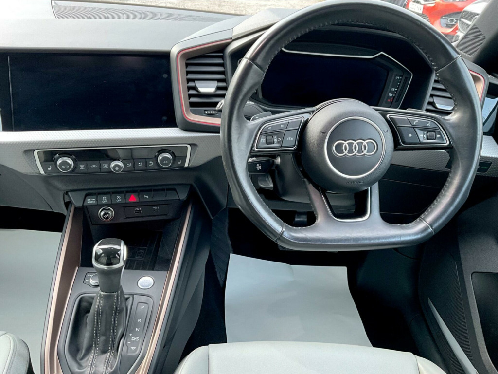 This 2019 Audi A1 TFSI S line Style Edition offers a compelling blend of style and performance, making it a standout choice in its class. As a Euro 6 compliant vehicle, it demonstrates a commitment to lower emissions. This particular model boasts a responsive 1.5 litre petrol engine, paired with the sophisticated S line Style Edition trim, ensuring a refined driving experience. Notable features include air conditioning for comfort in all conditions, darkened LED headlights with dynamic rear indicators for enhanced visibility and a modern aesthetic, and rear parking sensors to aid manoeuvrability. Connectivity is also a strong point, with a Bluetooth interface allowing for seamless integration of your devices, and a light and rain sensor that automatically adjusts headlights and wipers.The Audi A1 TFSI S line Style Edition truly shines with its impressive acceleration, reaching 0 to 62 miles per hour in just 7.7 seconds, indicating a more spirited performance compared to many vehicles in its segment. Furthermore, its low CO2 emissions highlight its efficiency, suggesting lower running costs and a reduced environmental impact. Practicality is not overlooked, with a large boot space offering ample room for shopping, luggage, or equipment, making it a versatile option for everyday use and longer journeys alike.. 1 x USB-C and 1 x USB-A Charging Points, 10.25in Digital Instrument Cluster, 18in Alloy Wheels - 5-Spoke Y Design - Bronze - Partly Polished, 6 Passive Loud Speakers, Air Conditioning, Aluminium Trim for Control Switches - Air Vents and Digital Instrument Cluster, Anti Theft Locking Wheel Bolts, Anti-Theft Alarm, Armrests in Leatherette with Contrast Stitching in Copper, Audi Connect Emergency and Service with E-Call, Audi Drive Select, Audi Pre-Sense Front with Pedestrian and Cyclist Recognition, Audi Rings Logo Foil in Bronze, Audi Smartphone Interface, Auto-Dimming Rear-View Mirror, Black Styling Package with Black Rings, Bluetooth Interface, Body Coloured Side Sill, Centre Console with Two Cup Holders and 12V Socket, Cloth Headlining in Black, Contrast Roof - Mythos Black - Metallic, Cruise Control, DAB Digital Radio, Darkened LED Headlights with Dynamic Rear Indicators, Door Mirrors - Contrast Colour, Door Mirrors - Electrically Adjustable and Heated with Integrated LED Side Indicators, Door Sill Trims - Aluminium, Driver - Front Passenger - Front Side and Head Airbag System, Driver and Front Passenger Seats with Manual Height-Forwards and Backwards Adjustment, ESC - Electronic Stabilisation Control inc ABS - EBD - ASR - EDL, Electric Windows - Front and Rear, Electromechanical Power Steering, First Aid Kit and Warning Triangle, Front Passenger Airbag Deactivation Switch, Front Spoiler Clip - Rear Diffuser Clip in Matt Platinum Grey, Front and Rear Floor Mats, Gear Knob in Leather with Aluminium Trim, Head Restraints - Rear, Heat Insulating Glass - Windscreen and Side Windows, Heated Rear Windscreen, Hill Hold Assist, ISOFIX Child Seat Mounting for Front Passenger and Rear Outer Seats, Inlays in Polygon Structure - Iron Grey Fine Paint - Accent Areas in Copper Satin Paint, Interior Lighting - Front and Rear Reading Lights and Luggage Compartment Light, LED Ambient Lighting Pack - Coloured, Lane Departure Warning, Leatherette Handbrake Grip, Light and Rain Sensor, MMI Radio Plus with 8.8 MMI Colour Display Screen and MMI Touch, Manually Adjustable Lumbar Support in Front Seats, Pedals in Black, Privacy Glass, Radiator Protective Grille Frame in Matt Aluminium Silver, Rear Fog Lights, Rear Parking Sensors, Remote Central Locking with 2 Fold Away Keys, S Line Badges on the Front Wings, S Line Roof Spoiler, SD Card Reader, Seat Belt Height Adjustment for Front Seats, Seat Belt Monitoring, Side Air Inlet Frames in Titanium Black, Speed Limiter, Split Folding Rear Seat, Sport Suspension, Steering Wheel - 3-Spoke Leather - Multi-Function Plus, Steering Wheel - Height and Reach Adjustable, Tailpipe Trims in Matt Aluminium Silver, Tool Kit and Car Jack, Tyre Pressure Warning Light, Tyre Repair Kit, Voice Control, Washer Fluid Level Indicator.