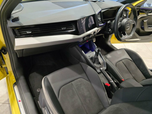 Experience the perfect blend of performance, luxury, and cutting-edge technology with the 2020 Audi A1 1.5 TFSI 35 Vorsprung Sportback. Powered by a 1.5L turbocharged petrol engine delivering 150 PS, this hatchback accelerates from 0 to 62 mph in just 7.7 seconds, offering a dynamic driving experience. The 7-speed S Tronic automatic transmission ensures seamless gear shifts, while the Audi Drive Select system allows you to tailor the driving dynamics to your preference. The Vorsprung trim is the pinnacle of the A1 lineup, boasting 18" diamond-cut alloy wheels, a Black Styling Pack, and LED headlights with dynamic indicators, all contributing to its striking appearance. Inside, the cabin features premium Alcantara/leatherette upholstery, a flat-bottomed leather steering wheel, and multicoloured LED ambient lighting, creating an inviting atmosphere. The Technology Pack includes a 10.25" digital instrument cluster and advanced connectivity options, keeping you informed and entertained on every journey. Safety is paramount, with features like Audi Pre-Sense Front, adaptive cruise control, lane departure warning, and a 5-star Euro NCAP rating, ensuring peace of mind for you and your passengers. With a combined fuel economy of approximately 45.6 mpg and CO? emissions of 117 g/km, the A1 Vorsprung is both efficient and environmentally conscious. This 2020 model, finished in Chronos Grey Metallic, offers a rare opportunity to own a top-spec Audi A1 with low mileage and e Contrast Roof - Mythos Black - Metallic, Python Yellow