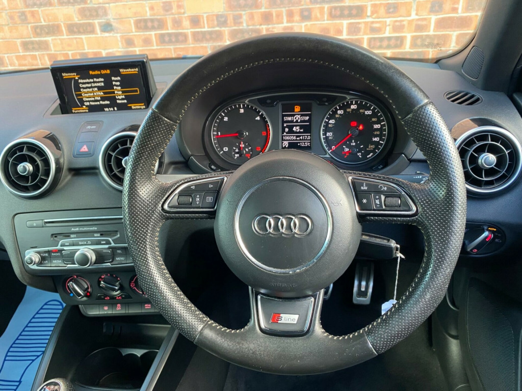 SERVICE INTERVALS AT 95K, 99K, 101KThis 2015 Audi A1 TDI S line offers an exceptional blend of style and efficiency, making it a standout choice. Powered by a 1.6 litre diesel engine, this Euro 6 compliant model boasts impressive performance with a 0-60mph time of just 9.1 seconds. Inside, you'll find a comfortable and well equipped cabin featuring air conditioning for those warmer days and S line trim for a sportier feel. Connectivity is also a strong point, with Bluetooth audio streaming and mobile telephone preparation ensuring you can stay connected on the go. The vehicle also benefits from Bi-Xenon Plus headlights, providing excellent visibility.This Audi A1 is designed to be economical to run, highlighted by an outstanding fuel economy of 76 miles per gallon. Its low CO2 emissions and low insurance group further contribute to its affordability, indicating it is a more cost effective option compared to similar vehicles. These factors combine to make this A1 a practical and appealing choice for drivers seeking a premium yet economical compact car. v power socket - centre console, 17in alloy wheels - 10-spoke design high gloss, abs - anti-lock braking system, ami - audi music interface, asr - anti slip regulation, aux-in socket, adaptive brake lights, air conditioning, air vent sleeves - high gloss black, airbags - driver, airbags - front passenger, airbags - front side system, airbags - head system, alarm - thatcham category 1, aluminium trim for control switches, ambient lighting, anti theft locking wheel bolts, audi drive select, bluetooth audio streaming, cloth headlining in black, concert radio - mp3-cd player, cup holders - x2 in centre console, dab digital radio, dashboard - black, display screen - 6.5in high gloss black, display screen monochrome - 3.5in dashboard binnacle, door handles - aluminium look trim, door handles - illuminated, door mirrors - body coloured with integrated indicators, door mirrors - electrically adjustable and heated, door sill trims - aluminium with s line logo, door or boot open warning, drivers information system - dis, ebd - electronic brakeforce distribution, edl - electronic differential lock, esp - electronic stability programme, efficiency program in the drivers information system - dis, electric windows - front, first aid kit, floor mats, front fog lights, front passenger airbag deactivation switch, front reading lights, front sports seats, gear knob - leather sports with aluminium trim, glovebox - illuminated, handbrake grip - black leather, head restraints - rear, headlights - automatic adjustment, headlights - bi-xenon plus, headlights - dynamic range control, headlights washers, heat insulating glass - windscreen and side windows, heated rear windscreen, heated windscreen washer jets, isofix child seat preparation for rear seats with top tether, illuminated footwell lighting, illuminated front door armrests, illuminated vanity mirrors, immobiliser, led daytime running lights, led interior light package, led rear lights, luggage compartment - led light, manually adjustable lumbar support in front seats, mobile telephone preparation - bluetooth interface, non-smoking package, outside temperature display, platinum grey rear bumper diffuser insert, polished tailpipes, pollen filter, power steering, reflected lighting for centre console, remote central locking with 2 fold away keys, s line badges on wings, s line body styling, s line roof spoiler, sd card reader x2, satellite navigation system - preparation, seat belt reminder for all seats, seats - front easy entry, seats - front height adjustment, seats - front with embossed s line logo, secondary collision brake assist, speakers x6 - front and rear, split-folding rear seats, steering wheel - 3-spoke leather - multi-function - sports, steering wheel - height and reach adjustable, steering wheel - multi-function, suspension - s line, tool kit and car jack, tow away protection and interior monitoring, traction control, tyre pressure monitoring system, tyre repair kit, usb connection, voice control - telephone, warning triangle, washer fluid level indicator