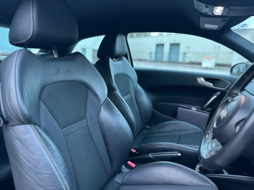 . 12V Power Socket - Centre Console, 17in Alloy Wheels - 10-Spoke Design High Gloss, ABS - Anti-Lock Braking System, AMI - Audi Music Interface, ASR - Anti Slip Regulation, AUX-IN Socket, Adaptive Brake Lights, Air Conditioning, Air Vent Sleeves - High Gloss Black, Airbags - Driver, Airbags - Front Passenger, Airbags - Front Side System, Airbags - Head System, Alarm - Thatcham Category 1, Aluminium Trim for Control Switches, Ambient Lighting, Anti Theft Locking Wheel Bolts, Audi Drive Select, Bluetooth Audio Streaming, Body Coloured Door Mirrors, Bumpers - Front and Rear - S Line Design, Cloth Headlining in Black, Concert Radio - MP3-CD Player, Connectivity Package, Cup Holders - x2 in Centre Console, DAB Digital Radio, Dashboard - Black, Display Screen - 6.5in High Gloss Black, Display Screen Monochrome - 3.5in Dashboard Binnacle, Door Handles - Aluminium Look Trim, Door Handles - Illuminated, Door Mirrors - Electrically Adjustable and Heated, Door Sill Trims - Aluminium with S Line Logo, Door Sill Trims with Aluminium Inlay, Door or Boot Open Warning, Drivers Information System - DIS, EBD - Electronic Brakeforce Distribution, EDL - Electronic Differential Lock, ESP - Electronic Stability Programme, Efficiency Program in the Drivers Information System - DIS, Electric Windows - Front, Electromechanical Power Steering, Energy Saving - Gearshift Indicator, First Aid Kit, Front Floor Mats, Front Fog Lights, Front Passenger Airbag Deactivation Switch, Front Reading Lights, Front Sports Seats, Gear Knob - Leather Sports with Aluminium Trim, Glovebox - Illuminated, Handbrake Grip - Leather, Head Restraints - Rear, Headlights - Automatic Adjustment, Headlights - Dynamic Range Control, Headlights Washers, Heat Insulating Glass - Windscreen and Side Windows, Heated Rear Windscreen, ISOFIX Child Seat Preparation for Rear Seats with Top Tether, Illuminated Footwell Lighting, Illuminated Front Door Armrests, Illuminated Vanity Mirrors, Immobiliser, Interior Elements - Glove Compartment - Aluminium, LED Daytime Running Lights, LED Interior Light Package, LED Rear Lights, Luggage Compartment - LED Light, Manually Adjustable Lumbar Support in Front Seats, Mobile Telephone Preparation - Bluetooth Interface, Non-Smoking Package, Outside Temperature Display, Platinum Grey Rear Bumper Diffuser Insert, Polished Tailpipes, Pollen Filter, Radiator Grille - High Gloss Black, Radio Remote Control with Safelock and Anti Theft System, Reflected Lighting for Centre Console, Remote Central Locking with 2 Fold Away Keys, S Line Badges on Wings, S Line Body Styling, S Line Roof Spoiler, SD Card Reader x2, Satellite Navigation System - Preparation, Seat Belt Reminder for All Seats, Seats - Drivers Manual Height Adjustment, Seats - Front Easy Entry, Seats - Front Passenger Manual Height Adjustment, Seats - Front with Embossed S Line Logo, Seats - Rear x 2, Secondary Collision Brake Assist, Speakers x6 - Front and Rear, Split-Folding Rear Seats, Steering Wheel - 3-Spoke Leather - Multi-function - Sports, Steering Wheel - 3-Spoke Sports, Steering Wheel - Height and Reach Adjustable, Steering Wheel - Multi-function, Suspension - S Line, TP Memo - Automatically Saves Traffic News, Tool Kit and Car Jack, Two Fold Away Keys, Tyre Pressure Monitoring System, Tyre Repair Kit, USB Connection, Voice Control - Telephone, Warning Triangle, Washer Fluid Level Indicator, Xenon Plus Headlights.