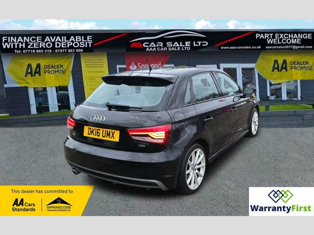 **AAA CAR SALES DARLINGTON LTD HAVE THE PLEASURE TO PRESENT THIS AUDI A1 1.6 TDI S line Sportback 5dr Diesel Manual Euro 6 (s/s) (116 ps) in MYTHOS BLACK PAINTWORK, FRESH MOT + SERVICE SERVICE HISTORY - SERVICED AT 44K AND SERVICED BY OUR TEAM AT 81K...ALL OUR CARS GO THROUGH 72 POINT INSPECTION,ALL OF OUR CARS COME WITH 12 MONTHS AA BREAKDOWN COVER, FRESH MOT WITHOUT ADVISORIES,INTERIM SERVICE,HPI CHECKED VIA EXPERIAN,3 MONTHS WARRANTY WITH THE OPTION TO UPGRADE ***AUTOTRADER CUSTOMER SERVICE AWARD 2019,2020,2021, 2022 & 2023 YEAR ON YEAR***, WE ARE OPEN 7 DAYS A WEEK FOR YOUR CONVIENIENCE,CALL 01325 511665 OR EMAIL US AT [email protected] or visit our website www.aaa-carsales.co.uk , White, 2 owners, YOU CAN BUY WITH FULL CONFIDENCE FROM AAA CARS CHECK OUR AUTOTRADER REVIEWS FOR FULL PEACE OF MIND. Mythos Black, 17in Alloy Wheels - 10-Spoke Design High, AMI - Audi Music Interface, AUX-IN Socket, Adaptive Brake Lights, Air Conditioning, Air Vent Sleeves - High Gloss Black, Aluminium Trim for Control Switches-Glov, Anti Theft Locking Wheel Bolts, Audi Drive Select, Body Coloured Door Mirrors, Centre Console with Two Cup Holders and , Cloth Headlining in Black, Concert Radio, Connectivity Package, DAB Digital Radio, Display Screen - 6.5in High Gloss Black, Door Mirrors - Electrically Adjustable a, Door Sill Trims - Aluminium with S Line , Driver - Front Passenger - Front Side an, Driver and Front Passenger Seats with Ma, Drivers Information System - DIS, ESC - Electronic Stabilisation Con