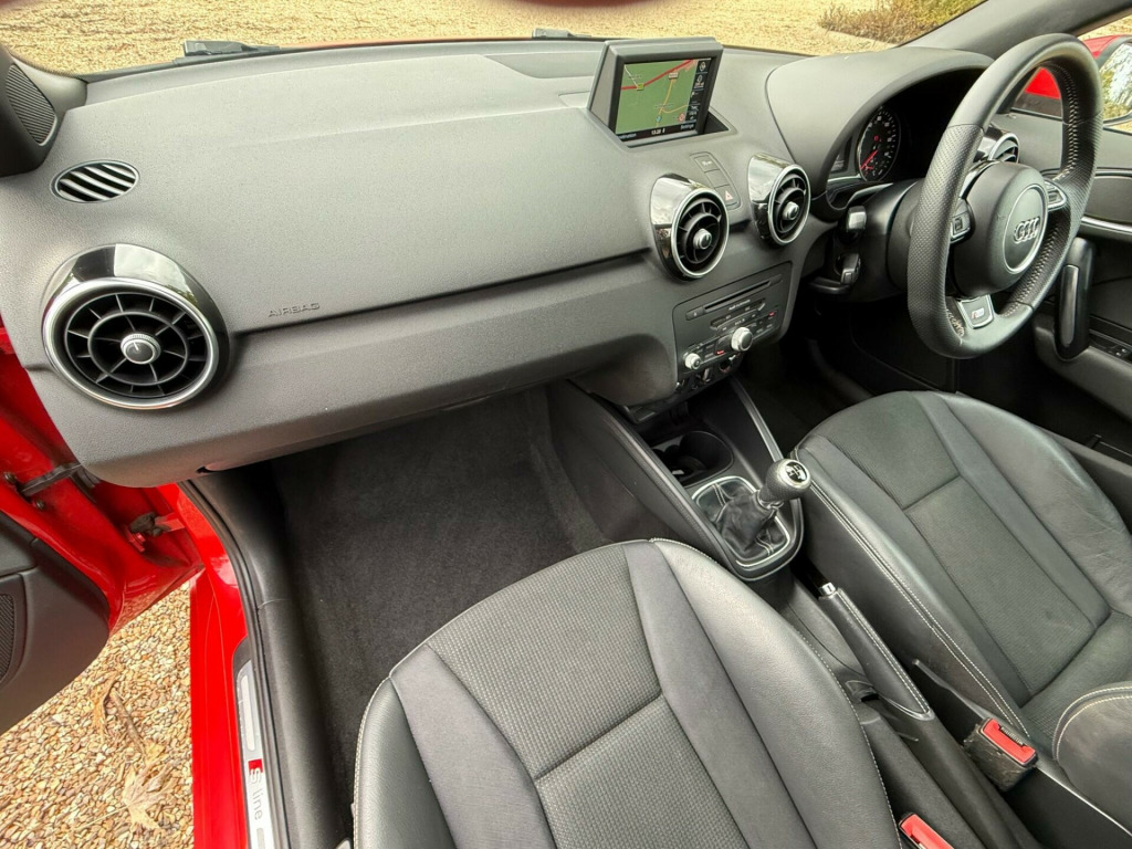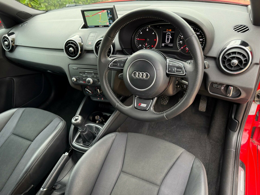 This 2015 Audi A1 TDI S line presents an exceptional ownership proposition with its remarkably low mileage of just 79,000 miles, especially for a vehicle of its age, and a full service history. Finished in a striking Brilliant Black contrast roof and featuring the desirable Black Styling Package, this A1 is equipped with the efficient 1.6 litre diesel engine. Inside, you'll find the S line trim offering a premium feel, complemented by practical features such as rear acoustic parking sensors to aid manoeuvring, a satellite navigation system for stress free journeys, and Bluetooth connectivity for handsfree calls and music streaming.This Audi A1 stands out with its impressive fuel economy, achieving an outstanding 74 miles per gallon, which is significantly better than many other vehicles in its class. Furthermore, its low CO2 emissions contribute to a more environmentally friendly drive, and it sits within a low insurance group, making it an economical choice for many drivers. These highlights collectively demonstrate the A1's appeal as a cost effective and efficient premium compact car. oustic parking system - rear, satellite navigation system - sd card based, black styling package, contrast roof - brilliant black, privacy glass, seats - super sports, 17in alloy wheels - 5-twin-spoke design, 6.5in display screen, abs - anti-lock braking system, asr - anti slip regulation, aux-in socket, air conditioning, air vent sleeves - high gloss black, airbags - driver, airbags - front passenger, airbags - front side system, airbags - head system, alarm - thatcham category 1, aluminium trim for control switches, ambient lighting, anti theft locking wheel bolts, centre console in mono pur, cloth headlining in black, concert radio - mp3-cd player, dab digital radio, display screen monochrome - 3.5in dashboard binnacle, door handles - illuminated, door mirrors - body coloured with integrated indicators, door mirrors - electrically adjustable and heated, door sill trims - aluminium with s line logo, door or boot open warning, drivers information system - dis, ebd - electronic brakeforce distribution, edl - electronic differential lock, esp - electronic stability programme, efficiency program in the drivers information system - dis, electric windows - front and rear, first aid kit, floor mats, front fog lights, front passenger airbag deactivation switch, front reading lights, front sports seats, gear knob - leather sports with aluminium trim, glovebox - illuminated, halogen headlights, handbrake grip - black leather, head restraints - rear, heat insulating glass - windscreen and side windows, heated rear windscreen, heated windscreen washer jets, isofix child seat mounting for front passenger, isofix child seat preparation for rear seats with top tether, illuminated footwell lighting, illuminated vanity mirrors, immobiliser, led interior light package, luggage compartment - led light, manually adjustable lumbar support in front seats, mobile telephone preparation - bluetooth interface, non-smoking package, outside temperature display, pollen filter, power steering, remote central locking with 2 fold away keys, s line badges on wings, s line body styling, s line roof spoiler, s line suspension, sd card reader, seat belt reminder for all seats, seats - front height adjustment, seats - front with embossed s line logo, speakers x6 - front and rear, split-folding rear seats, steering wheel - 3-spoke leather - multi-function - sports, steering wheel - height and reach adjustable, steering wheel - multi-function, tool kit and car jack, tow away protection and interior monitoring, tyre pressure monitoring system, tyre repair kit, voice control - telephone, warning triangle, washer fluid level indicator