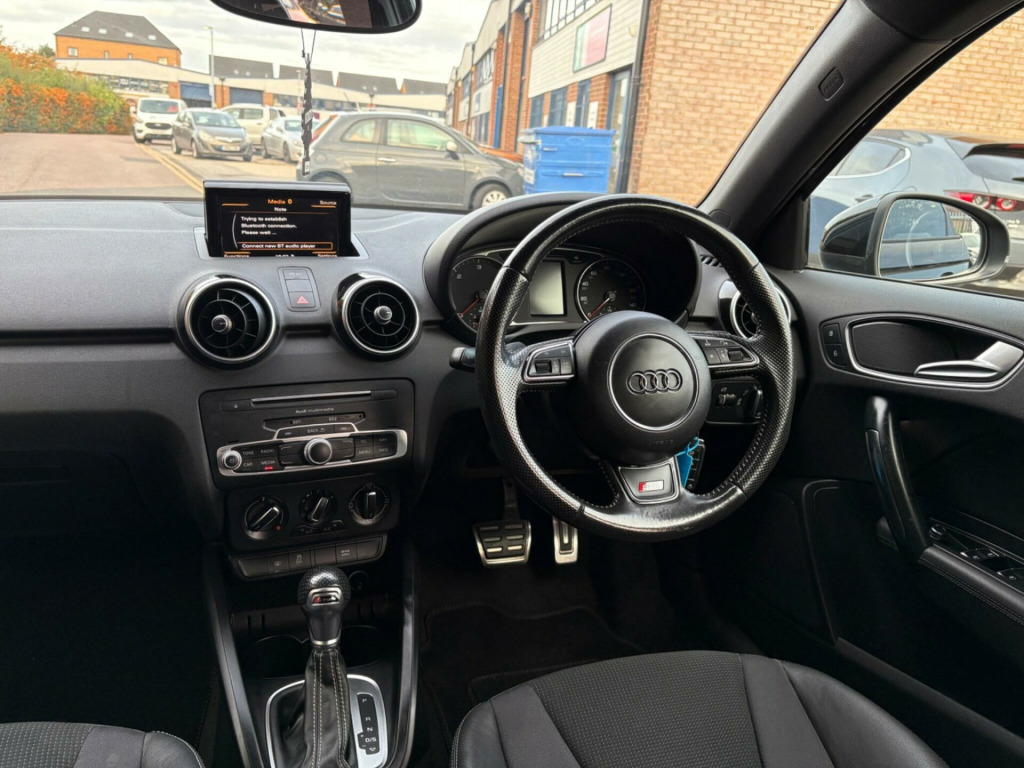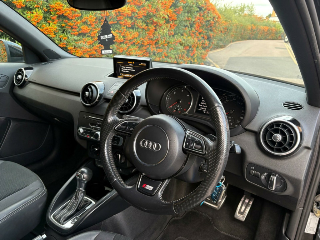 We are delighted to offer this stunning Audi A1 1.6 TDI S line Sportback S Tronic which has only covered a mere 86,000 miles backed with service history. Current MOT is valid until June 2026 and has had a recent service done in June 2025 at 86,000 miles. 2 Keys, Last owned for just under 4 years.This 2015 Audi A1 TDI S line offers an exceptional blend of style and efficiency, boasting an impressive fuel economy of 72 miles per gallon. As a Euro 6 compliant vehicle, it represents a smart choice for the environmentally conscious driver. This particular model is equipped with the sought after S line trim, enhancing its sporty appeal. Under the bonnet, a 1.6 litre diesel engine provides a responsive drive, achieving 0 to 60 miles per hour in just 9.2 seconds. For added convenience and connectivity, it features a multi-function, three spoke leather sports steering wheel with gear shift paddles, allowing for manual gear selection. The Audi Hill Hold Assist system ensures a smooth start on inclines, while the Bluetooth interface provides seamless mobile telephone preparation and audio streaming.The benefits of choosing this Audi A1 TDI S line are clear when considering its key highlights. Its low CO2 emissions and low insurance group indicate that running costs are kept to a minimum, making it an economical option. The remarkable 72 miles per gallon fuel economy further underlines its efficiency, demonstrating how it outperforms many other vehicles in its class. These factors combined with its refined Audi engineering and S line styling make this A1 a compelling proposition for those seeking a premium yet practical compact car. v power socket - centre console, 17in alloy wheels - 10-spoke design high gloss, abs - anti-lock braking system, ami - audi music interface, asr - anti slip regulation, aux-in socket, adaptive brake lights, air conditioning, air vent sleeves - high gloss black, airbags - driver, airbags - front passenger, airbags - front side system, airbags - head system, alarm - thatcham category 1, aluminium trim for control switches, ambient lighting, anti theft locking wheel bolts, audi drive select, audi hill hold assist, bluetooth audio streaming, cloth headlining in black, concert radio - mp3-cd player, cup holders - x2 in centre console, dab digital radio, dashboard - black, display screen - 6.5in high gloss black, display screen monochrome - 3.5in dashboard binnacle, door handles - aluminium look trim, door handles - illuminated, door mirrors - body coloured with integrated indicators, door mirrors - electrically adjustable and heated, door sill trims - aluminium with s line logo, door or boot open warning, drivers information system - dis, ebd - electronic brakeforce distribution, edl - electronic differential lock, esp - electronic stability programme, efficiency program in the drivers information system - dis, electric windows - front and rear, first aid kit, floor mats, front fog lights, front passenger airbag deactivation switch, front reading lights, front sports seats, gear knob - leather sports with aluminium trim, glovebox - illuminated, handbrake grip - black leather, head restraints - rear, headlights - automatic adjustment, headlights - bi-xenon plus, headlights - dynamic range control, headlights washers, heat insulating glass - windscreen and side windows, heated rear windscreen, heated windscreen washer jets, isofix child seat preparation for rear seats with top tether, illuminated footwell lighting, illuminated front door armrests, illuminated vanity mirrors, immobiliser, led daytime running lights, led interior light package, led rear lights, luggage compartment - led light, manually adjustable lumbar support in front seats, mobile telephone preparation - bluetooth interface, non-smoking package, outside temperature display, platinum grey rear bumper diffuser insert, polished tailpipes, pollen filter, power steering, reflected lighting for centre console, remote central locking with 2 fold away keys, s line badges on wings, s line body styling, s line roof spoiler, sd card reader x2, satellite navigation system - preparation, seat belt reminder for all seats, seats - front height adjustment, seats - front with embossed s line logo, secondary collision brake assist, speakers x6 - front and rear, split-folding rear seats, steering wheel - 3-spoke leather - multi-function - sports - shift paddles, steering wheel - gear shift paddles, steering wheel - height and reach adjustable, steering wheel - multi-function, suspension - s line, tool kit and car jack, tow away protection and interior monitoring, traction control, tyre pressure monitoring system, tyre repair kit, usb connection, voice control - telephone, warning triangle, washer fluid level indicator, rear floor mats, steering wheel - 3-spoke multifunction flat bottomed, bose surround sound system, front centre armrest