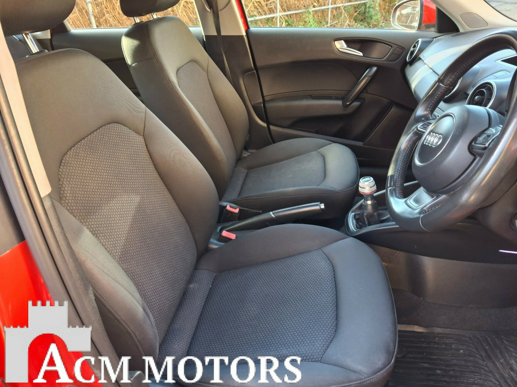 This 2013 Audi A1 1.6 TDI SE Sportback 5dr Diesel Manual Euro 5 (s/s) (105 ps) is a reliable hatchback with 98000 miles on the clock, Finished in Misano Red Pearl with Gloss Black Roof. It comes with a valid MOT until 01/02/2026 and includes desirable features such asHeated Front Seats, 15in Alloy Wheels - 7-Arm Design, Anti Theft Locking Wheel Bolts, and Electric Windows - Front and Rear. The exterior features body-coloured door mirrors with integrated indicators and are electrically adjustable and heated for added convenience. This efficient and stylish car is perfect for those looking for a practical yet sophisticated vehicle.PART EXCHANGE WELCOME, 3 MONTH WARRANTY, FINANCE AVAILABLE.FOR FURTHER DETAILS OR TO MAKE AN APPOINTMENT TO VIEW, CALL GARRY ON 07860 414901 in alloy wheels - 7-arm design, anti theft locking wheel bolts, door mirrors - body coloured with integrated indicators, door mirrors - electrically adjustable and heated, electric windows - front and rear, heat insulating glass - windscreen and side windows, heated rear windscreen, heated windscreen washer jets, tyre repair kit, 6.5in display screen, aux-in socket, concert radio - mp3-cd player, dab digital radio, sd card reader, speakers x6 - front and rear, abs - anti-lock braking system, asr - anti slip regulation, airbags - driver, airbags - front passenger, airbags - front side system, airbags - head system, alarm - thatcham category 1, ebd - electronic brakeforce distribution, esp - electronic stability programme, first aid kit, front passenger airbag deactivation switch, isofix child seat mounting for front passenger, isofix child seat preparation for rear seats with top tether, immobiliser, remote central locking with 2 fold away keys, seat belt reminder for all seats, tow away protection and interior monitoring, warning triangle, air conditioning, air vent sleeves - matt black, floor mats, glovebox - illuminated, head restraints - rear, non-smoking package, pollen filter, seats - front height adjustment, split-folding rear seats, steering wheel - 3-spoke sports, steering wheel - height and reach adjustable, tool kit and car jack, dynamic suspension, edl - electronic differential lock, power steering, tyre pressure monitoring system, halogen headlights