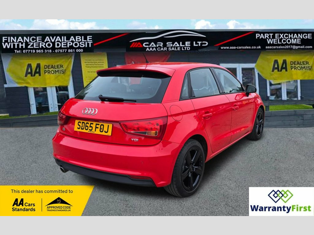 **AAA CAR SALES DARLINGTON LTD HAVE THE PLEASURE TO PRESENT THIS AUDI A1 1.6 TDI Sport Sportback 5dr Diesel Manual Euro 6 (s/s) (116 ps) IN MILSANO RED PAINTWORK, FRESH MOT + SERVICE SERVICE HISTORY - SERVICED AT 19K, 31K, 54K, 72K, 81K **ALL OUR CARS GO THROUGH 72 POINT INSPECTION,ALL OF OUR CARS COME WITH 12 MONTHS AA BREAKDOWN COVER, FRESH MOT WITHOUT ADVISORIES,INTERIM SERVICE,HPI CHECKED VIA EXPERIAN,3 MONTHS WARRANTY WITH THE OPTION TO UPGRADE ***AUTOTRADER CUSTOMER SERVICE AWARD 2019,2020,2021, 2022 & 2023 YEAR ON YEAR***, WE ARE OPEN 7 DAYS A WEEK FOR YOUR CONVIENIENCE,CALL 01325 511665 OR EMAIL US AT [email protected] or visit our website www.aaa-carsales.co.uk , White, 2 owners, YOU CAN BUY WITH FULL CONFIDENCE FROM AAA CARS CHECK OUR AUTOTRADER REVIEWS FOR FULL PEACE OF MIND. Misano Red, 12V Power Socket - Centre Console, 16in Alloy Wheels - 5-Spoke Sport Design, ABS - Anti-Lock Braking System, AMI - Audi Music Interface, ASR - Anti Slip Regulation, AUX-IN Socket, Adaptive Brake Lights, Air Conditioning, Air Vent Sleeves - High Gloss Black, Airbags - Driver, Airbags - Front Passenger, Airbags - Front Side System, Airbags - Head System, Alarm - Thatcham Category 1, Aluminium Trim for Control Switches, Anti Theft Locking Wheel Bolts, Audi Drive Select, Bluetooth Audio Streaming, Body Coloured Door Mirrors, Concert Radio - MP3-CD Player, Connectivity Package, Cup Holders - x2 in Centre Console, DAB Digital Radio, Dashboard - Black, Daytime Running Lights, Display Sc
