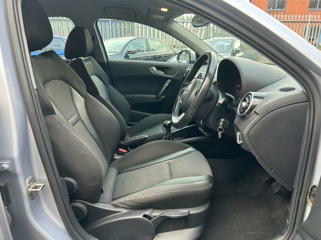 2 Former Keepers, Hpi Clear With Warranted Mileage, 2 Keys, Service History, MOT Until 24/11/2026, ULEZ compliant, Very Economical Vehicle With Only £20 A Year Road Tax, Interior And Exterior In Good Condition Throughout, Specification Includes Telephone And Audio Bluetooth, Alloy Wheels With Good Tyres All Around, Grey Sport Interior, Driver Select modes - Efficiency, Auto And Dynamic, Audi Multimedia Professional Stereo With DAB Radio, CD Player And SD Connection, Colour Information Screen Display, Leather Trimmed Multi-Functional Steering Wheel, 5 Speed Manual Gearbox, Climate Control With Air Conditioning, 4 x Electric Windows And Electric Door Side Mirrors, Isofix Points, Front Cup Holders Plus All The Standard Features Of A Audi A1 1.6 TDI Sport Sportback, ALL CARS COME WITH 3 MONTHS WARRANTY, ALL CARS CONSIDERED IN PART EXCHANGE , PLEASE CALL TO BOOK INSPECTIONS/TEST DRIVES , LINES OPEN TILL LATE, EXTENDED WARRANTY AVAILABLE , TOP RATED COMPANY FOR OVER 7 YEARS - BUY WITH CONFIDENCE, ALSO DELIVERING NATIONWIDE, v power socket - centre console, 16in alloy wheels - 5-spoke sport design, abs - anti-lock braking system, ami - audi music interface, asr - anti slip regulation, aux-in socket, adaptive brake lights, air conditioning, air vent sleeves - high gloss black, airbags - driver, airbags - front passenger, airbags - front side system, airbags - head system, alarm - thatcham category 1, aluminium trim for control switches, anti theft locking wheel bolts, audi drive select, bluetooth audio streaming, body coloured door mirrors, concert radio - mp3-cd player, connectivity package, cup holders - x2 in centre console, dab digital radio, dashboard - black, daytime running lights, display screen - 6.5in high gloss black, display screen monochrome - 3.5in dashboard binnacle, door handles - aluminium look trim, door mirrors - electrically adjustable and heated, door sill trims with aluminium inlay, door or boot open warning, drivers information system - dis, ebd - electronic brakeforce distribution, edl - electronic differential lock, esp - electronic stability programme, efficiency program in the drivers information system - dis, electric windows - front and rear, electromechanical power steering, energy saving - gearshift indicator, first aid kit, front floor mats, front fog lights, front passenger airbag deactivation switch, front sports seats, gear knob - leather sports with aluminium trim, glovebox - illuminated, halogen headlights, handbrake grip - leather, head restraints - rear, headlining - titanium grey cloth, heat insulating glass - windscreen and side windows, heated rear windscreen, isofix child seat preparation for rear seats with top tether, immobiliser, interior elements - glove compartment - aluminium, manually adjustable lumbar support in front seats, mobile telephone preparation - bluetooth interface, non-smoking package, outside temperature display, polished tailpipes, pollen filter, radio remote control with safelock and anti theft system, remote central locking with 2 fold away keys, sd card reader x2, satellite navigation system - preparation, seat belt reminder for all seats, seats - drivers manual height adjustment, seats - front passenger manual height adjustment, seats - rear x 3, secondary collision brake assist, speakers x6 - front and rear, split-folding rear seats, sport suspension, steering wheel - 3-spoke sports, steering wheel - height and reach adjustable, steering wheel - leather, steering wheel - multi-function, tp memo - automatically saves traffic news, tool kit and car jack, two fold away keys, tyre pressure monitoring system, tyre repair kit, usb connection, voice control - telephone, warning triangle, washer fluid level indicator, dynamic suspension