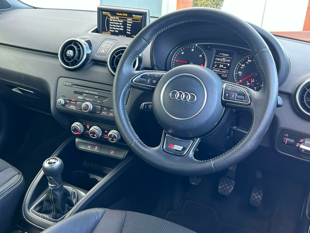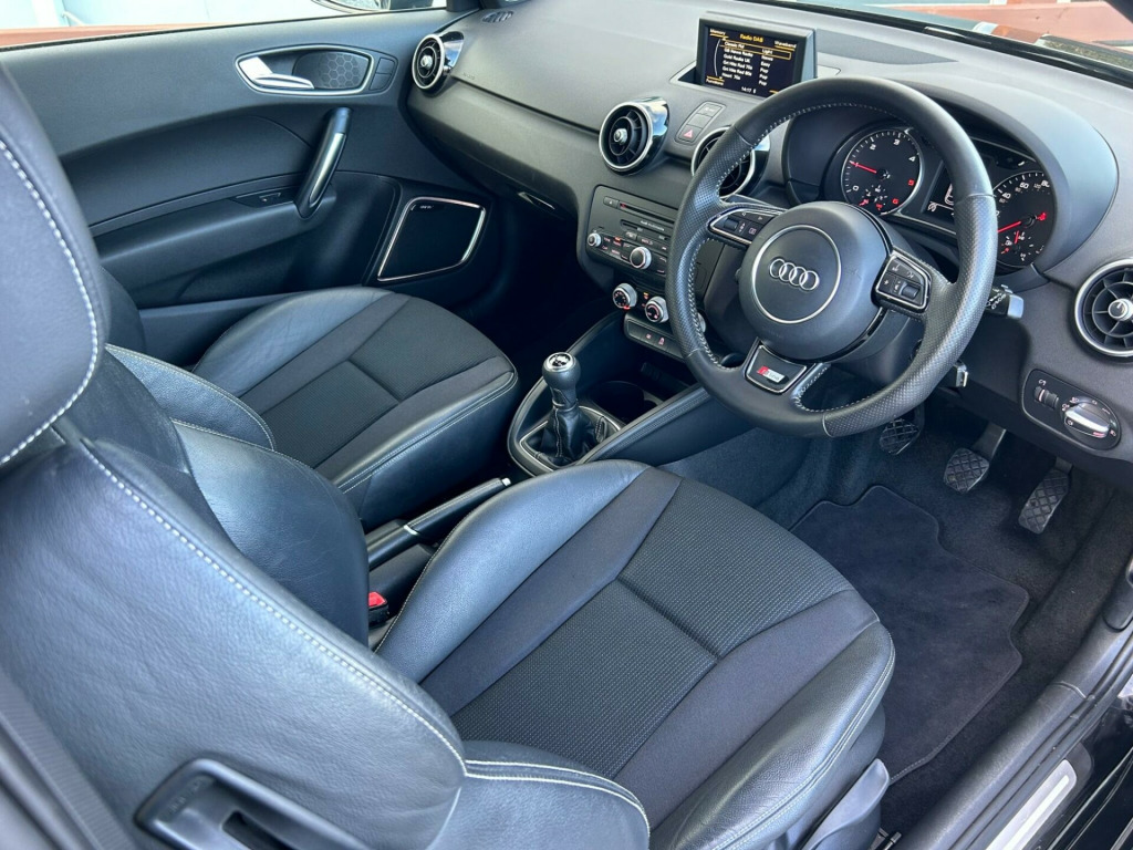 Finished In Black This Audi A1 TDI Black Edition, a 2014 model that offers a blend of style and efficiency. Powered by a robust 2.0 litre diesel engine, this car is equipped with Bi-Xenon Plus headlights for superior visibility and a Bluetooth interface for seamless mobile phone connectivity. Enjoy a comfortable driving experience with the electronic climate control system, ensuring the cabin temperature is always just right.The Black Edition trim level signifies a higher specification, indicating this Audi A1 offers a more premium experience compared to other models. The inclusion of advanced features like the Xenon headlights and the integrated Bluetooth system further enhances its appeal, providing both advanced technology and a sophisticated aesthetic. This A1 is a well appointed choice for those seeking a stylish and capable compact car., in alloy wheels - 5-arm rotor design titanium finish, 6.5in display screen, abs - anti-lock braking system, asr - anti slip regulation, aux-in socket, air vent sleeves - high gloss black, air inlet blade and diffuser insert in platinum grey, airbags - driver, airbags - front passenger, airbags - front side system, airbags - head system, alarm - thatcham category 1, aluminium trim for control switches, ambient lighting, amplifier - 6 channel, anti theft locking wheel bolts, audi sound system, automatic wipers with rain sensor, black styling package, cloth headlining in black, concert radio - mp3-cd player, door handles - illuminated, door mirrors - body coloured with integrated indicators, door mirrors - electrically adjustable and heated, door sill trims - aluminium with s line logo, drivers information system - dis, ebd - electronic brakeforce distribution, edl - electronic differential lock, esp - electronic stability programme, electric windows - front, electronic climate control, first aid kit, floor mats, fog lights - matt black surrounds, front fog lights, front passenger airbag deactivation switch, front reading lights, front sports seats, glovebox - illuminated, halogen headlights, handbrake grip - leather, head restraints - rear, headlights - automatic adjustment, headlights - bi-xenon plus, headlights - coming-leaving home function, headlights - dynamic range control, headlights washers, heat insulating glass - windscreen and side windows, heated rear windscreen, heated windscreen washer jets, isofix child seat preparation for rear seats, illuminated footwell lighting, illuminated vanity mirrors, immobiliser, led daytime running lights, led interior light package, led rear lights, light and rain sensor package, manually adjustable lumbar support in front seats, mobile telephone preparation - bluetooth interface, non-smoking package, power steering, privacy glass, radiator grille and frame - highly polished black, remote central locking with 2 fold away keys, sd card reader, seat belt reminder for all seats, seats - front easy entry, seats - front height adjustment, split-folding rear seats, steering wheel - 3-spoke leather - multi-function - sports, steering wheel - height and reach adjustable, steering wheel - multi-function, sunband for windscreen, tool kit and car jack, tyre repair kit, voice control - telephone, warning triangle, washer fluid level indicator