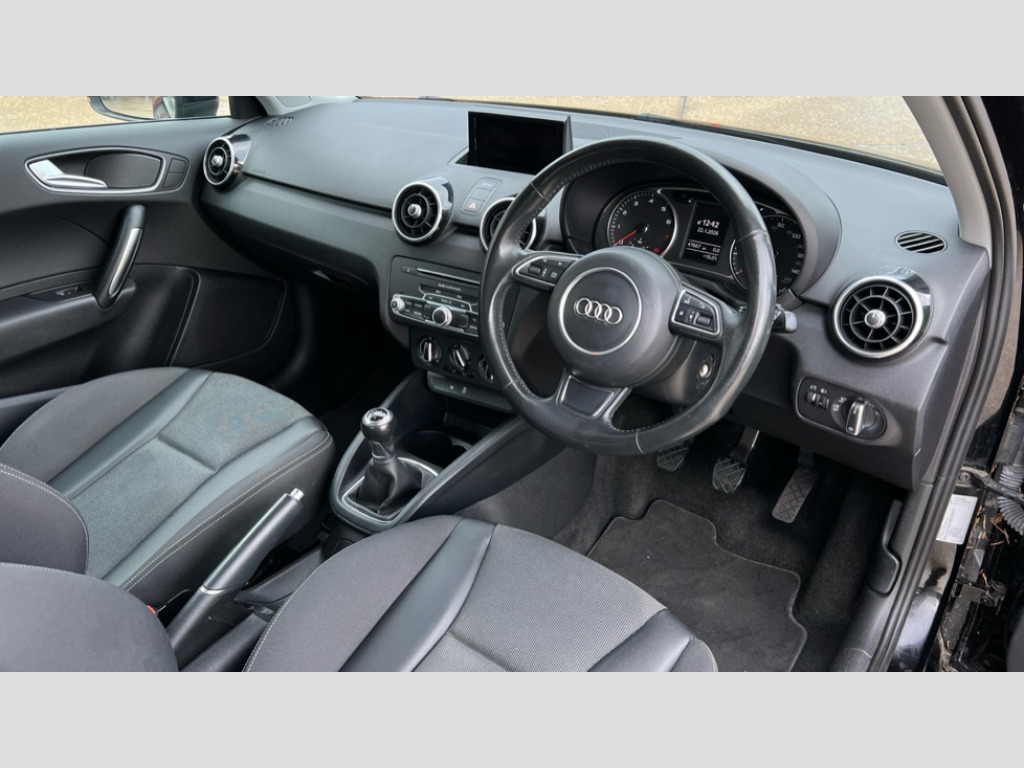 Audi A1 1.0 TFSI Sport 3dr Electro-mechanical PAS, Low washer fluid indicator, Service interval indicator, Voice control system, Additional SD card reader, Audi music interface, Bluetooth audio streaming, DAB Digital radio, Adaptive brake lights, Electric adjustable door mirrors, Electric front windows, Front fog lights, Heat insulating glass, Heated door mirrors, Heated rear windscreen, Rear wiper, 12V Accessory socket in centre console, 3 spoke leather multifunction sports steering wheel, Adjustable rear head restraints, Cupholders in centre console, Door sills trims with aluminium inlays, Front floor mats, Front head restraints, Front seats - 'Easy Entry', Front sports seats, Height adjustable front seats, Illuminated glovebox, Isofix attachments on outer rear seats, Jack and tool kit, Leather handbrake, Lumbar adjustment for front seats, Rake/reach adjustable steering wheel, Split folding rear seats, Connectivity pack - A1, ABS/EBD, Brake assist function, Driver and passenger side airbags, Driver/Front Passenger airbags, EDL, ESP with ASR, First aid kit, Front and rear seatbelt reminder, Front passenger airbag deactivation, Head airbags, Height adjustable front seatbelts, Rear three point seatbelts x 2, Tyre pressure monitor, Warning triangle, Locking wheel bolts, Remote control central locking, Thatcham category 1 alarm + immobiliser, Tyre repair kit