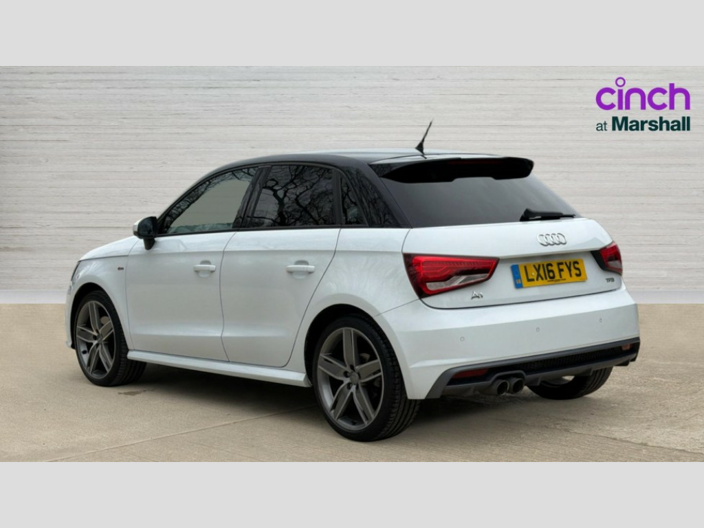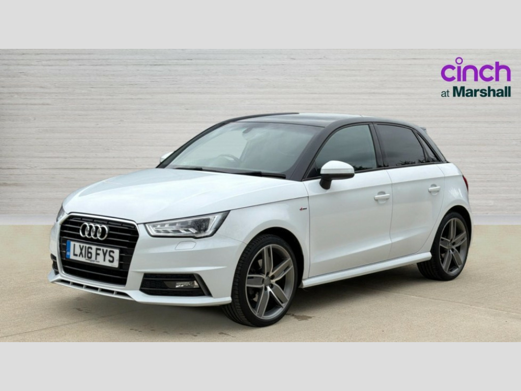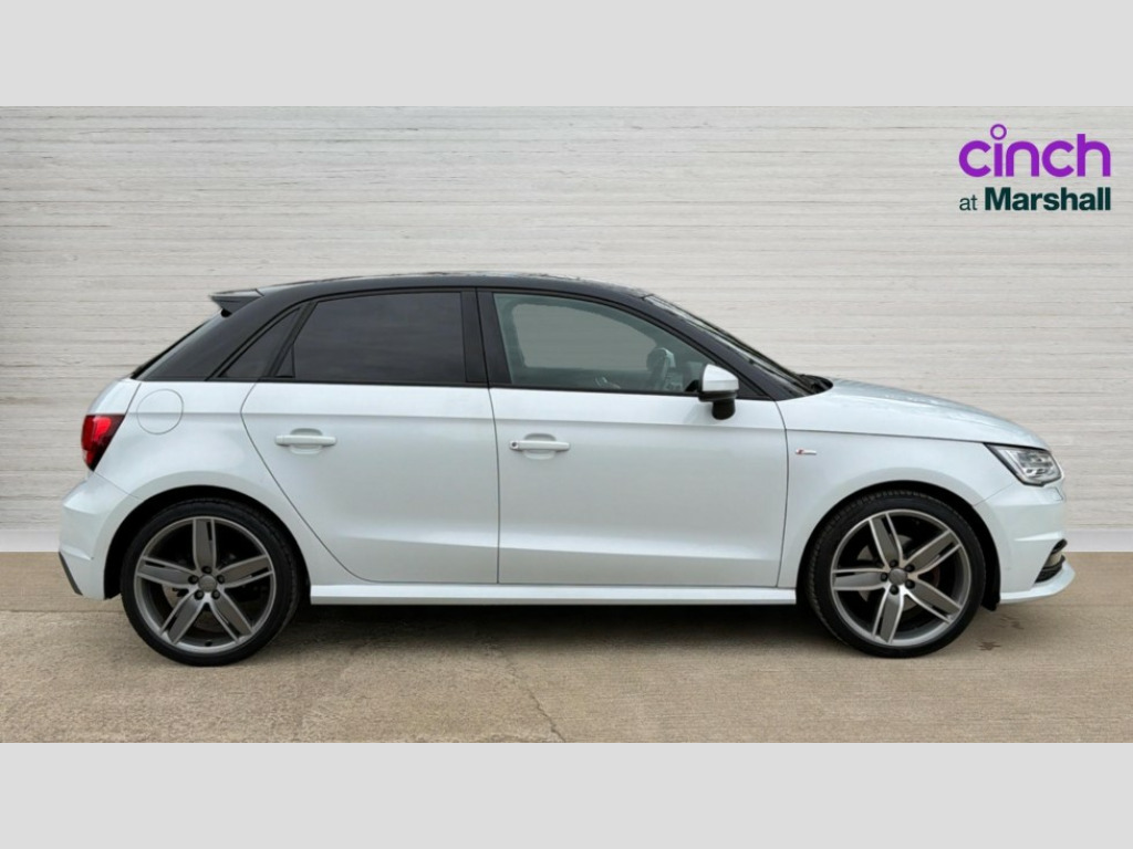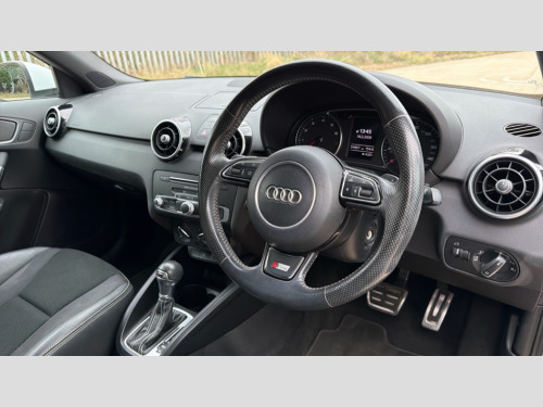 Audi A1 1.4 TFSI 150 S Line 5dr S Tronic Audi drive select, Electro-mechanical PAS, Low washer fluid indicator, Service interval indicator, Voice control system, Additional SD card reader, Audi music interface, Bluetooth audio streaming, DAB Digital radio, Adaptive brake lights, Electric adjustable door mirrors, Electric front windows, Electric rear windows, Front fog lights, Heat insulating glass, Heated door mirrors, Heated rear windscreen, Rear diffuser, Rear wiper, S Line body styling, Xenon plus headlights including automatic headlights, LED daytime running lights, LED rear lights, dynamic range control and headlight washers, 12V Accessory socket in centre console, Adjustable rear head restraints, Black cloth headlining, Cupholders in centre console, Door sills trims with aluminium inlays, Front floor mats, Front head restraints, Front sports seats, Height adjustable front seats, Illuminated glovebox, Isofix attachments on outer rear seats, Jack and tool kit, Leather gear knob, Leather handbrake, Lumbar adjustment for front seats, Rake/reach adjustable steering wheel, Split folding rear seats, ABS/EBD, Brake assist function, Driver and passenger side airbags, Driver/Front Passenger airbags, EDL, ESP with ASR, First aid kit, Front and rear seatbelt reminder, Front passenger airbag deactivation, Head airbags, Height adjustable front seatbelts, Hill hold assist, Tyre pressure monitor, Warning triangle, Locking wheel bolts, Remote control central locking, Thatcham category 1 alarm + immobiliser, Tyre repair kit