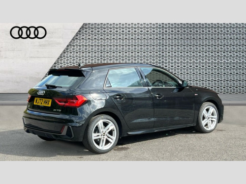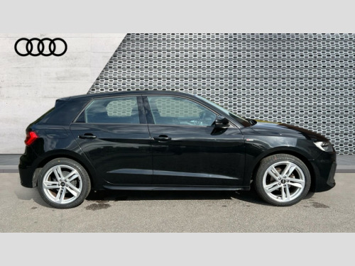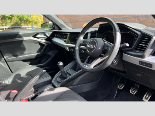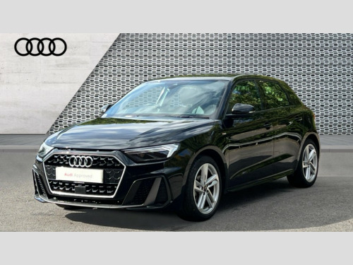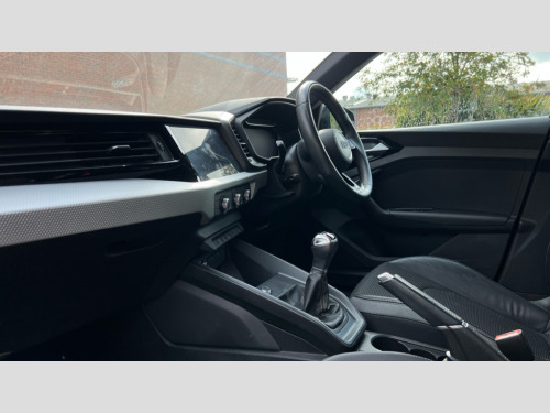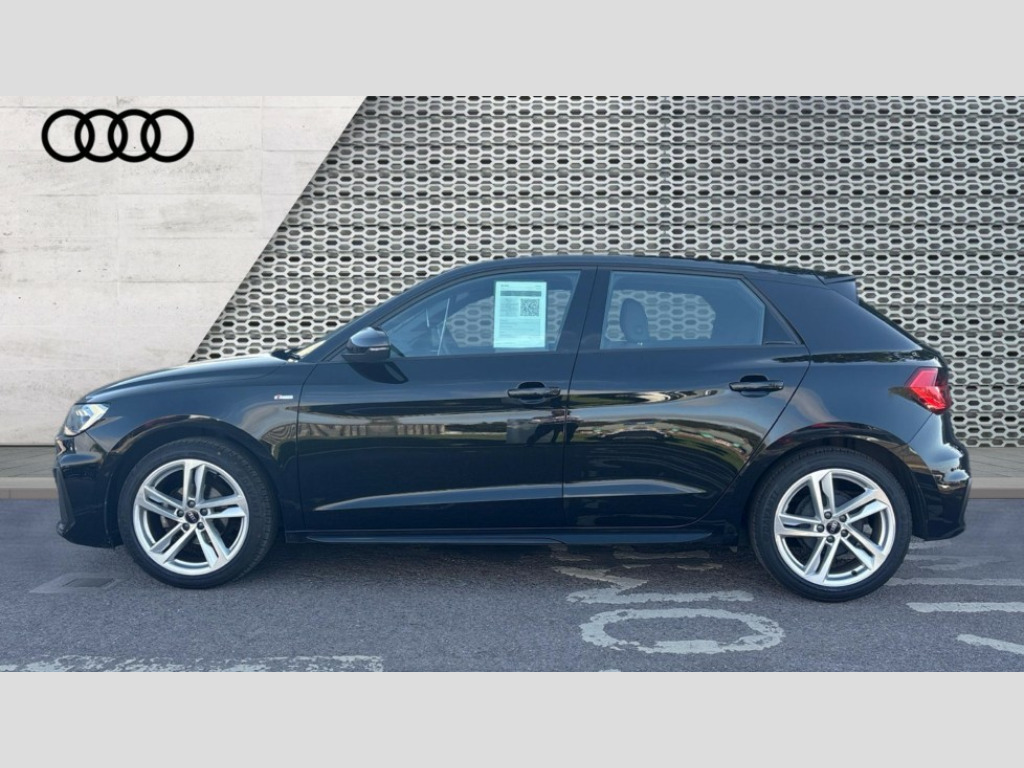 Audi A1 25 TFSI S Line 5dr 10.25" Digital instrument cluster display classis style instrument dials + speed,odometer,time,outside temperature,telephone menu + fuel level warning, Audi smartphone interface with connect compatible smartphone via USB directly MMI display + Nav,music, third party apps controlled via MMI controller, Automatic start/stop system, Bluetooth interface, Cruise control, Driver's information system, Electromechanical power steering, Emergency e-call, Emergency services call system, Lane departure warning system, Service interval indicator, Speed limiter, Voice control system, Washer fluid level indicator, Sports suspension, 1 x SDXC card reader, 2 x USB type C connection points, DAB Digital radio, MMI radio plus with 8.8" colour MMI display screen and MMI touch, Auto dimming rear view mirror, Body coloured door mirrors, Door sills with aluminium inlays and S Line logo, Electric front and rear windows, Electrically adjustable, heated, folding door mirrors with integrated LED side indicator, Front side air inlets in grained matt black and C frame in titanium black, Heat insulating glass windscreen and side windows, Heated rear windscreen, High level LED brake light, LED headlights with LED rear lights + dynamic rear indicators + headlight adjustment and high beam, turning light + LED daytime running lights, Radiator grille and rear diffuser in matt titanium black, Radiator protective grille frame in matt aluminium silver, Rain and light sensors, Rear fog lights, Rear side wing doors, Rear wing door, Rear wiper, S line badges on front wings, Side front spoiler lips in grained matt black, 12V socket in centre console with two cup holders, 3 rear seats with headrests, 3 seat bench in 2nd row, 40:60 Split folding rear seat or folded fully, Black cloth headlining, Driver and passenger seat with manual height adjust with forward and backwards adjustment, Front and rear black floor mats with contrast stitching in fine silver, Front head restraints, Front passenger seat, Height and reach adjustable steering wheel, ISOFIX child seat mounting for front passenger and outer rear seats including top tether attachment point of outer rear seats, Leather gear knob with aluminium trim, Luggage compartment light with front and rear reading lights, Manually adjustable lumbar support in front seats, Stainless steel pedals, LED interior lighting pack - A1, Luggage compartment pack - A1, S line exterior styling pack - A1 Sportback, 3x3 point rear seatbelts, Audi pre-sense front with pedestrain and cyclist recognition, Brake assist function, Driver and front passenger airbag with front side and head airbags, Electronic Stability Control including ABS, EBD, ASR and EDL, Front passenger airbag deactivation switch, Hill hold assist, Manual rear child locks, Seatbelt height adjustment for front seats, Seatbelt monitoring, Tyre pressure warning light, Warning triangle and first aid kit, Anti theft alarm, Anti theft wheel bolts and loose wheel warning, Immobiliser, Remote central locking with 2 foldaway keys, Aluminium trim for control switches, air vents and digital instrument cluster, Silver grey inlays polygon structure in diamond paint finish, Structured grey accent areas including air vents, door handle recesses and centre console in quartz paint finish