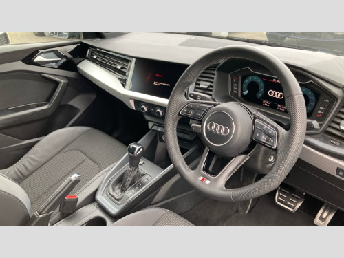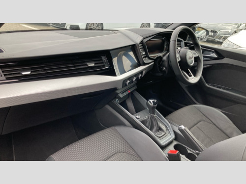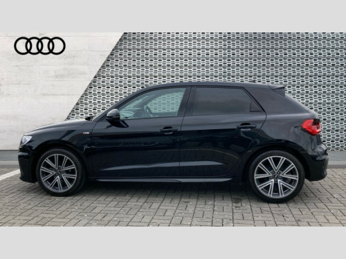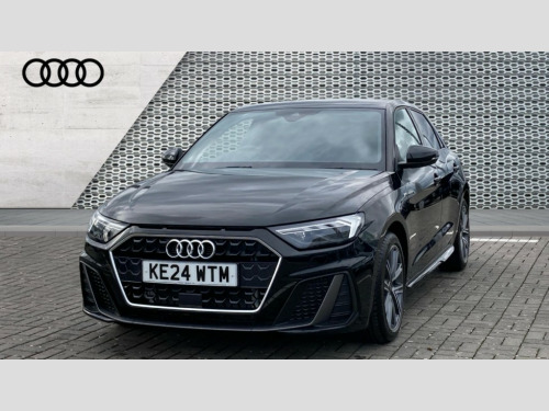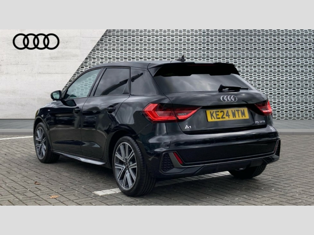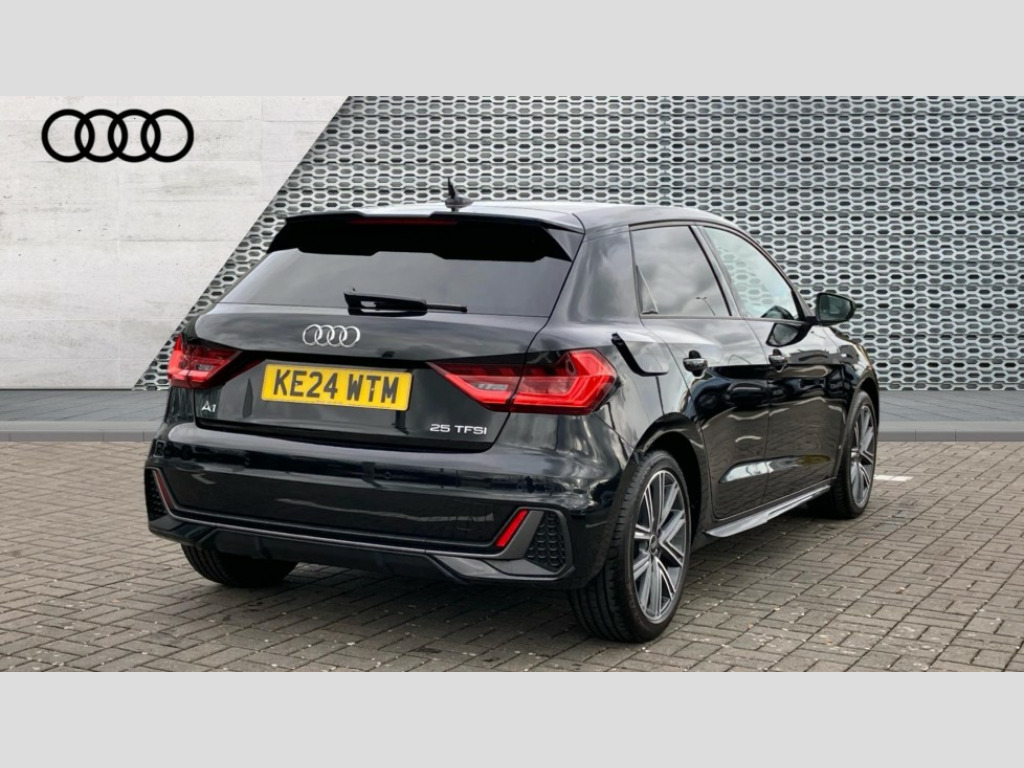 Audi A1 25 TFSI S Line 5dr S Tronic 10.25" Digital instrument cluster display classis style instrument dials + speed,odometer,time,outside temperature,telephone menu + fuel level warning, Advanced driver attention and drowsiness monitor, Audi connect emergency call and service, Audi remote connect and control, Audi smartphone interface, Bluetooth interface, Camera based traffic sign recognition, Cruise control, Driver's information system, Electromechanical power steering, Lane departure warning system, Rear parking sensor, Service interval indicator, Speed limiter, Start stop system with recuperation, Voice control system, Washer fluid level indicator, Sports suspension, 2 x USB type C connection points, 6 loudspeakers, DAB Digital radio, MMI radio plus with 10.1" colour MMI display screen and MMI touch, Auto dimming rear view mirror, Body coloured door mirrors, Door sill trims with aluminium inlays and S line logo in front, Electric front and rear windows, Electrically adjustable, heated, folding door mirrors with integrated LED side indicator, Front side air inlets in grained matt black and C frame in anthracite black, Headlight cleaning system, Heat insulating glass windscreen and side windows, Heated rear windscreen, High level LED brake light, LED daytime running lights, LED headlights with range control LED rear lights + dynamic rear indicators, Privacy glass, Radiator grille and rear diffuser in matt anthracite black, Radiator protective grille frame in matt aluminium silver, Rain and light sensors, Rear fog lights, Rear side wing doors, Rear wiper, S line badges on front wings, Side front spoiler lips in grained matt black, 12V socket in centre console with two cup holders, 3 rear seats with headrests, 3 seat bench in 2nd row, 3 spoke leather multi-function plus steering wheel features S badging and grips in perforated leather with contrast stitching, 40:60 Split folding rear seat or fully collapsed, Black cloth headlining, Front and rear velour black floor mats with contrast stitching in fine silver, Front head restraints, Front passenger seat, Height and reach adjustable steering wheel, Interior lighting includes roof module, front and rear reading lights and right luggage compartment lighting, ISOFIX child seat mounting for front passenger and outer rear seats including top tether attachment point of outer rear seats, Leather gear knob with aluminium trim, Leather handbrake grip, Manual air conditioning, Manual height adjustable for driver and front passenger seat, Manually adjustable lumbar support in front seats, Stainless steel pedals, Ambient lighting package - A1, Luggage compartment pack - A1, S line exterior styling pack - A1 Sportback, 3x3 point rear seatbelts, Audi pre-sense front with pedestrain and cyclist recognition, Brake assist function, Driver and front passenger airbag with front side and head airbags, Electronic Stability Control including ABS, EBD, ASR and EDL, Front passenger airbag deactivation switch, Hill hold assist, Manual rear child locks, Seatbelt height adjustment for front seats, Seatbelt monitoring, Tyre pressure loss indicator, Warning triangle and first aid kit, Anti theft alarm, Anti theft wheel bolts, Immobiliser, Remote control key with safelock, Aluminium trim for control switches, air vents and digital instrument cluster, Black dashboard, Silver grey inlays polygon structure in diamond paint finish, Structured grey accent surfaces insert of air vents, interior door handle recesses and centre console in quartz paint finish