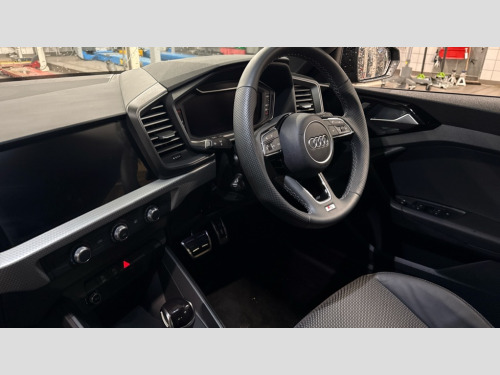 Audi A1 25 TFSI S Line 5dr S Tronic 10.25" Digital instrument cluster display classis style instrument dials + speed,odometer,time,outside temperature,telephone menu + fuel level warning, Advanced driver attention and drowsiness monitor, Audi connect emergency call and service, Audi remote connect and control, Bluetooth interface, Camera based traffic sign recognition, Cruise control, Driver's information system, Electromechanical power steering, Lane departure warning system, Rear parking sensor, Service interval indicator, Smartphone interface, Speed limiter, Start stop system with recuperation, Voice control system, Washer fluid level indicator, Sports suspension, 2 x USB type C connection points, 6 loudspeakers, DAB Digital radio, MMI radio plus with 10.1" colour MMI display screen and MMI touch, Auto dimming rear view mirror, Body coloured door mirrors, Door sill trims with aluminium inlays and S line logo in front, Electric front and rear windows, Electrically adjustable, heated, folding door mirrors with integrated LED side indicator, Front side air inlets in grained matt black and C frame in anthracite black, Headlight cleaning system, Heat insulating glass windscreen and side windows, Heated rear windscreen, High level LED brake light, LED daytime running lights, LED headlights with range control LED rear lights + dynamic rear indicators, Light and rain sensors, Privacy glass, Radiator grille and rear diffuser in matt anthracite black, Radiator protective grille frame in matt aluminium silver, Rear fog lights, Rear side wing doors, Rear wiper, Side front spoiler lips in grained matt black, 12V socket in centre console with two cup holders, 3 rear seats with headrests, 3 seat bench in 2nd row, 3 spoke leather multi-function plus steering wheel features S badging and grips in perforated leather with contrast stitching, 40:60 Split folding rear seat or fully collapsed, Black carpets, Black cloth headlining, Front and rear velour black floor mats with contrast stitching in fine silver, Front head restraints, Front passenger seat, Height and reach adjustable steering wheel, Interior lighting includes roof module, front and rear reading lights and right luggage compartment lighting, ISOFIX child seat mounting for front passenger and outer rear seats including top tether attachment point of outer rear seats, Leather gear knob with aluminium trim, Leather handbrake grip, Manual air conditioning, Manual height adjustable for driver and front passenger seat, Manually adjustable lumbar support in front seats, Stainless steel pedals, Ambient lighting package - A1, Luggage compartment pack - A1, S line exterior styling pack - A1 Sportback, 3x3 point rear seatbelts, Audi pre-sense front with pedestrain and cyclist recognition, Brake assist function, Driver and front passenger airbag with front side and head airbags, Electronic Stability Control including ABS, EBD, ASR and EDL, Front passenger airbag deactivation switch, Hill hold assist, Manual rear child locks, Seatbelt height adjustment for front seats, Seatbelt monitoring, Tyre pressure loss indicator, Warning triangle and first aid kit, Anti theft alarm, Anti theft wheel bolts, Immobiliser, Remote control key with safelock, Aluminium trim for control switches, air vents and digital instrument cluster, Black dashboard, Silver grey inlays polygon structure in diamond paint finish, Structured grey accent surfaces insert of air vents, interior door handle recesses and centre console in quartz paint finish