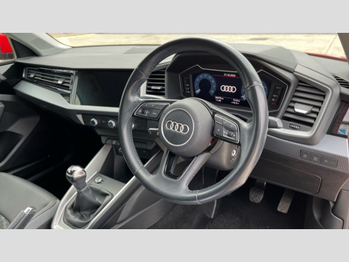 Audi A1 25 TFSI Sport 5dr 10.25" Digital instrument cluster display classis style instrument dials + speed,odometer,time,outside temperature,telephone menu + fuel level warning, Audi connect safety emergency and service including E-call, Audi smartphone interface with connect compatible smartphone via USB directly MMI display + Nav,music, third party apps controlled via MMI controller, Automatic start/stop system, Bluetooth interface, Cruise control, Driver's information system, Electromechanical power steering, Lane departure warning system, Rear parking sensor, Service interval indicator, Speed limiter, Voice control system, Washer fluid level indicator, Dynamic suspension, 1 x SDXC card reader, 1 x USB type C and 1 USB type A charging points, DAB Digital radio, MMI radio plus with 8.8" colour MMI display screen and MMI touch, Auto dimming rear view mirror, Body coloured bumpers, Body coloured door mirrors, Electric front and rear windows, Electrically adjustable, heated, folding door mirrors with integrated LED side indicator, Front side air inlets in grained matt black and C frame in titanium black, Heat insulating glass windscreen and side windows, Heated rear windscreen, LED headlights with LED rear lights + dynamic rear indicators + headlight adjustment and high beam, turning light + LED daytime running lights, Radiator grille and rear diffuser in matt titanium black, Radiator protective grille frame in matt aluminium silver, Rain and light sensors, Rear fog lights, Rear wiper, Scandium grey tailpipe trim, Side front spoiler lips in grained matt black, 12V socket in centre console with two cup holders, 3 rear seats with headrests, 40:60 Split folding rear seat or folded fully, Door sill trims with aluminium inlay, Door sills trims with aluminium inlays, Driver and passenger seat with manual height adjust with forward and backwards adjustment, Front head restraints, Front/rear floor mats, Height and reach adjustable steering wheel, ISOFIX child seat mounting for front passenger and outer rear seats including top tether attachment point of outer rear seats, Leather gear knob with aluminium trim, Leatherette handbrake grip, Luggage compartment light with front and rear reading lights, Manually adjustable lumbar support in front seats, Novum cloth upholstery with front sport seats, Titanium grey cloth headlining, Luggage compartment pack - A1, 3x3 point rear seatbelts, Audi pre-sense front with pedestrain and cyclist recognition, Brake assist function, Driver and front passenger airbag with front side and head airbags, Electronic Stability Control including ABS, EBD, ASR and EDL, Front and rear seatbelt reminder, Front passenger airbag deactivation switch, Hill hold assist, Seatbelt height adjustment for front seats, Seatbelt monitoring, Tyre pressure warning light, Warning triangle and first aid kit, Anti theft alarm, Anti theft wheel bolts and loose wheel warning, Immobiliser, Remote central locking with 2 foldaway keys, Aluminium trim for control switches, air vents and digital instrument cluster, Silver grey accent areas including air vents, door handle recesses and centre console in diamond paint finish, Slate grey inlays polygon structure in fine paint finish