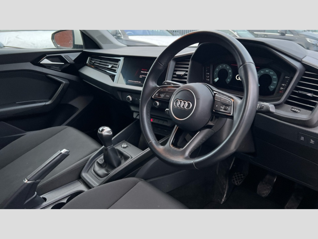 Audi A1 25 TFSI Technik 5dr 10.25" Digital instrument cluster display classis style instrument dials + speed,odometer,time,outside temperature,telephone menu + fuel level warning, Audi connect safety emergency and service including E-call, Audi smartphone interface with connect compatible smartphone via USB directly MMI display + Nav,music, third party apps controlled via MMI controller, Automatic start/stop system, Bluetooth interface, Driver's information system, Electromechanical power steering, Emergency services call system, Lane departure warning system, Service interval indicator, Speed limiter, Voice control system, Washer fluid level indicator, Dynamic suspension, 1 x SDXC card reader, 2 x USB type C connection points, 6 passive loudspeakers, DAB Digital radio, MMI radio plus with 8.8" colour MMI display screen and MMI touch, Auto dimming rear view mirror, Body coloured bumpers, Body coloured door mirrors, Electric front and rear windows, Electrically adjustable, heated, folding door mirrors with integrated LED side indicator, Front side air inlets with front spoiler lip and rear diffuser in matt black grained, Heat insulating glass windscreen and side windows, Heated rear windscreen, High level LED brake light, LED headlights with LED rear lights + dynamic rear indicators + headlight adjustment and high beam, turning light + LED daytime running lights, Radiator grille in matt black, Rain and light sensors, Rear fog lights, Rear side wing doors, Rear wing door, Rear wiper, 12V socket in centre console with two cup holders, 3 rear seats with headrests, 3 seat bench in 2nd row, 3 spoke leather multifunction plus steering wheel, 40:60 Split folding rear seat or folded fully, Air vents, door handle recesses and centre console in black, Delta cloth upholstery, Driver and passenger seat with manual height adjust with forward and backwards adjustment, Front head restraints, Front passenger seat, Front/rear floor mats, Height and reach adjustable steering wheel, ISOFIX child seat mounting for front passenger and outer rear seats including top tether attachment point of outer rear seats, Leather gear knob with aluminium trim, Leatherette handbrake grip, Luggage compartment light with front and rear reading lights, Manual air conditioning, Titanium grey cloth headlining, Luggage compartment pack - A1, 3x3 point rear seatbelts, Audi pre-sense front with pedestrain and cyclist recognition, Brake assist function, Driver and front passenger airbag with front side and head airbags, Electronic Stability Control including ABS, EBD, ASR and EDL, Front passenger airbag deactivation switch, Hill hold assist, Manual rear child locks, Seatbelt height adjustment for front seats, Seatbelt monitoring, Tyre pressure warning light, Warning triangle and first aid kit, Anti theft alarm, Anti theft wheel bolts and loose wheel warning, Immobiliser, Remote central locking with 2 foldaway keys, Black inlays polygon structure, 15" 5 arm design alloy wheels