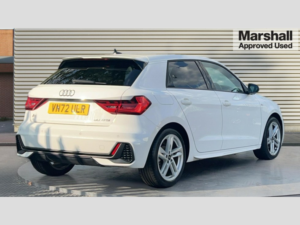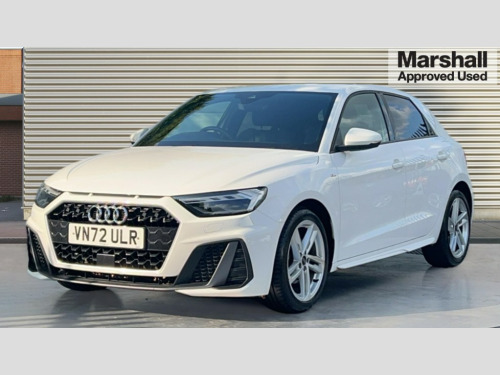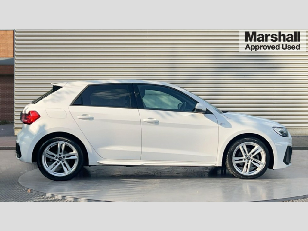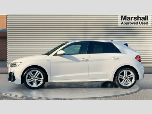 Audi A1 30 TFSI 110 S Line 5dr 10.25" Digital instrument cluster display classis style instrument dials + speed,odometer,time,outside temperature,telephone menu + fuel level warning, Audi drive select - power steering assistance + engine, Audi smartphone interface with connect compatible smartphone via USB directly MMI display + Nav,music, third party apps controlled via MMI controller, Automatic start/stop system, Bluetooth interface, Cruise control, Driver's information system, Electromechanical power steering, Emergency e-call, Emergency services call system, Lane departure warning system, Service interval indicator, Speed limiter, Voice control system, Washer fluid level indicator, Sports suspension, 1 x SDXC card reader, 2 x USB type C connection points, DAB Digital radio, MMI radio plus with 8.8" colour MMI display screen and MMI touch, Auto dimming rear view mirror, Body coloured door mirrors, Door sills with aluminium inlays and S Line logo, Electric front and rear windows, Electrically adjustable, heated, folding door mirrors with integrated LED side indicator, Front side air inlets in grained matt black and C frame in titanium black, Heat insulating glass windscreen and side windows, Heated rear windscreen, High level LED brake light, LED headlights with LED rear lights + dynamic rear indicators + headlight adjustment and high beam, turning light + LED daytime running lights, Radiator grille and rear diffuser in matt titanium black, Radiator protective grille frame in matt aluminium silver, Rain and light sensors, Rear fog lights, Rear side wing doors, Rear wing door, Rear wiper, S line badges on front wings, Side front spoiler lips in grained matt black, 12V socket in centre console with two cup holders, 3 rear seats with headrests, 3 seat bench in 2nd row, 40:60 Split folding rear seat or folded fully, Black cloth headlining, Driver and passenger seat with manual height adjust with forward and backwards adjustment, Front and rear black floor mats with contrast stitching in fine silver, Front head restraints, Front passenger seat, Height and reach adjustable steering wheel, ISOFIX child seat mounting for front passenger and outer rear seats including top tether attachment point of outer rear seats, Leather gear knob with aluminium trim, Luggage compartment light with front and rear reading lights, Manually adjustable lumbar support in front seats, Stainless steel pedals, LED interior lighting pack - A1, Luggage compartment pack - A1, S line exterior styling pack - A1 Sportback, 3x3 point rear seatbelts, Audi pre-sense front with pedestrain and cyclist recognition, Brake assist function, Driver and front passenger airbag with front side and head airbags, Electronic Stability Control including ABS, EBD, ASR and EDL, Front passenger airbag deactivation switch, Hill hold assist, Manual rear child locks, Seatbelt height adjustment for front seats, Seatbelt monitoring, Tyre pressure warning light, Warning triangle and first aid kit, Anti theft alarm, Anti theft wheel bolts and loose wheel warning, Immobiliser, Remote central locking with 2 foldaway keys, Aluminium trim for control switches, air vents and digital instrument cluster, Silver grey inlays polygon structure in diamond paint finish, Structured grey accent areas including air vents, door handle recesses and centre console in quartz paint finish