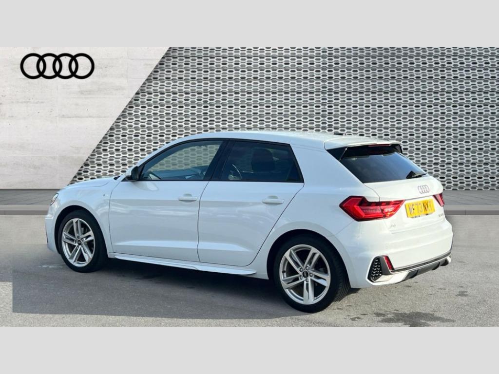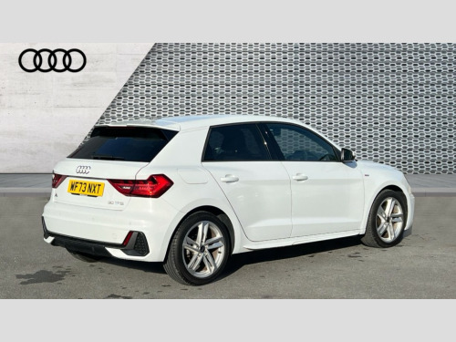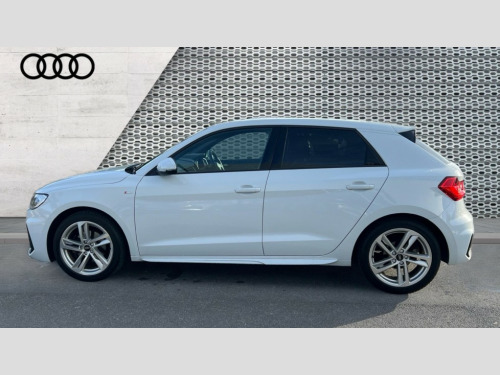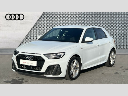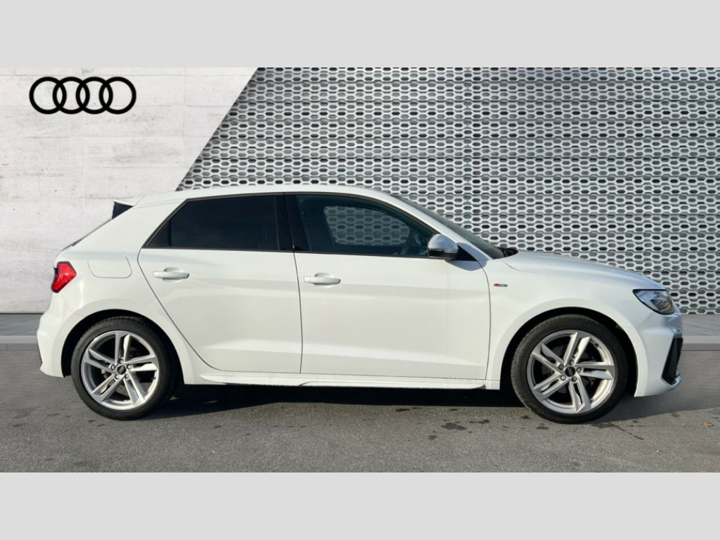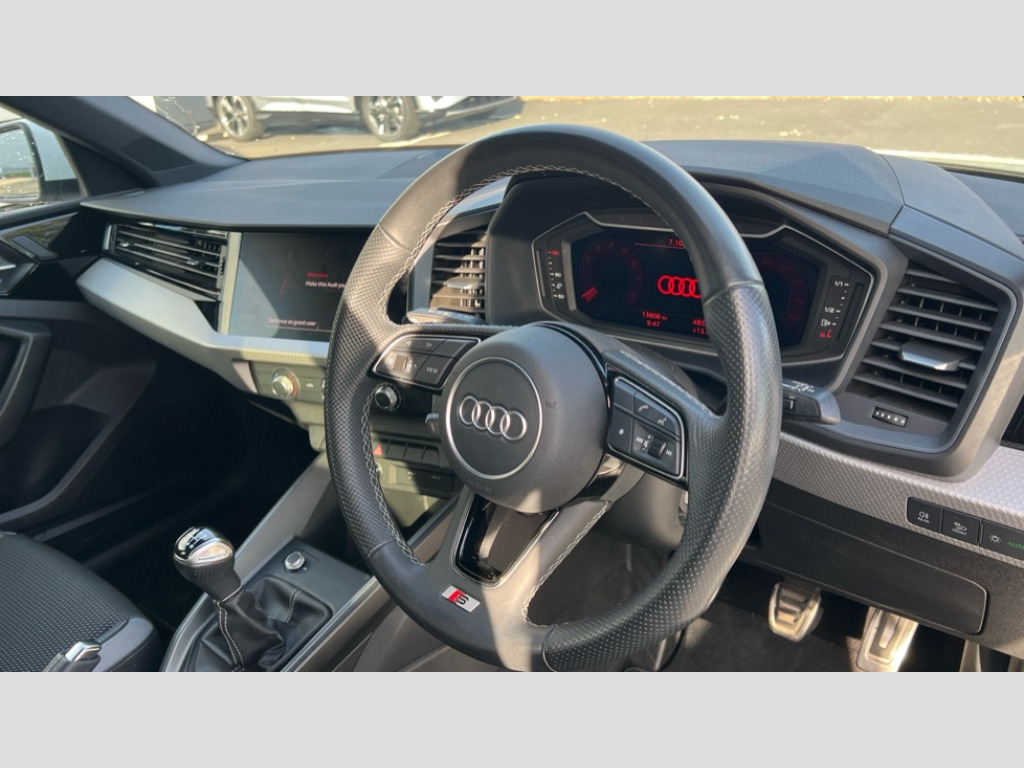 Audi A1 30 TFSI 110 S Line 5dr 10.25" Digital instrument cluster display classis style instrument dials + speed,odometer,time,outside temperature,telephone menu + fuel level warning, Audi drive select - power steering assistance + engine, Audi smartphone interface with connect compatible smartphone via USB directly MMI display + Nav,music, third party apps controlled via MMI controller, Automatic start/stop system, Bluetooth interface, Cruise control, Driver's information system, Electromechanical power steering, Emergency e-call, Lane departure warning system, Rear parking sensor, Service interval indicator, Speed limiter, Voice control system, Washer fluid level indicator, Sports suspension, 2 x USB type C connection points, 6 passive loudspeakers, DAB Digital radio, MMI radio plus with 10.1" colour MMI display screen and MMI touch, Auto dimming rear view mirror, Body coloured door mirrors, Door sills with aluminium inlays and S Line logo, Electric front and rear windows, Electrically adjustable, heated, folding door mirrors with integrated LED side indicator, Front side air inlets in grained matt black and C frame in anthracite black, Heat insulating glass windscreen and side windows, Heated rear windscreen, High level LED brake light, LED headlights with LED rear lights + dynamic rear indicators + headlight adjustment and high beam, turning light + LED daytime running lights, Privacy glass, Radiator grille and rear diffuser in matt anthracite black, Radiator protective grille frame in matt aluminium silver, Rain and light sensors, Rear fog lights, Rear side wing doors, Rear wiper, S line badges on front wings, Side front spoiler lips in grained matt black, 12V socket in centre console with two cup holders, 3 rear seats with headrests, 3 seat bench in 2nd row, 3 spoke leather multi-function plus steering wheel features S badging and grips in perforated leather with contrast stitching, 40:60 Split folding rear seat or folded fully, Black cloth headlining, Driver and passenger seat with manual height adjust with forward and backwards adjustment, Front and rear black floor mats with contrast stitching in fine silver, Front head restraints, Front passenger seat, Height and reach adjustable steering wheel, ISOFIX child seat mounting for front passenger and outer rear seats including top tether attachment point of outer rear seats, Leather gear knob with aluminium trim, Leather handbrake grip, Luggage compartment light with front and rear reading lights, Manual air conditioning, Manually adjustable lumbar support in front seats, Stainless steel pedals, LED interior lighting pack - A1, Luggage compartment pack - A1, S line exterior styling pack - A1 Sportback, 3x3 point rear seatbelts, Audi pre-sense front with pedestrain and cyclist recognition, Brake assist function, Driver and front passenger airbag with front side and head airbags, Electronic Stability Control including ABS, EBD, ASR and EDL, Front passenger airbag deactivation switch, Hill hold assist, Manual rear child locks, Seatbelt height adjustment for front seats, Seatbelt monitoring, Tyre pressure warning light, Warning triangle and first aid kit, Anti theft alarm, Anti theft wheel bolts and loose wheel warning, Immobiliser, Remote central locking with 2 foldaway keys, Aluminium trim for control switches, air vents and digital instrument cluster, Black dashboard, Silver grey inlays polygon structure in diamond paint finish, Structured grey accent areas including air vents, door handle recesses and centre console in quartz paint finish