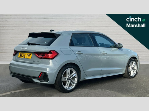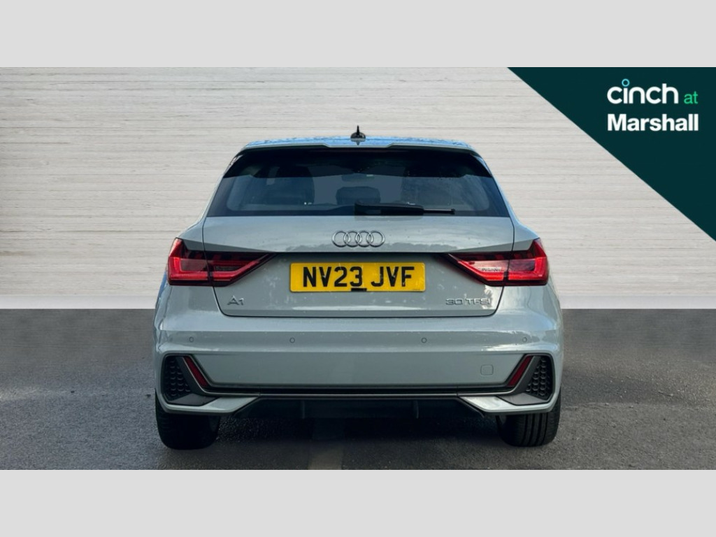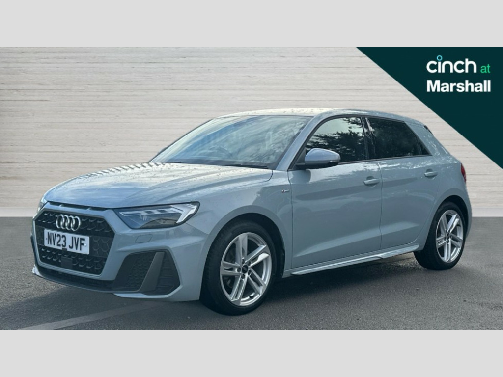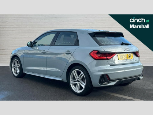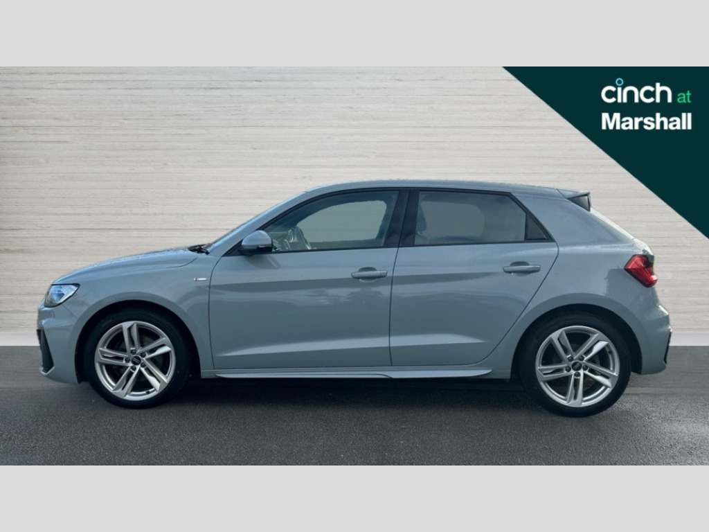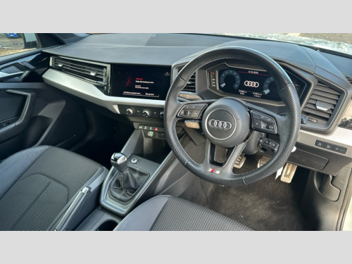 Audi A1 30 TFSI 110 S Line 5dr 10.25" Digital instrument cluster display classis style instrument dials + speed,odometer,time,outside temperature,telephone menu + fuel level warning, Audi drive select - power steering assistance + engine, Audi smartphone interface with connect compatible smartphone via USB directly MMI display + Nav,music, third party apps controlled via MMI controller, Automatic start/stop system, Bluetooth interface, Cruise control, Driver's information system, Electromechanical power steering, Emergency e-call, Lane departure warning system, Rear parking sensor, Service interval indicator, Speed limiter, Voice control system, Washer fluid level indicator, Sports suspension, 2 x USB type C connection points, 6 passive loudspeakers, DAB Digital radio, MMI radio plus with 10.1" colour MMI display screen and MMI touch, Auto dimming rear view mirror, Body coloured door mirrors, Door sills with aluminium inlays and S Line logo, Electric front and rear windows, Electrically adjustable, heated, folding door mirrors with integrated LED side indicator, Front side air inlets in grained matt black and C frame in anthracite black, Heat insulating glass windscreen and side windows, Heated rear windscreen, High level LED brake light, LED headlights with LED rear lights + dynamic rear indicators + headlight adjustment and high beam, turning light + LED daytime running lights, Privacy glass, Radiator grille and rear diffuser in matt anthracite black, Radiator protective grille frame in matt aluminium silver, Rain and light sensors, Rear fog lights, Rear side wing doors, Rear wiper, S line badges on front wings, Side front spoiler lips in grained matt black, 12V socket in centre console with two cup holders, 3 rear seats with headrests, 3 seat bench in 2nd row, 3 spoke leather multi-function plus steering wheel features S badging and grips in perforated leather with contrast stitching, 40:60 Split folding rear seat or folded fully, Black cloth headlining, Driver and passenger seat with manual height adjust with forward and backwards adjustment, Front and rear black floor mats with contrast stitching in fine silver, Front head restraints, Front passenger seat, Height and reach adjustable steering wheel, ISOFIX child seat mounting for front passenger and outer rear seats including top tether attachment point of outer rear seats, Leather gear knob with aluminium trim, Leatherette handbrake grip, Luggage compartment light with front and rear reading lights, Manual air conditioning, Manually adjustable lumbar support in front seats, Stainless steel pedals, LED interior lighting pack - A1, Luggage compartment pack - A1, S line exterior styling pack - A1 Sportback, 3x3 point rear seatbelts, Audi pre-sense front with pedestrain and cyclist recognition, Brake assist function, Driver and front passenger airbag with front side and head airbags, Electronic Stability Control including ABS, EBD, ASR and EDL, Front passenger airbag deactivation switch, Hill hold assist, Manual rear child locks, Seatbelt height adjustment for front seats, Seatbelt monitoring, Tyre pressure warning light, Warning triangle and first aid kit, Anti theft alarm, Anti theft wheel bolts and loose wheel warning, Immobiliser, Remote central locking with 2 foldaway keys, Aluminium trim for control switches, air vents and digital instrument cluster, Black dashboard, Silver grey inlays polygon structure in diamond paint finish, Structured grey accent areas including air vents, door handle recesses and centre console in quartz paint finish