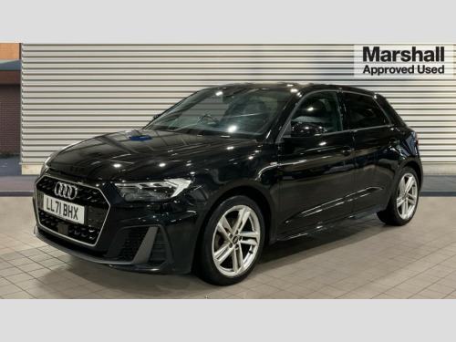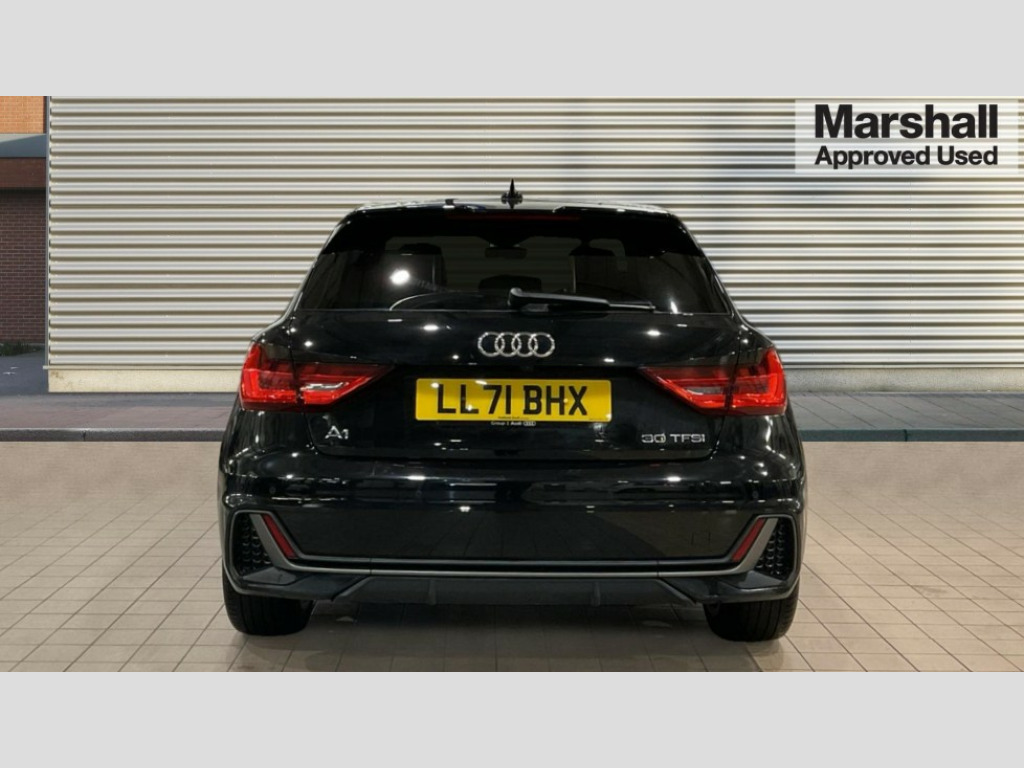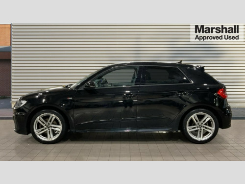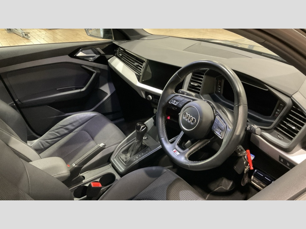 Audi A1 30 TFSI 110 S Line 5dr S Tronic 10.25" Digital instrument cluster display classis style instrument dials + speed,odometer,time,outside temperature,telephone menu + fuel level warning, Audi connect safety emergency and service including E-call, Audi drive select - power steering assistance + engine + gear shift 3 preset modes (auto, dynamic, efficiency and an Individual mode), Audi smartphone interface with connect compatible smartphone via USB directly MMI display + Nav,music, third party apps controlled via MMI controller, Automatic start/stop system, Bluetooth interface, Cruise control, Driver's information system, Electromechanical power steering, Emergency services call system, Lane departure warning system, Service interval indicator, Speed limiter, Voice control system, Washer fluid level indicator, Sports suspension, 1 x SDXC card reader, 2 x USB type C connection points, DAB Digital radio, MMI radio plus with 8.8" colour MMI display screen and MMI touch, Auto dimming rear view mirror, Body coloured door mirrors, Door sills with aluminium inlays and S Line logo, Electric front and rear windows, Electrically adjustable, heated, folding door mirrors with integrated LED side indicator, Front side air inlets in grained matt black and C frame in titanium black, Heat insulating glass windscreen and side windows, Heated rear windscreen, High level LED brake light, LED headlights with LED rear lights + dynamic rear indicators + headlight adjustment and high beam, turning light + LED daytime running lights, Radiator grille and rear diffuser in matt titanium black, Radiator protective grille frame in matt aluminium silver, Rain and light sensors, Rear fog lights, Rear side wing doors, Rear wing door, Rear wiper, S line badges on front wings, Side front spoiler lips in grained matt black, 12V socket in centre console with two cup holders, 3 rear seats with headrests, 3 seat bench in 2nd row, 40:60 Split folding rear seat or folded fully, Black cloth headlining, Driver and passenger seat with manual height adjust with forward and backwards adjustment, Front and rear black floor mats with contrast stitching in fine silver, Front head restraints, Front passenger seat, Height and reach adjustable steering wheel, ISOFIX child seat mounting for front passenger and outer rear seats including top tether attachment point of outer rear seats, Leather gear knob with aluminium trim, Luggage compartment light with front and rear reading lights, Manually adjustable lumbar support in front seats, Stainless steel pedals, LED interior lighting pack - A1, Luggage compartment pack - A1, S line exterior styling pack - A1 Sportback, 3x3 point rear seatbelts, Audi pre-sense front with pedestrain and cyclist recognition, Brake assist function, Driver and front passenger airbag with front side and head airbags, Electronic Stability Control including ABS, EBD, ASR and EDL, Front passenger airbag deactivation switch, Hill hold assist, Manual rear child locks, Seatbelt height adjustment for front seats, Seatbelt monitoring, Tyre pressure warning light, Warning triangle and first aid kit, Anti theft alarm, Anti theft wheel bolts and loose wheel warning, Immobiliser, Remote central locking with 2 foldaway keys, Aluminium trim for control switches, air vents and digital instrument cluster, Silver grey inlays polygon structure in diamond paint finish, Structured grey accent areas including air vents, door handle recesses and centre console in quartz paint finish