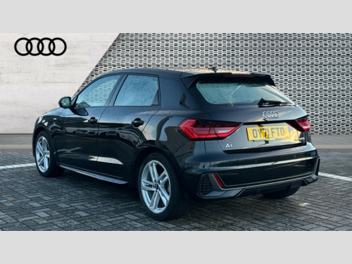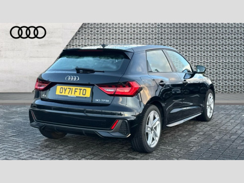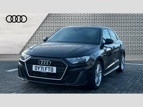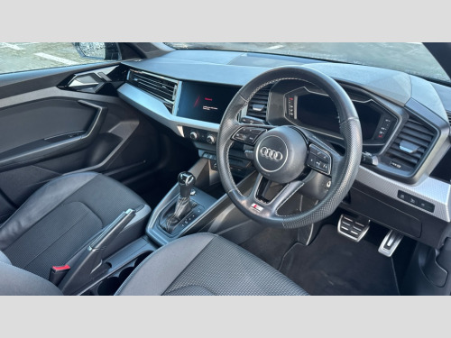 Audi A1 30 TFSI 110 S Line 5dr S Tronic 10.25" Digital instrument cluster display classis style instrument dials + speed,odometer,time,outside temperature,telephone menu + fuel level warning, Audi connect safety emergency and service including E-call, Audi drive select - power steering assistance + engine + gear shift 3 preset modes (auto, dynamic, efficiency and an Individual mode), Audi smartphone interface with connect compatible smartphone via USB directly MMI display + Nav,music, third party apps controlled via MMI controller, Automatic start/stop system, Bluetooth interface, Cruise control, Driver's information system, Electromechanical power steering, Lane departure warning system, Service interval indicator, Speed limiter, Voice control system, Washer fluid level indicator, Sports suspension, 1 x SDXC card reader, 2 x USB type C connection points, DAB Digital radio, MMI radio plus with 8.8" colour MMI display screen and MMI touch, Auto dimming rear view mirror, Body coloured door mirrors, Door sills with aluminium inlays and S Line logo, Electric front and rear windows, Electrically adjustable, heated, folding door mirrors with integrated LED side indicator, Front side air inlets in grained matt black and C frame in titanium black, Heat insulating glass windscreen and side windows, Heated rear windscreen, LED headlights with LED rear lights + dynamic rear indicators + headlight adjustment and high beam, turning light + LED daytime running lights, Radiator grille and rear diffuser in matt titanium black, Radiator protective grille frame in matt aluminium silver, Rain and light sensors, Rear fog lights, Rear wiper, S line badges on front wings, Side front spoiler lips in grained matt black, 12V socket in centre console with two cup holders, 3 rear seats with headrests, 40:60 Split folding rear seat or folded fully, Black cloth headlining, Driver and passenger seat with manual height adjust with forward and backwards adjustment, Front and rear black floor mats with contrast stitching in fine silver, Front head restraints, Height and reach adjustable steering wheel, ISOFIX child seat mounting for front passenger and outer rear seats including top tether attachment point of outer rear seats, Leather gear knob with aluminium trim, Luggage compartment light with front and rear reading lights, Manually adjustable lumbar support in front seats, Stainless steel pedals, LED interior lighting pack - A1, Luggage compartment pack - A1, S line exterior styling pack - A1 Sportback, 3x3 point rear seatbelts, Audi pre-sense front with pedestrain and cyclist recognition, Brake assist function, Driver and front passenger airbag with front side and head airbags, Electronic Stability Control including ABS, EBD, ASR and EDL, Front passenger airbag deactivation switch, Hill hold assist, Seatbelt height adjustment for front seats, Seatbelt monitoring, Tyre pressure warning light, Warning triangle and first aid kit, Anti theft alarm, Anti theft wheel bolts and loose wheel warning, Immobiliser, Remote central locking with 2 foldaway keys, Aluminium trim for control switches, air vents and digital instrument cluster, Silver grey inlays polygon structure in diamond paint finish, Structured grey accent areas including air vents, door handle recesses and centre console in quartz paint finish