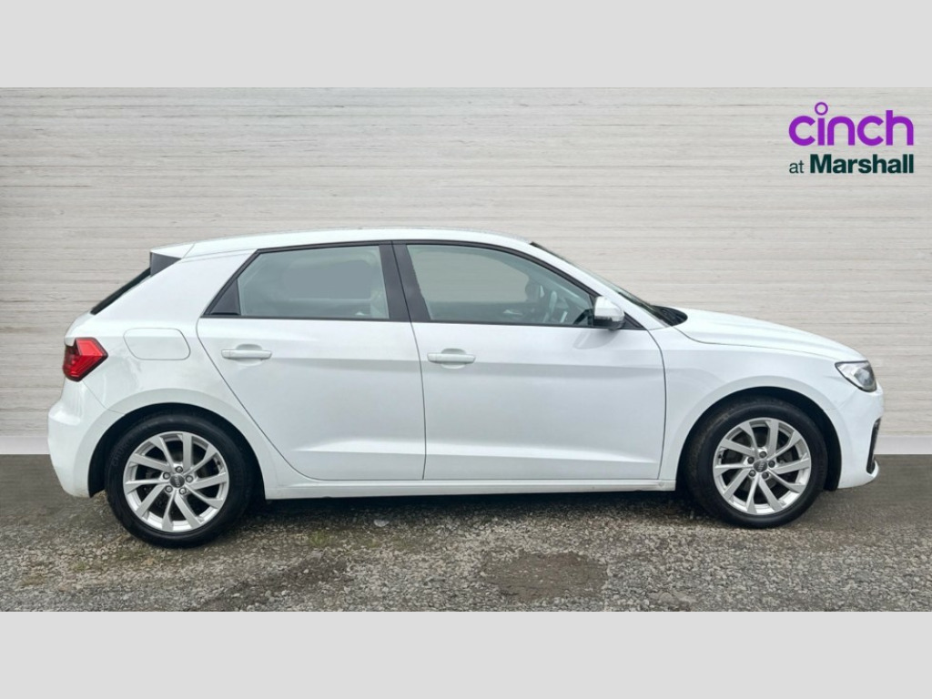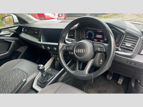Audi A1 1.0 TFSI Sport 5dr Cruise control, Driver's information system, Electro-mechanical PAS, Low washer fluid indicator, Service interval indicator, Voice control system, Additional SD card reader, Audi music interface, Bluetooth audio streaming, DAB Digital radio, Adaptive brake lights, Body coloured bumpers, Body coloured door mirrors, Electric adjustable door mirrors, Electric front windows, Electric rear windows, Front fog lights, Heat insulating glass, Heated door mirrors, Heated rear windscreen, Rear wiper, 12V Accessory socket in centre console, 3 spoke leather multifunction sports steering wheel, Adjustable rear head restraints, Cupholders in centre console, Door sills trims with aluminium inlays, Front floor mats, Front head restraints, Front sports seats, Height adjustable front seats, Illuminated glovebox, Isofix attachments on outer rear seats, Jack and tool kit, Leather handbrake, Lumbar adjustment for front seats, Rake/reach adjustable steering wheel, Split folding rear seats, Titanium grey cloth headlining, Non smoking pack - A1, ABS/EBD, Brake assist function, Driver and passenger side airbags, Driver/Front Passenger airbags, EDL, ESP with ASR, First aid kit, Front and rear seatbelt reminder, Front passenger airbag deactivation, Head airbags, Height adjustable front seatbelts, Tyre pressure monitor, Warning triangle, Locking wheel bolts, Remote control central locking, Thatcham category 1 alarm + immobiliser, Tyre repair kit