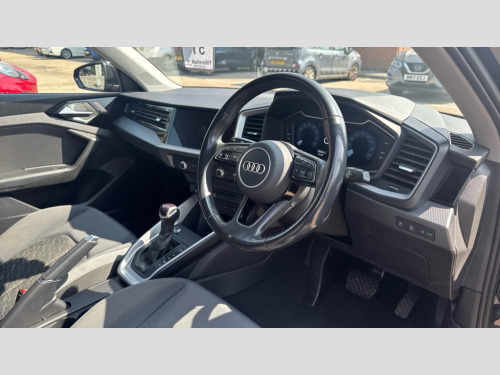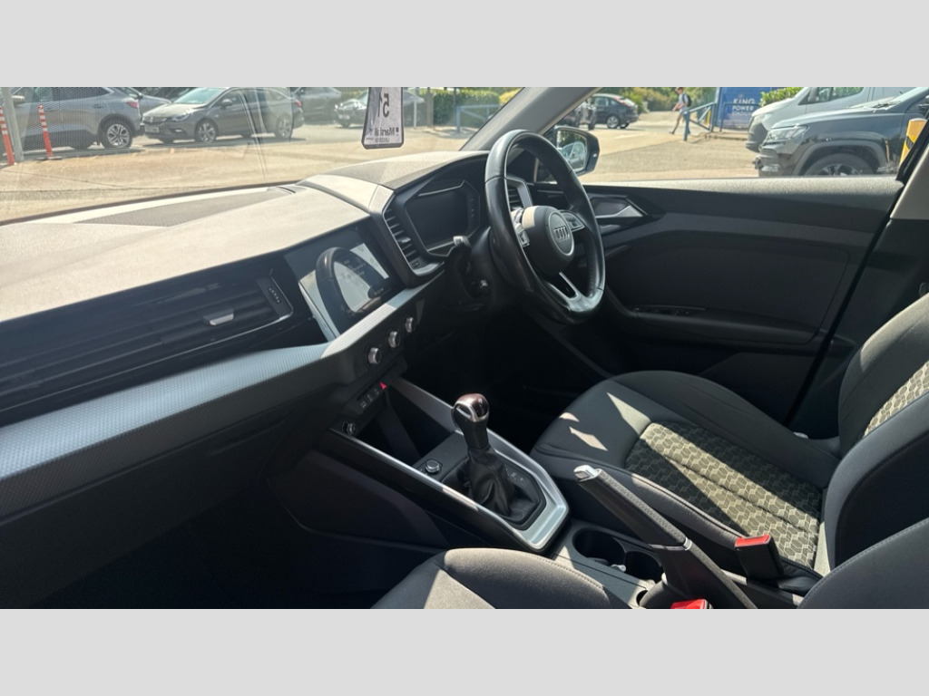 Audi A1 30 TFSI 110 Sport 5dr S Tronic 10.25" Digital instrument cluster display classis style instrument dials + speed,odometer,time,outside temperature,telephone menu + fuel level warning, Audi drive select - power steering assistance + engine + gear shift 3 preset modes (auto, dynamic, efficiency and an Individual mode), Audi smartphone interface with connect compatible smartphone via USB directly MMI display + Nav,music, third party apps controlled via MMI controller, Automatic start/stop system, Bluetooth interface, Cruise control, Driver's information system, Electromechanical power steering, Emergency e-call, Lane departure warning system, Rear parking sensor, Service interval indicator, Speed limiter, Voice control system, Washer fluid level indicator, Dynamic suspension, 2 x USB type C connection points, 6 passive loudspeakers, DAB Digital radio, MMI radio plus with 10.1" colour MMI display screen and MMI touch, Auto dimming rear view mirror, Body coloured bumpers, Body coloured door mirrors, Electric front and rear windows, Electrically adjustable, heated, folding door mirrors with integrated LED side indicator, Front side air inlets in grained matt black and C frame in anthracite black, Heat insulating glass windscreen and side windows, Heated rear windscreen, High level LED brake light, LED headlights with LED rear lights + dynamic rear indicators + headlight adjustment and high beam, turning light + LED daytime running lights, Radiator grille and rear diffuser in matt anthracite black, Radiator protective grille frame in matt aluminium silver, Rain and light sensors, Rear fog lights, Rear side wing doors, Rear wiper, Side front spoiler lips in grained matt black, 12V socket in centre console with two cup holders, 3 rear seats with headrests, 3 seat bench in 2nd row, 3 spoke leather multifunction plus steering wheel, 40:60 Split folding rear seat or folded fully, Black front and rear floor mats, Door sill trims with aluminium inlay, Driver and passenger seat with manual height adjust with forward and backwards adjustment, Front head restraints, Front passenger seat, Grey cloth headlining, Height and reach adjustable steering wheel, ISOFIX child seat mounting for front passenger and outer rear seats including top tether attachment point of outer rear seats, Leather gear knob with aluminium trim, Leather handbrake grip, Luggage compartment light with front and rear reading lights, Manual air conditioning, Manually adjustable lumbar support in front seats, Novum cloth upholstery with front sport seats, Luggage compartment pack - A1, 3x3 point rear seatbelts, Audi pre-sense front with pedestrain and cyclist recognition, Brake assist function, Driver and front passenger airbag with front side and head airbags, Electronic Stability Control including ABS, EBD, ASR and EDL, Front passenger airbag deactivation switch, Hill hold assist, Manual rear child locks, Seatbelt height adjustment for front seats, Seatbelt monitoring, Tyre pressure warning light, Warning triangle and first aid kit, Anti theft alarm, Anti theft wheel bolts and loose wheel warning, Immobiliser, Remote central locking with 2 foldaway keys, Aluminium trim for control switches, air vents and digital instrument cluster, Black dashboard, Silver grey accent areas including air vents, door handle recesses and centre console in diamond paint finish, Slate grey inlays polygon structure in fine paint finish