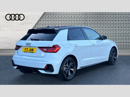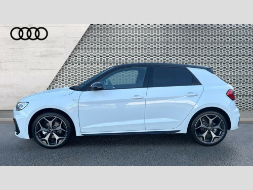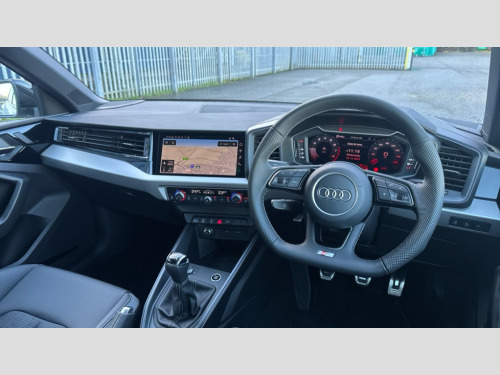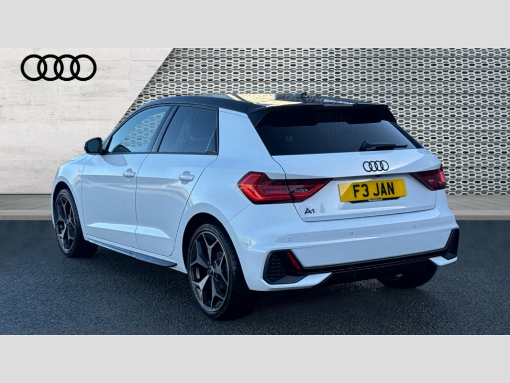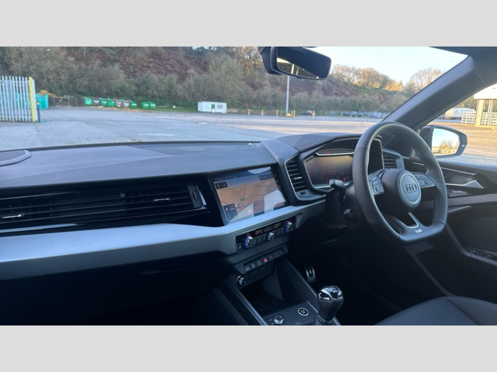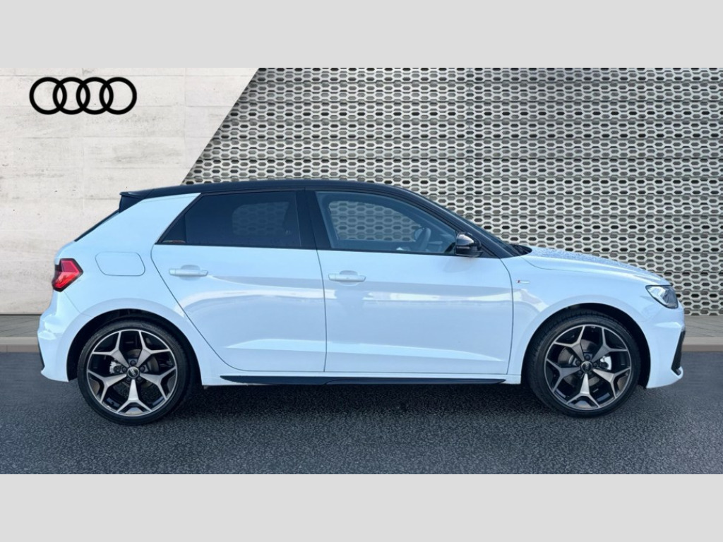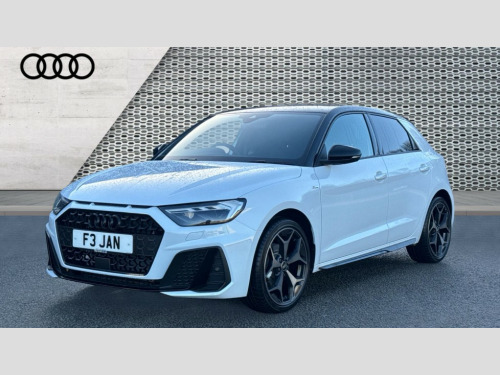 Audi A1 30 TFSI Black Edition 5dr 10.25" Digital instrument cluster display classis style instrument dials + speed,odometer,time,outside temperature,telephone menu + fuel level warning, Advanced driver attention and drowsiness monitor, Audi connect emergency call and service, Audi drive select, Audi remote connect and control, Bluetooth interface, Camera based traffic sign recognition, Cruise control, Driver's information system, Electromechanical power steering, Lane departure warning system, Rear parking sensor, Service interval indicator, Smartphone interface, Speed limiter, Start stop system with recuperation, Voice control system, Washer fluid level indicator, Sports suspension, 2 x USB type C connection points, 6 loudspeakers, DAB Digital radio, MMI radio plus with 10.1" colour MMI display screen and MMI touch, Auto dimming rear view mirror, Black door mirror housings, Black side skirts, Body coloured bumpers, Door sill trims with aluminium inlays and logo, Electric front and rear windows, Electrically adjustable, heated, folding door mirrors with integrated LED side indicator, Front side air inlets in grained matt black and C frame in anthracite black, Front wing badges, Headlight cleaning system, Heat insulating glass windscreen and side windows, Heated rear windscreen, High level LED brake light, LED daytime running lights, LED headlights with range control LED rear lights + dynamic rear indicators, Light and rain sensors, Privacy glass, Radiator grille and rear diffuser in matt anthracite black, Radiator protective grille frame in matt aluminium silver, Rear fog lights, Rear side wing doors, Rear wiper, Side front spoiler lips in grained matt black, 12V socket in centre console with two cup holders, 3 rear seats with headrests, 3 seat bench in 2nd row, 3 spoke flat bottomed multi-function plus leather steering wheel with S badging, grips in preforated leather and contrast stitching, 40:60 Split folding rear seat or fully collapsed, Black carpets, Black cloth headlining, Front and rear velour black floor mats with contrast stitching in fine silver, Front head restraints, Front passenger seat, Height and reach adjustable steering wheel, Interior lighting includes roof module, front and rear reading lights and right luggage compartment lighting, ISOFIX child seat mounting for front passenger and outer rear seats including top tether attachment point of outer rear seats, Leather gear knob with aluminium trim, Leather handbrake grip, Manual air conditioning, Manual height adjustable for driver and front passenger seat, Manually adjustable lumbar support in front seats, Stainless steel pedals, Ambient lighting package - A1, Black styling pack - A1 Sportback Black Edition, Luggage compartment pack - A1, 3x3 point rear seatbelts, Audi pre-sense front with pedestrain and cyclist recognition, Brake assist function, Driver and front passenger airbag with front side and head airbags, Electronic Stability Control including ABS, EBD, ASR and EDL, Front passenger airbag deactivation switch, Hill hold assist, Manual rear child locks, Seatbelt height adjustment for front seats, Seatbelt monitoring, Tyre pressure loss indicator, Warning triangle and first aid kit, Anti theft alarm, Anti theft wheel bolts, Immobiliser, Remote control key with safelock, Aluminium trim for control switches, air vents and digital instrument cluster, Black dashboard, Silver grey inlays polygon structure in diamond paint finish, Structured grey accent surfaces insert of air vents, interior door handle recesses and centre console in quartz paint finish