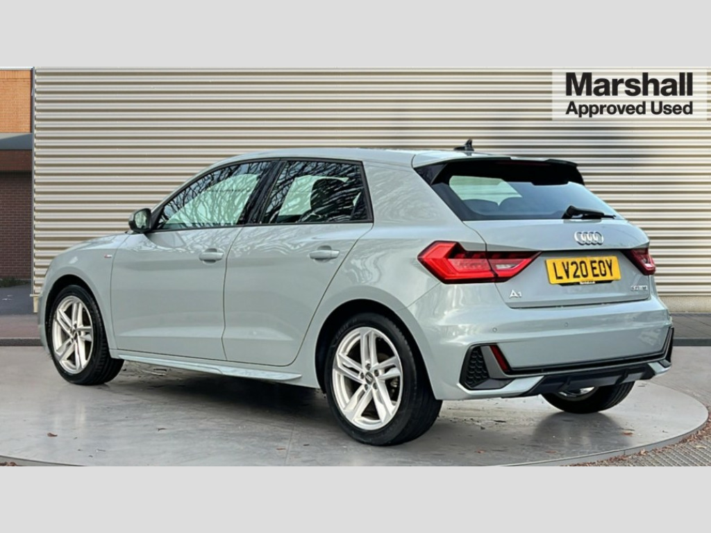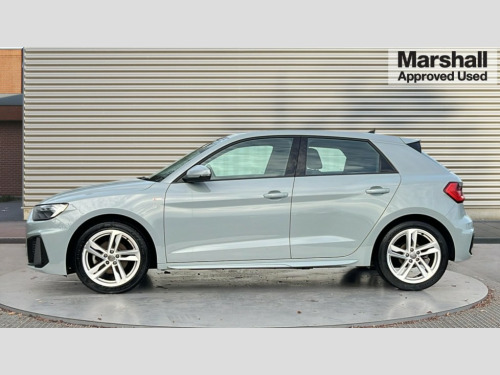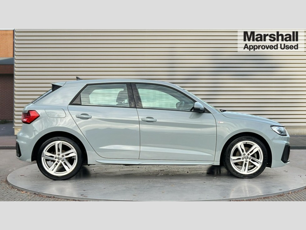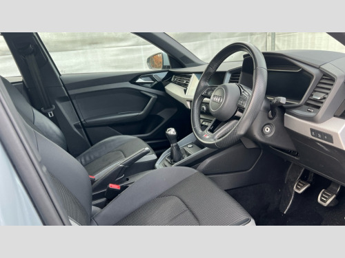 Audi A1 30 TFSI S Line 5dr 10.25" Digital instrument cluster display classis style instrument dials + speed,odometer,time,outside temperature,telephone menu + fuel level warning, Audi connect safety emergency and service including E-call, Audi drive select - power steering assistance + engine, Audi smartphone interface with connect compatible smartphone via USB directly MMI display + Nav,music, third party apps controlled via MMI controller, Automatic start/stop system, Bluetooth interface, Cruise control, Driver's information system, Electromechanical power steering, Lane departure warning system, Rear parking sensor, Service interval indicator, Speed limiter, Voice control system, Washer fluid level indicator, Sports suspension, 1 x SDXC card reader, 1 x USB type C and 1 USB type A charging points, DAB Digital radio, MMI radio plus with 8.8" colour MMI display screen and MMI touch, Auto dimming rear view mirror, Body coloured door mirrors, Door sills with aluminium inlays and S Line logo, Electric front and rear windows, Electrically adjustable, heated, folding door mirrors with integrated LED side indicator, Front side air inlets in grained matt black and C frame in titanium black, Heat insulating glass windscreen and side windows, Heated rear windscreen, LED headlights with LED rear lights + dynamic rear indicators + headlight adjustment and high beam, turning light + LED daytime running lights, Radiator grille and rear diffuser in matt titanium black, Radiator protective grille frame in matt aluminium silver, Rain and light sensors, Rear fog lights, Rear wiper, S line badges on front wings, Side front spoiler lips in grained matt black, 12V socket in centre console with two cup holders, 3 rear seats with headrests, 40:60 Split folding rear seat or folded fully, Black cloth headlining, Driver and passenger seat with manual height adjust with forward and backwards adjustment, Front and rear black floor mats with contrast stitching in fine silver, Front head restraints, Height and reach adjustable steering wheel, ISOFIX child seat mounting for front passenger and outer rear seats including top tether attachment point of outer rear seats, Leather gear knob with aluminium trim, Luggage compartment light with front and rear reading lights, Manually adjustable lumbar support in front seats, Stainless steel pedals, LED interior lighting pack - A1, Luggage compartment pack - A1, S line exterior styling pack - A1 Sportback, 3x3 point rear seatbelts, Audi pre-sense front with pedestrain and cyclist recognition, Brake assist function, Driver and front passenger airbag with front side and head airbags, Electronic Stability Control including ABS, EBD, ASR and EDL, Front and rear seatbelt reminder, Front passenger airbag deactivation switch, Hill hold assist, Seatbelt height adjustment for front seats, Seatbelt monitoring, Tyre pressure warning light, Warning triangle and first aid kit, Anti theft alarm, Anti theft wheel bolts and loose wheel warning, Immobiliser, Remote central locking with 2 foldaway keys, Aluminium trim for control switches, air vents and digital instrument cluster, Silver grey inlays polygon structure in diamond paint finish, Structured grey accent areas including air vents, door handle recesses and centre console in quartz paint finish