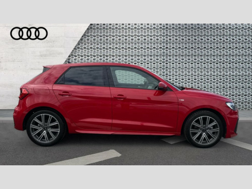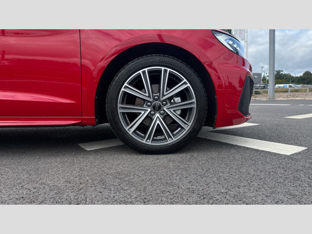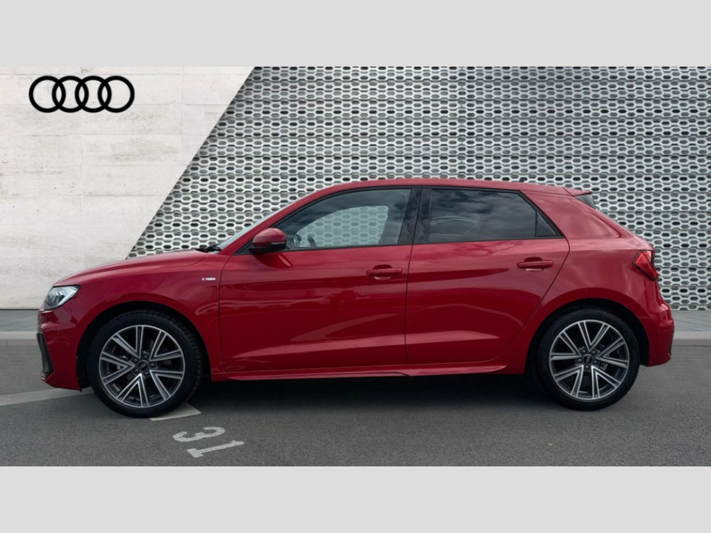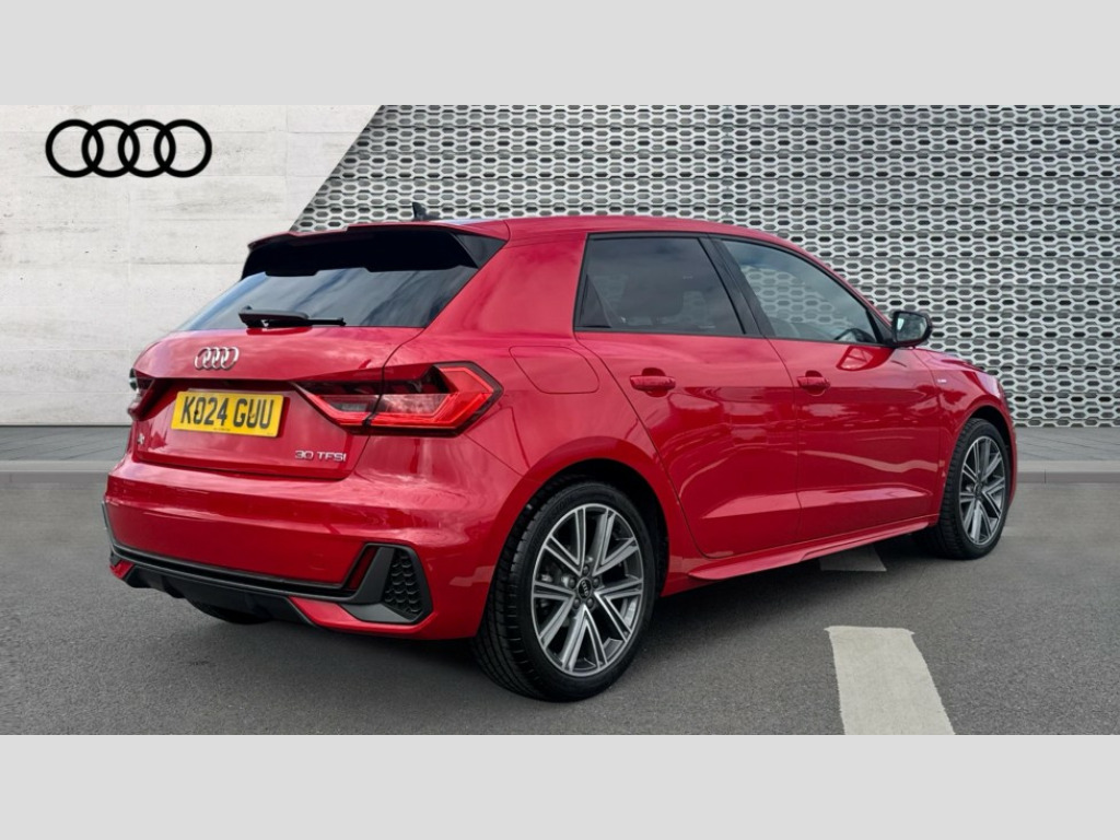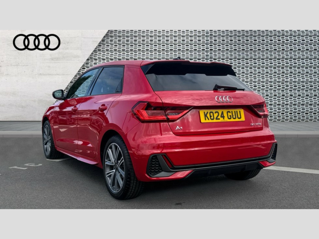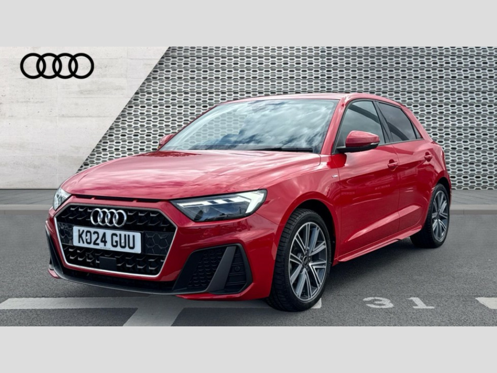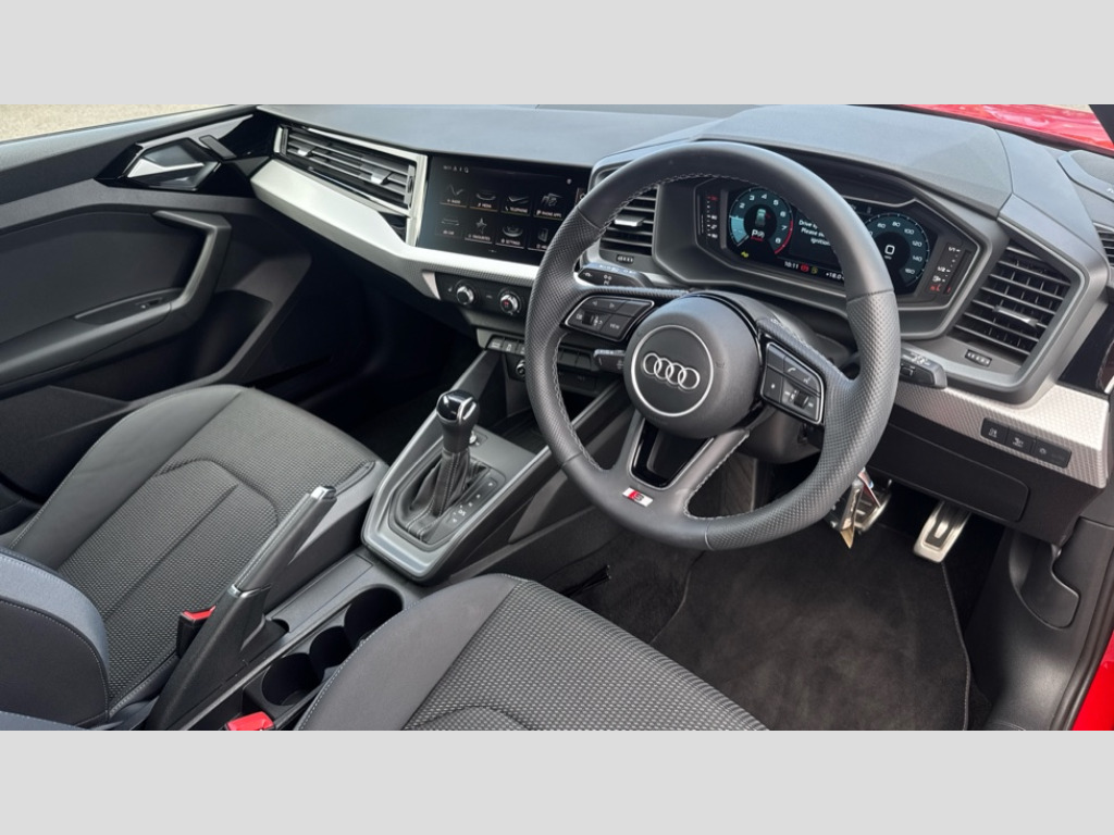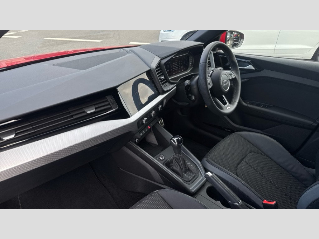 Audi A1 30 TFSI S Line 5dr S Tronic 10.25" Digital instrument cluster display classis style instrument dials + speed,odometer,time,outside temperature,telephone menu + fuel level warning, Advanced driver attention and drowsiness monitor, Audi connect emergency call and service, Audi drive select, Audi remote connect and control, Audi smartphone interface, Bluetooth interface, Camera based traffic sign recognition, Cruise control, Driver's information system, Electromechanical power steering, Lane departure warning system, Rear parking sensor, Service interval indicator, Speed limiter, Start stop system with recuperation, Voice control system, Washer fluid level indicator, Sports suspension, 2 x USB type C connection points, 6 loudspeakers, DAB Digital radio, MMI radio plus with 10.1" colour MMI display screen and MMI touch, Auto dimming rear view mirror, Body coloured door mirrors, Door sill trims with aluminium inlays and S line logo in front, Electric front and rear windows, Electrically adjustable, heated, folding door mirrors with integrated LED side indicator, Front side air inlets in grained matt black and C frame in anthracite black, Headlight cleaning system, Heat insulating glass windscreen and side windows, Heated rear windscreen, High level LED brake light, LED daytime running lights, LED headlights with range control LED rear lights + dynamic rear indicators, Privacy glass, Radiator grille and rear diffuser in matt anthracite black, Radiator protective grille frame in matt aluminium silver, Rain and light sensors, Rear fog lights, Rear side wing doors, Rear wiper, S line badges on front wings, Side front spoiler lips in grained matt black, 12V socket in centre console with two cup holders, 3 rear seats with headrests, 3 seat bench in 2nd row, 3 spoke leather multi-function plus steering wheel features S badging and grips in perforated leather with contrast stitching, 40:60 Split folding rear seat or fully collapsed, Black cloth headlining, Front and rear velour black floor mats with contrast stitching in fine silver, Front head restraints, Front passenger seat, Height and reach adjustable steering wheel, Interior lighting includes roof module, front and rear reading lights and right luggage compartment lighting, ISOFIX child seat mounting for front passenger and outer rear seats including top tether attachment point of outer rear seats, Leather gear knob with aluminium trim, Leather handbrake grip, Manual air conditioning, Manual height adjustable for driver and front passenger seat, Manually adjustable lumbar support in front seats, Stainless steel pedals, Ambient lighting package - A1, Luggage compartment pack - A1, S line exterior styling pack - A1 Sportback, 3x3 point rear seatbelts, Audi pre-sense front with pedestrain and cyclist recognition, Brake assist function, Driver and front passenger airbag with front side and head airbags, Electronic Stability Control including ABS, EBD, ASR and EDL, Front passenger airbag deactivation switch, Hill hold assist, Manual rear child locks, Seatbelt height adjustment for front seats, Seatbelt monitoring, Tyre pressure loss indicator, Warning triangle and first aid kit, Anti theft alarm, Anti theft wheel bolts, Immobiliser, Remote control key with safelock, Aluminium trim for control switches, air vents and digital instrument cluster, Black dashboard, Silver grey inlays polygon structure in diamond paint finish, Structured grey accent surfaces insert of air vents, interior door handle recesses and centre console in quartz paint finish