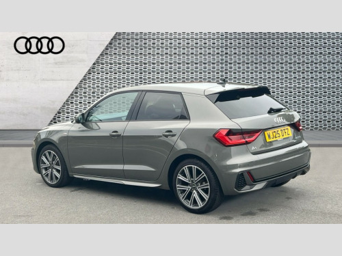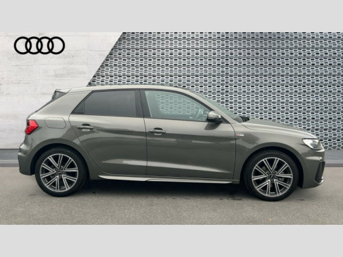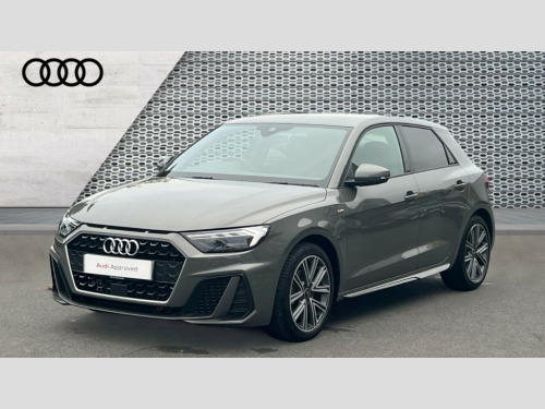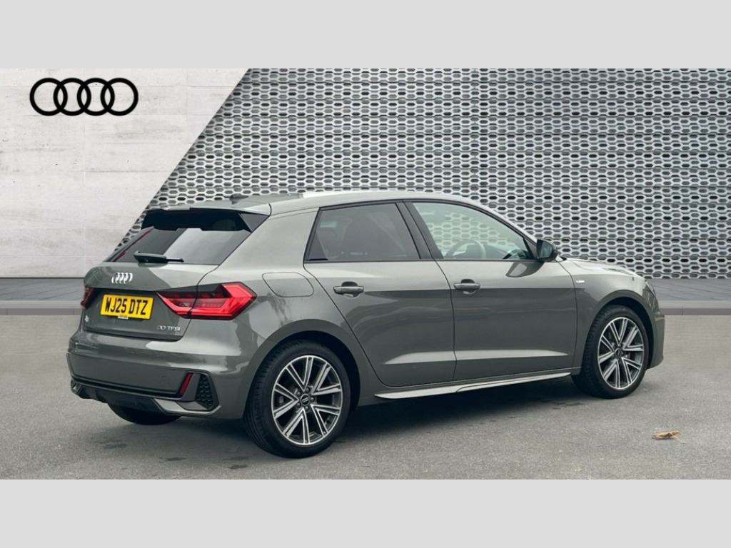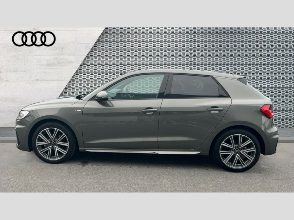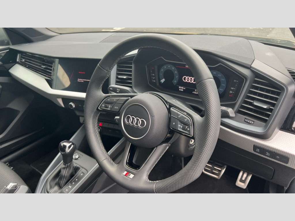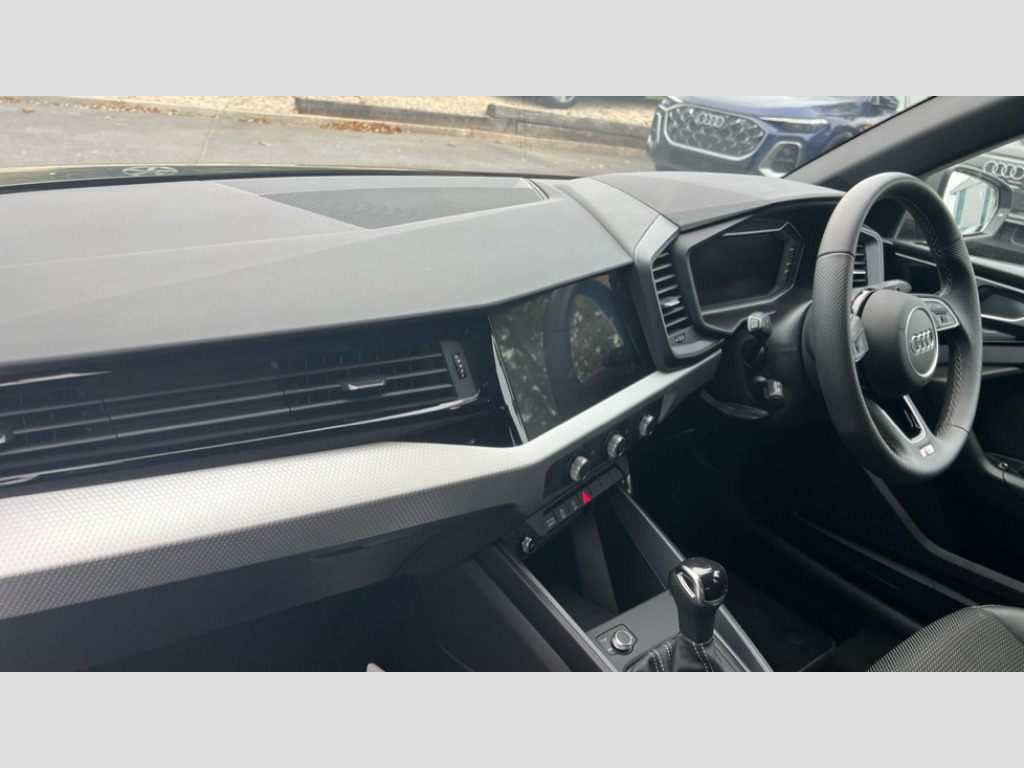 Audi A1 30 TFSI S Line 5dr S Tronic 10.25" Digital instrument cluster display classis style instrument dials + speed,odometer,time,outside temperature,telephone menu + fuel level warning, Advanced driver attention and drowsiness monitor, Audi connect emergency call and service, Audi drive select, Audi remote connect and control, Audi smartphone interface, Bluetooth interface, Camera based traffic sign recognition, Cruise control, Driver's information system, Electromechanical power steering, Lane departure warning system, Rear parking sensor, Service interval indicator, Speed limiter, Start stop system with recuperation, Voice control system, Washer fluid level indicator, Sports suspension, 2 x USB type C connection points, 6 loudspeakers, DAB Digital radio, MMI radio plus with 10.1" colour MMI display screen and MMI touch, Auto dimming rear view mirror, Body coloured door mirrors, Door sill trims with aluminium inlays and S line logo in front, Electric front and rear windows, Electrically adjustable, heated, folding door mirrors with integrated LED side indicator, Front side air inlets in grained matt black and C frame in anthracite black, Headlight cleaning system, Heat insulating glass windscreen and side windows, Heated rear windscreen, High level LED brake light, LED daytime running lights, LED headlights with range control LED rear lights + dynamic rear indicators, Privacy glass, Radiator grille and rear diffuser in matt anthracite black, Radiator protective grille frame in matt aluminium silver, Rain and light sensors, Rear fog lights, Rear side wing doors, Rear wiper, S line badges on front wings, Side front spoiler lips in grained matt black, 12V socket in centre console with two cup holders, 3 rear seats with headrests, 3 seat bench in 2nd row, 3 spoke leather multi-function plus steering wheel features S badging and grips in perforated leather with contrast stitching, 40:60 Split folding rear seat or fully collapsed, Black cloth headlining, Front and rear velour black floor mats with contrast stitching in fine silver, Front head restraints, Front passenger seat, Height and reach adjustable steering wheel, Interior lighting includes roof module, front and rear reading lights and right luggage compartment lighting, ISOFIX child seat mounting for front passenger and outer rear seats including top tether attachment point of outer rear seats, Leather gear knob with aluminium trim, Leather handbrake grip, Manual air conditioning, Manual height adjustable for driver and front passenger seat, Manually adjustable lumbar support in front seats, Stainless steel pedals, Ambient lighting package - A1, Luggage compartment pack - A1, S line exterior styling pack - A1 Sportback, 3x3 point rear seatbelts, Audi pre-sense front with pedestrain and cyclist recognition, Brake assist function, Driver and front passenger airbag with front side and head airbags, Electronic Stability Control including ABS, EBD, ASR and EDL, Front passenger airbag deactivation switch, Hill hold assist, Manual rear child locks, Seatbelt height adjustment for front seats, Seatbelt monitoring, Tyre pressure loss indicator, Warning triangle and first aid kit, Anti theft alarm, Anti theft wheel bolts, Immobiliser, Remote control key with safelock, Aluminium trim for control switches, air vents and digital instrument cluster, Black dashboard, Silver grey inlays polygon structure in diamond paint finish, Structured grey accent surfaces insert of air vents, interior door handle recesses and centre console in quartz paint finish