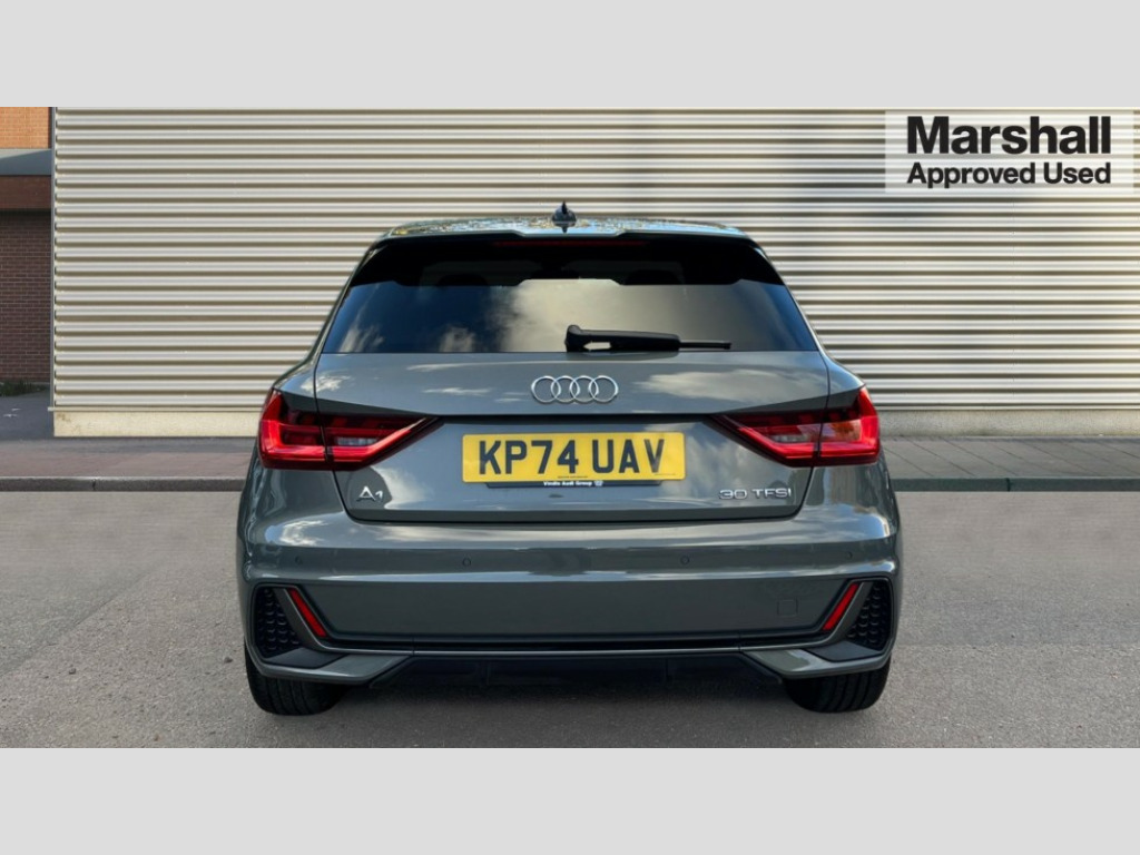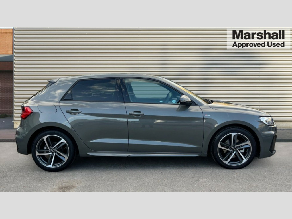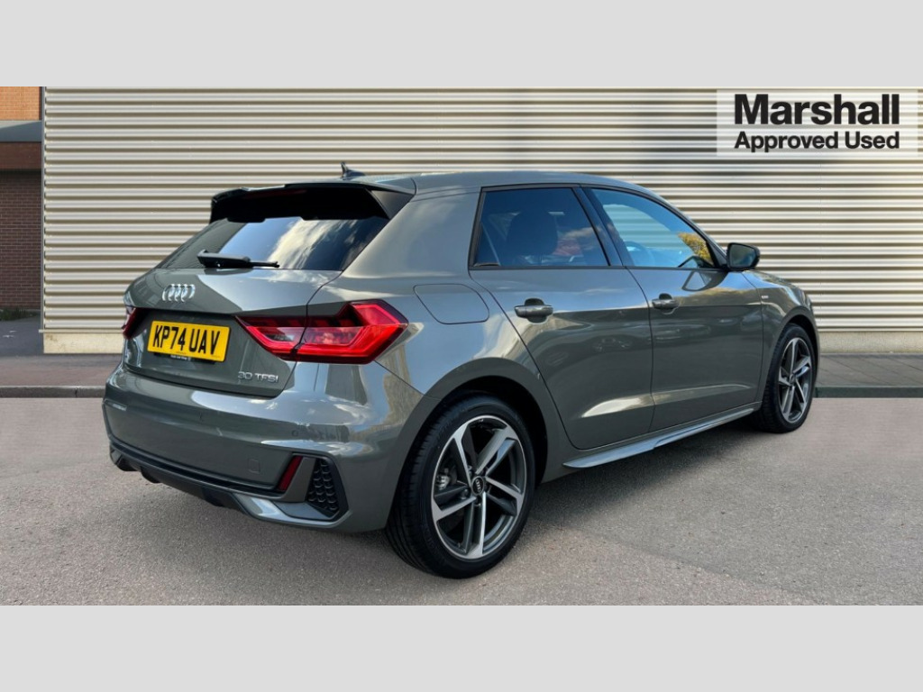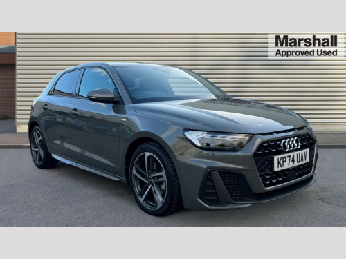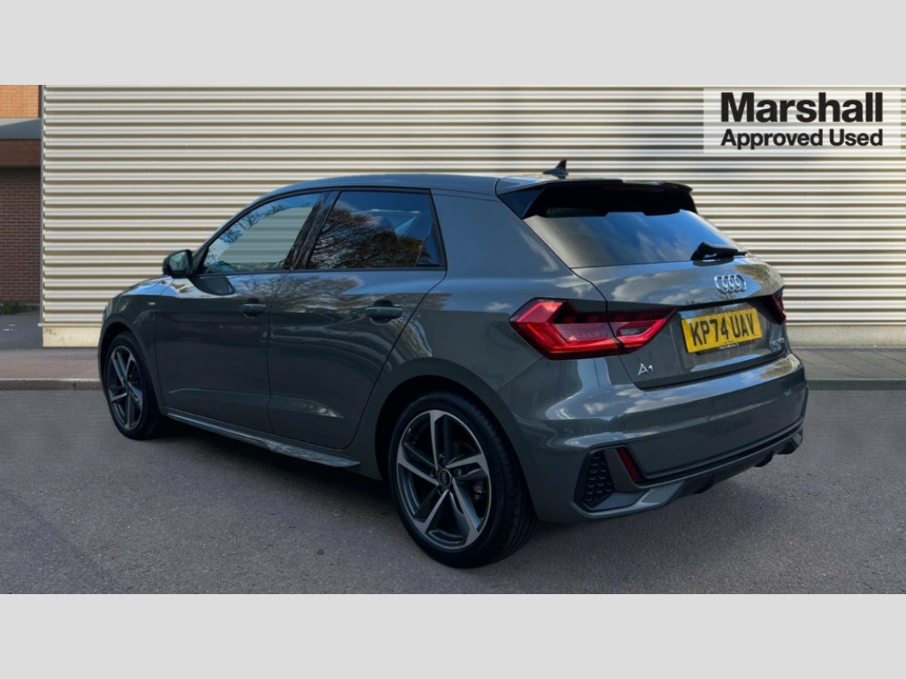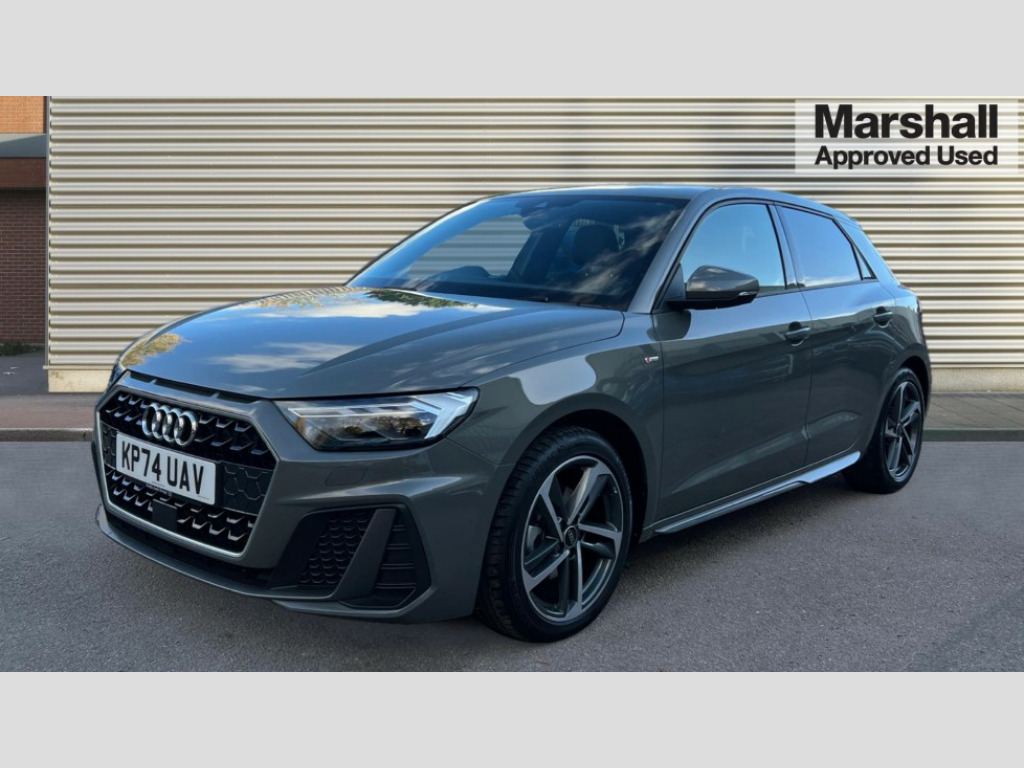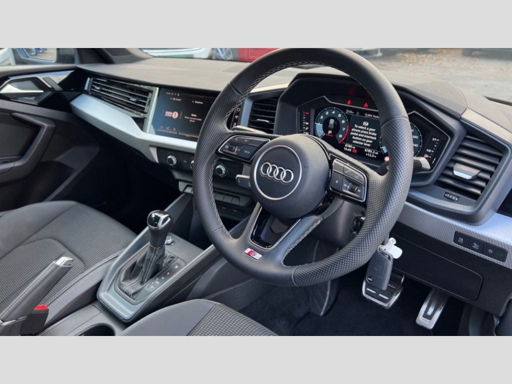 Audi A1 30 TFSI S Line 5dr S Tronic 10.25" Digital instrument cluster display classis style instrument dials + speed,odometer,time,outside temperature,telephone menu + fuel level warning, Advanced driver attention and drowsiness monitor, Audi connect emergency call and service, Audi drive select, Audi remote connect and control, Audi smartphone interface, Bluetooth interface, Camera based traffic sign recognition, Cruise control, Driver's information system, Electromechanical power steering, Lane departure warning system, Rear parking sensor, Service interval indicator, Speed limiter, Start stop system with recuperation, Voice control system, Washer fluid level indicator, Sports suspension, 2 x USB type C connection points, 6 loudspeakers, DAB Digital radio, MMI radio plus with 10.1" colour MMI display screen and MMI touch, Auto dimming rear view mirror, Body coloured door mirrors, Door sill trims with aluminium inlays and S line logo in front, Electric front and rear windows, Electrically adjustable, heated, folding door mirrors with integrated LED side indicator, Front side air inlets in grained matt black and C frame in anthracite black, Headlight cleaning system, Heat insulating glass windscreen and side windows, Heated rear windscreen, High level LED brake light, LED daytime running lights, LED headlights with range control LED rear lights + dynamic rear indicators, Privacy glass, Radiator grille and rear diffuser in matt anthracite black, Radiator protective grille frame in matt aluminium silver, Rain and light sensors, Rear fog lights, Rear side wing doors, Rear wiper, S line badges on front wings, Side front spoiler lips in grained matt black, 12V socket in centre console with two cup holders, 3 rear seats with headrests, 3 seat bench in 2nd row, 3 spoke leather multi-function plus steering wheel features S badging and grips in perforated leather with contrast stitching, 40:60 Split folding rear seat or fully collapsed, Black cloth headlining, Front and rear velour black floor mats with contrast stitching in fine silver, Front head restraints, Front passenger seat, Height and reach adjustable steering wheel, Interior lighting includes roof module, front and rear reading lights and right luggage compartment lighting, ISOFIX child seat mounting for front passenger and outer rear seats including top tether attachment point of outer rear seats, Leather gear knob with aluminium trim, Leather handbrake grip, Manual air conditioning, Manual height adjustable for driver and front passenger seat, Manually adjustable lumbar support in front seats, Stainless steel pedals, Ambient lighting package - A1, Luggage compartment pack - A1, S line exterior styling pack - A1 Sportback, 3x3 point rear seatbelts, Audi pre-sense front with pedestrain and cyclist recognition, Brake assist function, Driver and front passenger airbag with front side and head airbags, Electronic Stability Control including ABS, EBD, ASR and EDL, Front passenger airbag deactivation switch, Hill hold assist, Manual rear child locks, Seatbelt height adjustment for front seats, Seatbelt monitoring, Tyre pressure loss indicator, Warning triangle and first aid kit, Anti theft alarm, Anti theft wheel bolts, Immobiliser, Remote control key with safelock, Aluminium trim for control switches, air vents and digital instrument cluster, Black dashboard, Silver grey inlays polygon structure in diamond paint finish, Structured grey accent surfaces insert of air vents, interior door handle recesses and centre console in quartz paint finish