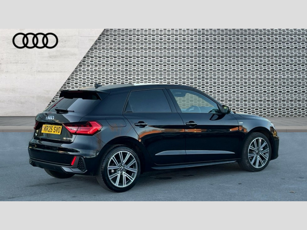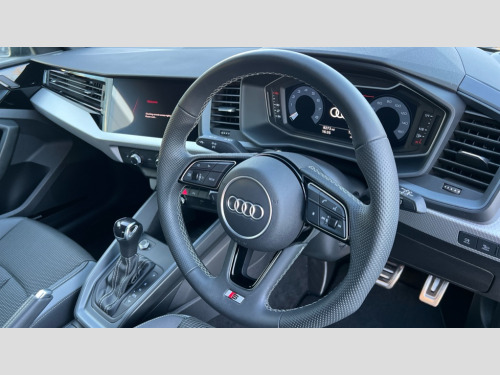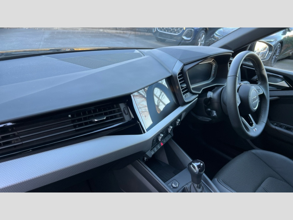 Audi A1 30 TFSI S Line 5dr S Tronic 10.25" Digital instrument cluster display classis style instrument dials + speed,odometer,time,outside temperature,telephone menu + fuel level warning, Advanced driver attention and drowsiness monitor, Audi connect emergency call and service, Audi drive select, Audi remote connect and control, Audi smartphone interface, Bluetooth interface, Camera based traffic sign recognition, Cruise control, Driver's information system, Electromechanical power steering, Lane departure warning system, Rear parking sensor, Service interval indicator, Speed limiter, Start stop system with recuperation, Voice control system, Washer fluid level indicator, Sports suspension, 2 x USB type C connection points, 6 loudspeakers, DAB Digital radio, MMI radio plus with 10.1" colour MMI display screen and MMI touch, Auto dimming rear view mirror, Body coloured door mirrors, Door sill trims with aluminium inlays and S line logo in front, Electric front and rear windows, Electrically adjustable, heated, folding door mirrors with integrated LED side indicator, Front side air inlets in grained matt black and C frame in anthracite black, Headlight cleaning system, Heat insulating glass windscreen and side windows, Heated rear windscreen, High level LED brake light, LED daytime running lights, LED headlights with range control LED rear lights + dynamic rear indicators, Privacy glass, Radiator grille and rear diffuser in matt anthracite black, Radiator protective grille frame in matt aluminium silver, Rain and light sensors, Rear fog lights, Rear side wing doors, Rear wiper, S line badges on front wings, Side front spoiler lips in grained matt black, 12V socket in centre console with two cup holders, 3 rear seats with headrests, 3 seat bench in 2nd row, 3 spoke leather multi-function plus steering wheel features S badging and grips in perforated leather with contrast stitching, 40:60 Split folding rear seat or fully collapsed, Black cloth headlining, Front and rear velour black floor mats with contrast stitching in fine silver, Front head restraints, Front passenger seat, Height and reach adjustable steering wheel, Interior lighting includes roof module, front and rear reading lights and right luggage compartment lighting, ISOFIX child seat mounting for front passenger and outer rear seats including top tether attachment point of outer rear seats, Leather gear knob with aluminium trim, Leather handbrake grip, Manual air conditioning, Manual height adjustable for driver and front passenger seat, Manually adjustable lumbar support in front seats, Stainless steel pedals, Ambient lighting package - A1, Luggage compartment pack - A1, S line exterior styling pack - A1 Sportback, 3x3 point rear seatbelts, Audi pre-sense front with pedestrain and cyclist recognition, Brake assist function, Driver and front passenger airbag with front side and head airbags, Electronic Stability Control including ABS, EBD, ASR and EDL, Front passenger airbag deactivation switch, Hill hold assist, Manual rear child locks, Seatbelt height adjustment for front seats, Seatbelt monitoring, Tyre pressure loss indicator, Warning triangle and first aid kit, Anti theft alarm, Anti theft wheel bolts, Immobiliser, Remote control key with safelock, Aluminium trim for control switches, air vents and digital instrument cluster, Black dashboard, Silver grey inlays polygon structure in diamond paint finish, Structured grey accent surfaces insert of air vents, interior door handle recesses and centre console in quartz paint finish