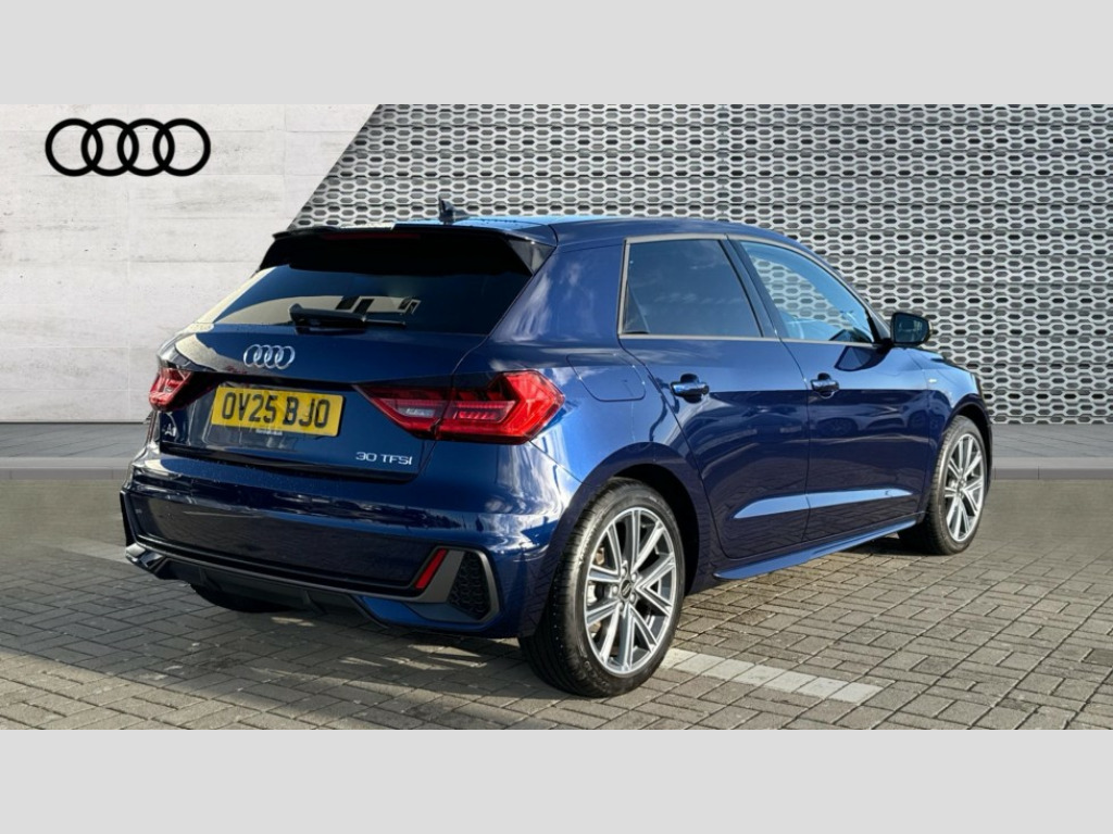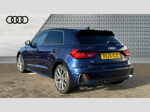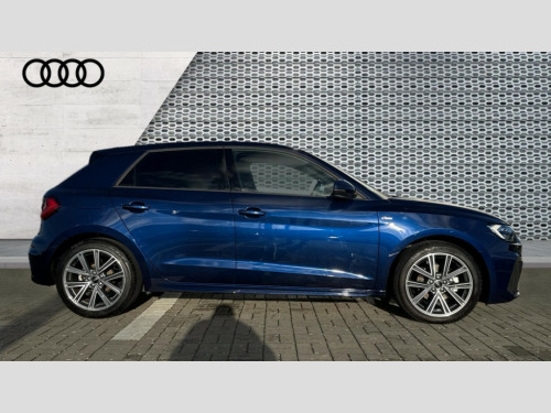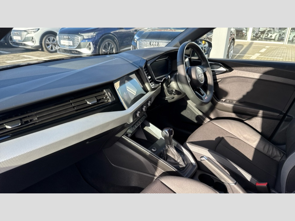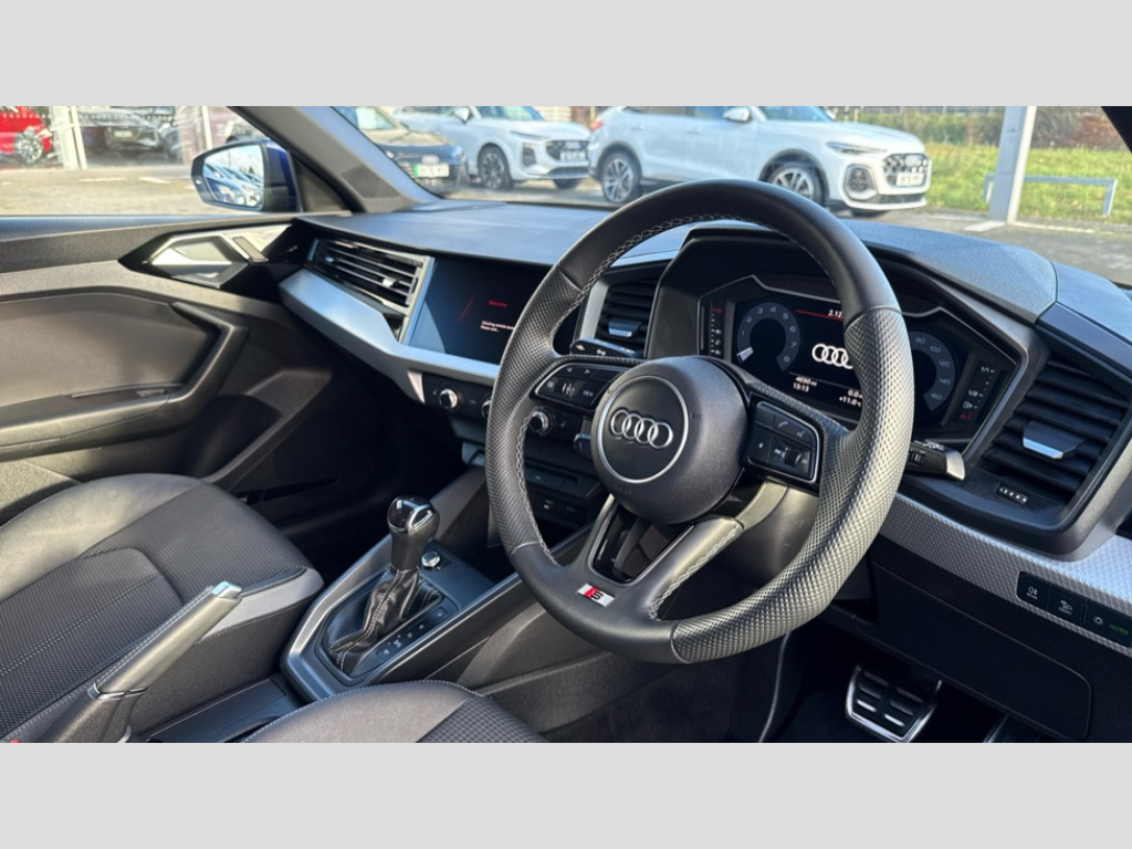 Audi A1 30 TFSI S Line 5dr S Tronic 10.25" Digital instrument cluster display classis style instrument dials + speed,odometer,time,outside temperature,telephone menu + fuel level warning, Advanced driver attention and drowsiness monitor, Audi connect emergency call and service, Audi drive select, Audi remote connect and control, Audi smartphone interface, Bluetooth interface, Camera based traffic sign recognition, Cruise control, Driver's information system, Electromechanical power steering, Lane departure warning system, Rear parking sensor, Service interval indicator, Speed limiter, Start stop system with recuperation, Voice control system, Washer fluid level indicator, Sports suspension, 2 x USB type C connection points, 6 loudspeakers, DAB Digital radio, MMI radio plus with 10.1" colour MMI display screen and MMI touch, Auto dimming rear view mirror, Body coloured door mirrors, Door sill trims with aluminium inlays and S line logo in front, Electric front and rear windows, Electrically adjustable, heated, folding door mirrors with integrated LED side indicator, Front side air inlets in grained matt black and C frame in anthracite black, Headlight cleaning system, Heat insulating glass windscreen and side windows, Heated rear windscreen, High level LED brake light, LED daytime running lights, LED headlights with range control LED rear lights + dynamic rear indicators, Privacy glass, Radiator grille and rear diffuser in matt anthracite black, Radiator protective grille frame in matt aluminium silver, Rain and light sensors, Rear fog lights, Rear side wing doors, Rear wiper, S line badges on front wings, Side front spoiler lips in grained matt black, 12V socket in centre console with two cup holders, 3 rear seats with headrests, 3 seat bench in 2nd row, 3 spoke leather multi-function plus steering wheel features S badging and grips in perforated leather with contrast stitching, 40:60 Split folding rear seat or fully collapsed, Black cloth headlining, Front and rear velour black floor mats with contrast stitching in fine silver, Front head restraints, Front passenger seat, Height and reach adjustable steering wheel, Interior lighting includes roof module, front and rear reading lights and right luggage compartment lighting, ISOFIX child seat mounting for front passenger and outer rear seats including top tether attachment point of outer rear seats, Leather gear knob with aluminium trim, Leather handbrake grip, Manual air conditioning, Manual height adjustable for driver and front passenger seat, Manually adjustable lumbar support in front seats, Stainless steel pedals, Ambient lighting package - A1, Luggage compartment pack - A1, S line exterior styling pack - A1 Sportback, 3x3 point rear seatbelts, Audi pre-sense front with pedestrain and cyclist recognition, Brake assist function, Driver and front passenger airbag with front side and head airbags, Electronic Stability Control including ABS, EBD, ASR and EDL, Front passenger airbag deactivation switch, Hill hold assist, Manual rear child locks, Seatbelt height adjustment for front seats, Seatbelt monitoring, Tyre pressure loss indicator, Warning triangle and first aid kit, Anti theft alarm, Anti theft wheel bolts, Immobiliser, Remote control key with safelock, Aluminium trim for control switches, air vents and digital instrument cluster, Black dashboard, Silver grey inlays polygon structure in diamond paint finish, Structured grey accent surfaces insert of air vents, interior door handle recesses and centre console in quartz paint finish