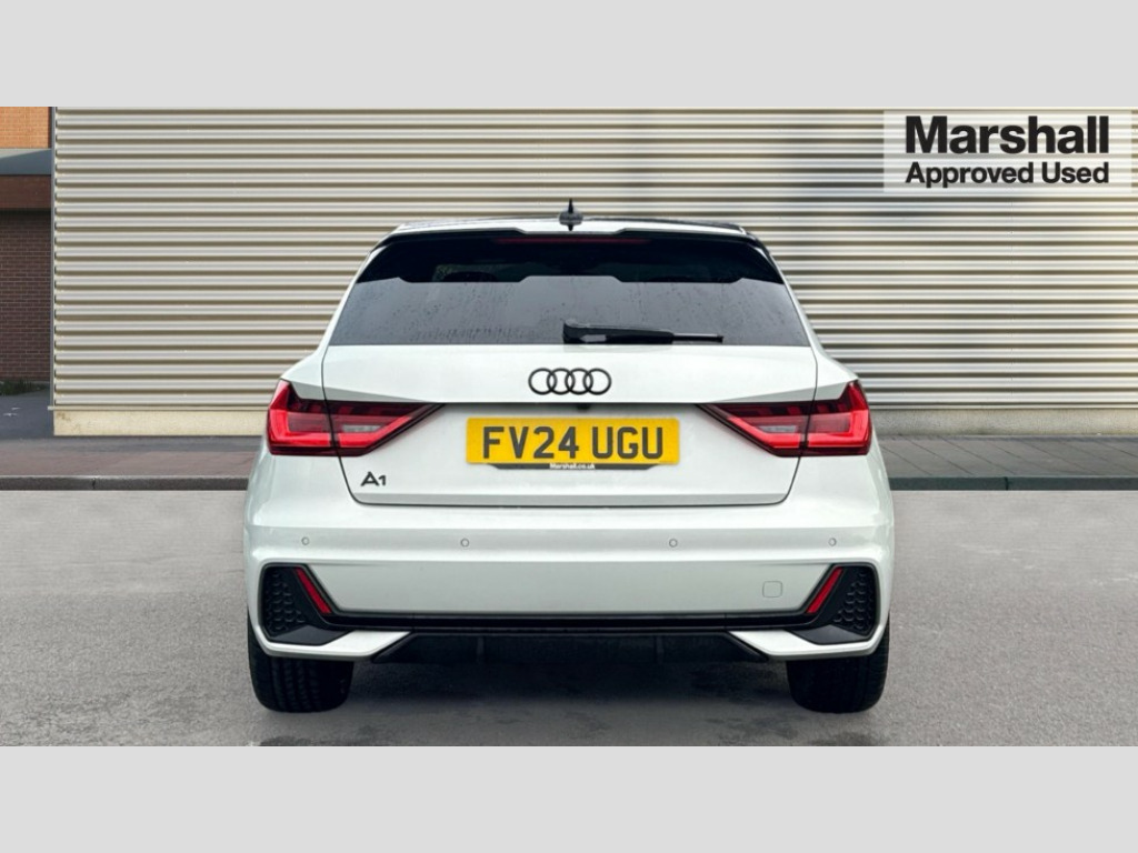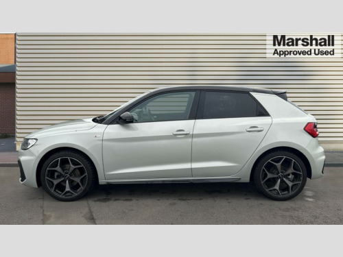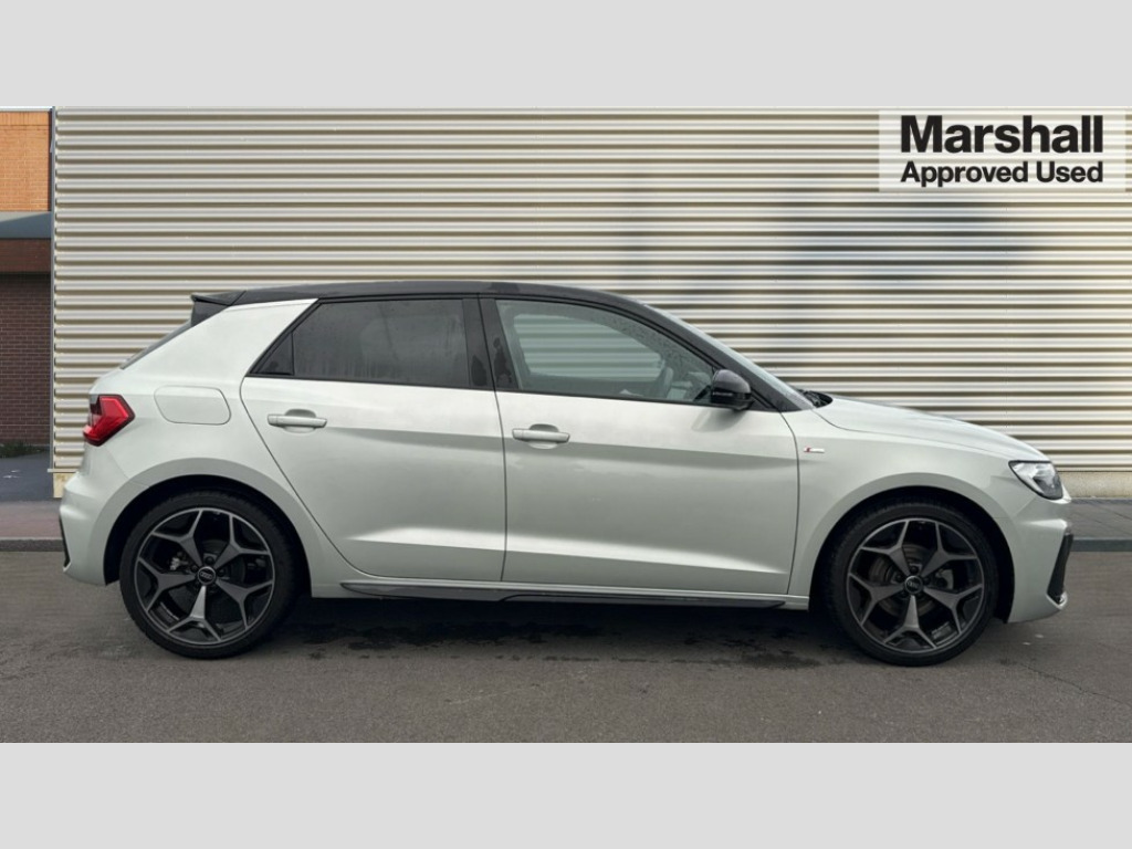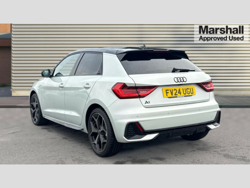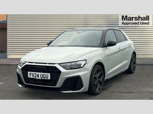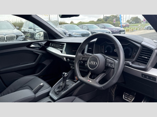 Audi A1 35 TFSI Black Edition 5dr S Tronic 10.25" Digital instrument cluster display classis style instrument dials + speed,odometer,time,outside temperature,telephone menu + fuel level warning, Advanced driver attention and drowsiness monitor, Audi connect emergency call and service, Audi drive select, Audi remote connect and control, Audi smartphone interface, Bluetooth interface, Camera based traffic sign recognition, Cruise control, Driver's information system, Electromechanical power steering, Lane departure warning system, Rear parking sensor, Service interval indicator, Speed limiter, Start stop system with recuperation, Voice control system, Washer fluid level indicator, Sports suspension, 2 x USB type C connection points, 6 loudspeakers, DAB Digital radio, MMI radio plus with 10.1" colour MMI display screen and MMI touch, Auto dimming rear view mirror, Black side skirts, Body coloured bumpers, Door sill trims with aluminium inlays and logo, Electric front and rear windows, Electrically adjustable, heated, folding door mirrors with integrated LED side indicator, Front side air inlets in grained matt black and C frame in anthracite black, Front wing badges, Headlight cleaning system, Heat insulating glass windscreen and side windows, Heated rear windscreen, High level LED brake light, LED daytime running lights, LED headlights with range control LED rear lights + dynamic rear indicators, Privacy glass, Radiator grille and rear diffuser in matt anthracite black, Radiator protective grille frame in matt aluminium silver, Rain and light sensors, Rear fog lights, Rear side wing doors, Rear wiper, Side front spoiler lips in grained matt black, 12V socket in centre console with two cup holders, 3 rear seats with headrests, 3 seat bench in 2nd row, 3 spoke flat bottomed multi-function plus leather steering wheel with S badging, grips in preforated leather, contrast stitching and paddle shift, 40:60 Split folding rear seat or fully collapsed, Black cloth headlining, Front and rear velour black floor mats with contrast stitching in fine silver, Front head restraints, Front passenger seat, Height and reach adjustable steering wheel, Interior lighting includes roof module, front and rear reading lights and right luggage compartment lighting, ISOFIX child seat mounting for front passenger and outer rear seats including top tether attachment point of outer rear seats, Leather gear knob with aluminium trim, Leather handbrake grip, Manual air conditioning, Manual height adjustable for driver and front passenger seat, Manually adjustable lumbar support in front seats, Stainless steel pedals, Ambient lighting package - A1, Black styling pack - A1 Sportback Black Edition, Luggage compartment pack - A1, 3x3 point rear seatbelts, Audi pre-sense front with pedestrain and cyclist recognition, Brake assist function, Driver and front passenger airbag with front side and head airbags, Electronic Stability Control including ABS, EBD, ASR and EDL, Front passenger airbag deactivation switch, Hill hold assist, Manual rear child locks, Seatbelt height adjustment for front seats, Seatbelt monitoring, Tyre pressure loss indicator, Warning triangle and first aid kit, Anti theft alarm, Anti theft wheel bolts, Immobiliser, Remote control key with safelock, Aluminium trim for control switches, air vents and digital instrument cluster, Black dashboard, Silver grey inlays polygon structure in diamond paint finish, Structured grey accent surfaces insert of air vents, interior door handle recesses and centre console in quartz paint finish