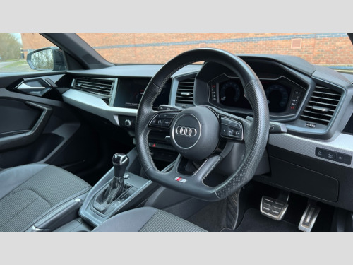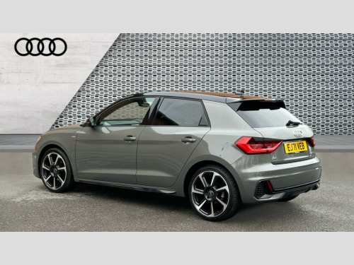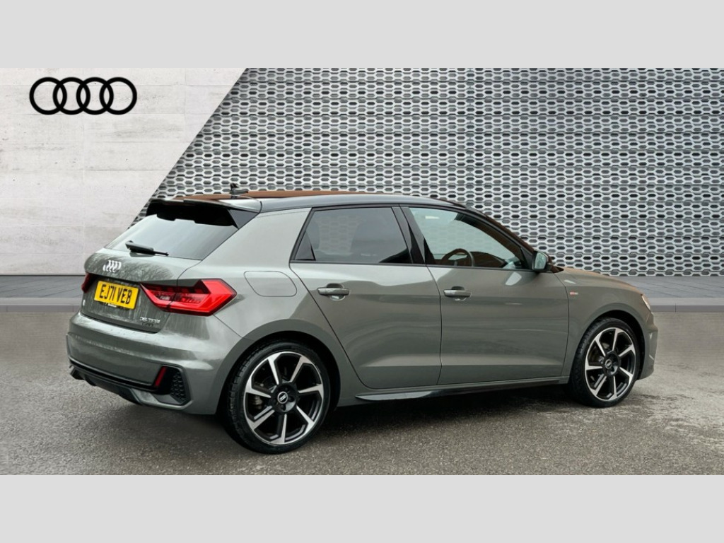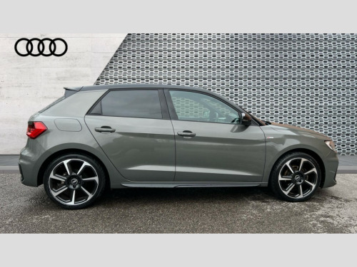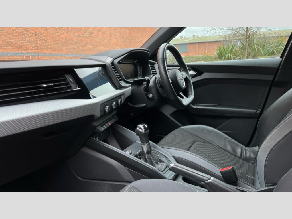 Audi A1 35 TFSI Black Edition 5dr S Tronic 10.25" Digital instrument cluster display classis style instrument dials + speed,odometer,time,outside temperature,telephone menu + fuel level warning, Audi connect safety emergency and service including E-call, Audi drive select - power steering assistance + engine + gear shift 3 preset modes (auto, dynamic, efficiency and an Individual mode), Audi smartphone interface with connect compatible smartphone via USB directly MMI display + Nav,music, third party apps controlled via MMI controller, Automatic start/stop system, Bluetooth interface, Cruise control, Driver's information system, Electromechanical power steering, Emergency services call system, Lane departure warning system, Service interval indicator, Speed limiter, Voice control system, Washer fluid level indicator, Sports suspension, 1 x SDXC card reader, 2 x USB type C connection points, DAB Digital radio, MMI radio plus with 8.8" colour MMI display screen and MMI touch, Auto dimming rear view mirror, Black door mirrors, Black side skirts, Body coloured bumpers, Door sill trims with aluminium inlays and logo, Electric front and rear windows, Electrically adjustable, heated, folding door mirrors with integrated LED side indicator, Front side air inlets in grained matt black and C frame in titanium black, Heat insulating glass windscreen and side windows, Heated rear windscreen, High level LED brake light, LED headlights with LED rear lights + dynamic rear indicators + headlight adjustment and high beam, turning light + LED daytime running lights, Radiator protective grille frame in matt aluminium silver, Rain and light sensors, Rear diffuser strip in matt titanium black, Rear fog lights, Rear side wing doors, Rear wing door, Rear wiper, Side front spoiler lips in grained matt black, 12V socket in centre console with two cup holders, 3 rear seats with headrests, 3 seat bench in 2nd row, 3 spoke flat bottomed multi-function plus leather steering wheel with S badging, grips in preforated leather, contrast stitching and paddle shift, 40:60 Split folding rear seat or folded fully, Black cloth headlining, Driver and passenger seat with manual height adjust with forward and backwards adjustment, Front and rear black floor mats with contrast stitching in fine silver, Front head restraints, Front passenger seat, Height and reach adjustable steering wheel, ISOFIX child seat mounting for front passenger and outer rear seats including top tether attachment point of outer rear seats, Leather gear knob with aluminium trim, Luggage compartment light with front and rear reading lights, Manually adjustable lumbar support in front seats, Stainless steel pedals, Black styling pack - A1 Sportback Black Edition, LED interior lighting pack - A1, Luggage compartment pack - A1, 3x3 point rear seatbelts, Audi pre-sense front with pedestrain and cyclist recognition, Brake assist function, Driver and front passenger airbag with front side and head airbags, Electronic Stability Control including ABS, EBD, ASR and EDL, Front passenger airbag deactivation switch, Hill hold assist, Manual rear child locks, Seatbelt height adjustment for front seats, Seatbelt monitoring, Tyre pressure warning light, Warning triangle and first aid kit, Anti theft alarm, Anti theft wheel bolts and loose wheel warning, Immobiliser, Remote central locking with 2 foldaway keys, Aluminium trim for control switches, air vents and digital instrument cluster, Silver grey inlays polygon structure in diamond paint finish, Structured grey accent areas including air vents, door handle recesses and centre console in quartz paint finish, 18" 7 spoke rotor design alloy wheels in gloss anthracite black, diamond cut finish