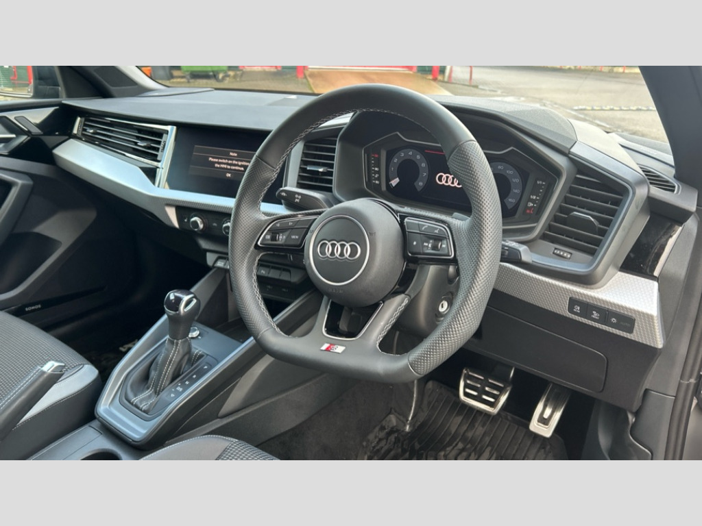 Audi A1 35 TFSI Black Edition 5dr S Tronic 10.25" Digital instrument cluster display classis style instrument dials + speed,odometer,time,outside temperature,telephone menu + fuel level warning, Advanced driver attention and drowsiness monitor, Audi connect emergency call and service, Audi drive select, Audi remote connect and control, Bluetooth interface, Camera based traffic sign recognition, Cruise control, Driver's information system, Electromechanical power steering, Lane departure warning system, Service interval indicator, Smartphone interface, Speed limiter, Start stop system with recuperation, Voice control system, Washer fluid level indicator, Sports suspension, 2 x USB type C connection points, DAB Digital radio, MMI radio plus with 10.1" colour MMI display screen and MMI touch, Auto dimming rear view mirror, Black door mirror housings, Black side skirts, Body coloured bumpers, Door sill trims with aluminium inlays and logo, Electric front and rear windows, Electrically adjustable, heated, folding door mirrors with integrated LED side indicator, Front side air inlets in grained matt black and C frame in anthracite black, Front wing badges, Headlight cleaning system, Heat insulating glass windscreen and side windows, Heated rear windscreen, High level LED brake light, LED daytime running lights, LED headlights with range control LED rear lights + dynamic rear indicators, Light and rain sensors, Privacy glass, Radiator grille and rear diffuser in matt anthracite black, Radiator protective grille frame in matt aluminium silver, Rear fog lights, Rear side wing doors, Rear wiper, Side front spoiler lips in grained matt black, 12V socket in centre console with two cup holders, 3 rear seats with headrests, 3 seat bench in 2nd row, 3 spoke flat bottomed multi-function plus leather steering wheel with S badging, grips in preforated leather, contrast stitching and paddle shift, 40:60 Split folding rear seat or fully collapsed, Black carpets, Black cloth headlining, Front and rear velour black floor mats with contrast stitching in fine silver, Front head restraints, Front passenger seat, Height and reach adjustable steering wheel, Interior lighting includes roof module, front and rear reading lights and right luggage compartment lighting, ISOFIX child seat mounting for front passenger and outer rear seats including top tether attachment point of outer rear seats, Leather gear knob with aluminium trim, Leather handbrake grip, Manual air conditioning, Manual height adjustable for driver and front passenger seat, Manually adjustable lumbar support in front seats, Stainless steel pedals, Ambient lighting package - A1, Black styling pack - A1 Sportback Black Edition, Luggage compartment pack - A1, Technology package - A1, 3x3 point rear seatbelts, Audi pre-sense front with pedestrain and cyclist recognition, Brake assist function, Driver and front passenger airbag with front side and head airbags, Electronic Stability Control including ABS, EBD, ASR and EDL, Front passenger airbag deactivation switch, Hill hold assist, Manual rear child locks, Seatbelt height adjustment for front seats, Seatbelt monitoring, Tyre pressure loss indicator, Warning triangle and first aid kit, Anti theft alarm, Anti theft wheel bolts, Immobiliser, Remote control key with safelock, Aluminium trim for control switches, air vents and digital instrument cluster, Black dashboard, Silver grey inlays polygon structure in diamond paint finish, Structured grey accent surfaces insert of air vents, interior door handle recesses and centre console in quartz paint finish