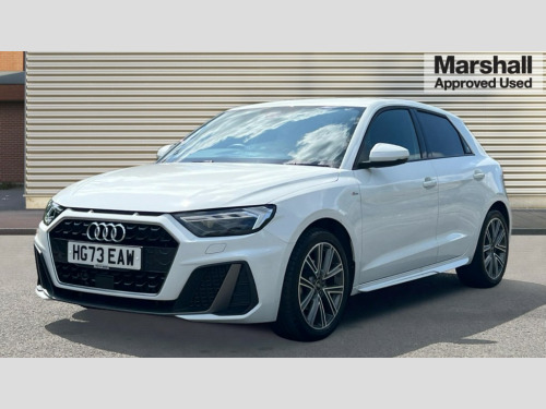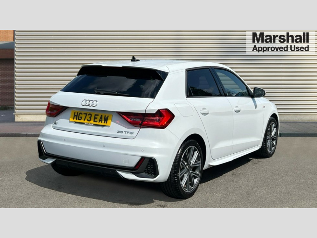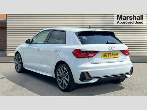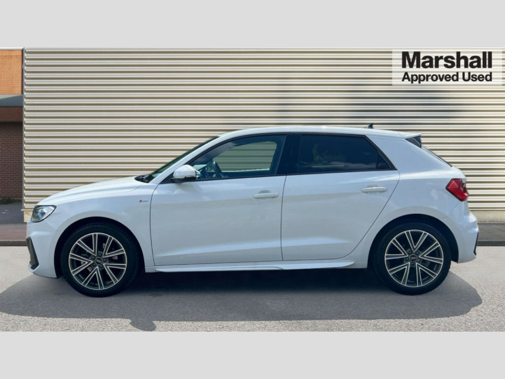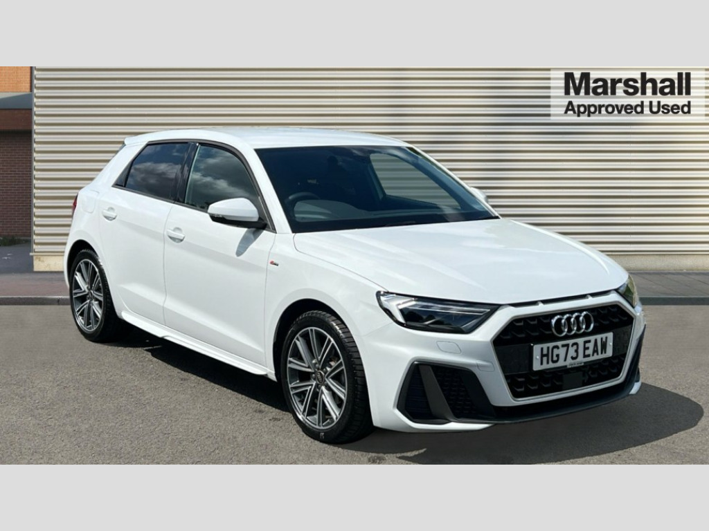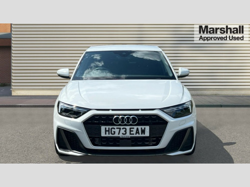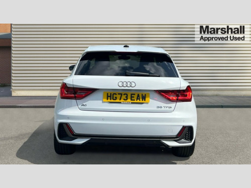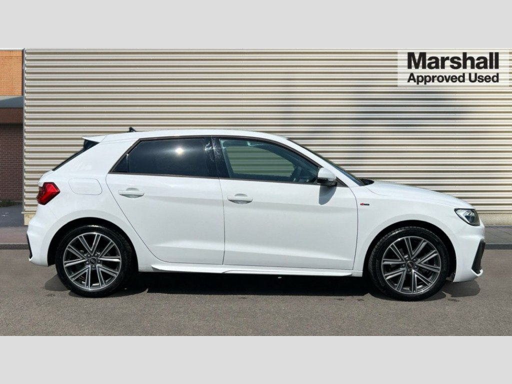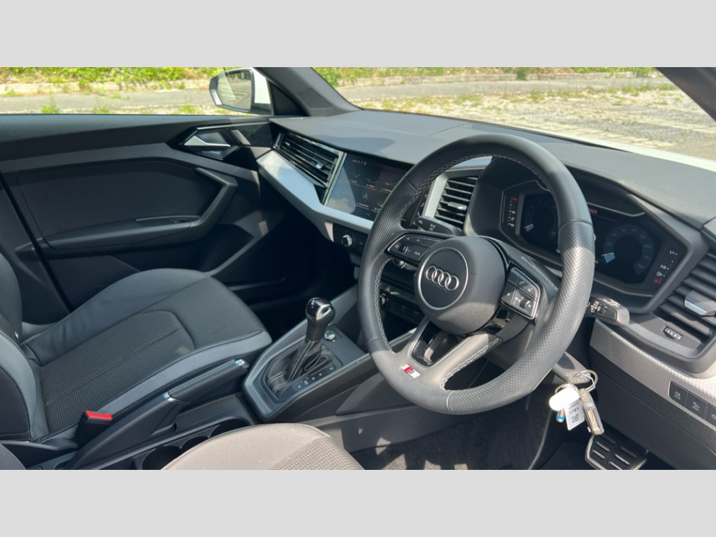 Audi A1 35 TFSI S Line 5dr S Tronic 10.25" Digital instrument cluster display classis style instrument dials + speed,odometer,time,outside temperature,telephone menu + fuel level warning, Audi drive select - power steering assistance + engine + gear shift 3 preset modes (auto, dynamic, efficiency and an Individual mode), Audi smartphone interface with connect compatible smartphone via USB directly MMI display + Nav,music, third party apps controlled via MMI controller, Automatic start/stop system, Bluetooth interface, Cruise control, Driver's information system, Electromechanical power steering, Emergency e-call, Lane departure warning system, Rear parking sensor, Service interval indicator, Speed limiter, Voice control system, Washer fluid level indicator, Sports suspension, 2 x USB type C connection points, 6 passive loudspeakers, DAB Digital radio, MMI radio plus with 10.1" colour MMI display screen and MMI touch, Auto dimming rear view mirror, Body coloured door mirrors, Door sills with aluminium inlays and S Line logo, Electric front and rear windows, Electrically adjustable, heated, folding door mirrors with integrated LED side indicator, Front side air inlets in grained matt black and C frame in anthracite black, Heat insulating glass windscreen and side windows, Heated rear windscreen, High level LED brake light, LED headlights with LED rear lights + dynamic rear indicators + headlight adjustment and high beam, turning light + LED daytime running lights, Privacy glass, Radiator grille and rear diffuser in matt anthracite black, Radiator protective grille frame in matt aluminium silver, Rain and light sensors, Rear fog lights, Rear side wing doors, Rear wiper, S line badges on front wings, Side front spoiler lips in grained matt black, 12V socket in centre console with two cup holders, 3 rear seats with headrests, 3 seat bench in 2nd row, 3 spoke leather multi-function plus steering wheel features S badging and grips in perforated leather with contrast stitching, 40:60 Split folding rear seat or folded fully, Black cloth headlining, Driver and passenger seat with manual height adjust with forward and backwards adjustment, Front and rear black floor mats with contrast stitching in fine silver, Front head restraints, Front passenger seat, Height and reach adjustable steering wheel, ISOFIX child seat mounting for front passenger and outer rear seats including top tether attachment point of outer rear seats, Leather gear knob with aluminium trim, Leather handbrake grip, Luggage compartment light with front and rear reading lights, Manual air conditioning, Manually adjustable lumbar support in front seats, Stainless steel pedals, LED interior lighting pack - A1, Luggage compartment pack - A1, S line exterior styling pack - A1 Sportback, 3x3 point rear seatbelts, Audi pre-sense front with pedestrain and cyclist recognition, Brake assist function, Driver and front passenger airbag with front side and head airbags, Electronic Stability Control including ABS, EBD, ASR and EDL, Front passenger airbag deactivation switch, Hill hold assist, Manual rear child locks, Seatbelt height adjustment for front seats, Seatbelt monitoring, Tyre pressure warning light, Warning triangle and first aid kit, Anti theft alarm, Anti theft wheel bolts and loose wheel warning, Immobiliser, Remote central locking with 2 foldaway keys, Aluminium trim for control switches, air vents and digital instrument cluster, Black dashboard, Silver grey inlays polygon structure in diamond paint finish, Structured grey accent areas including air vents, door handle recesses and centre console in quartz paint finish