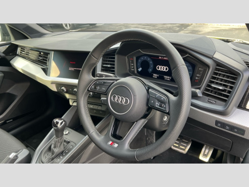 Audi A1 35 TFSI S Line 5dr S Tronic 10.25" Digital instrument cluster display classis style instrument dials + speed,odometer,time,outside temperature,telephone menu + fuel level warning, Advanced driver attention and drowsiness monitor, Audi connect emergency call and service, Audi drive select, Audi remote connect and control, Audi smartphone interface, Bluetooth interface, Camera based traffic sign recognition, Cruise control, Driver's information system, Electromechanical power steering, Lane departure warning system, Rear parking sensor, Service interval indicator, Speed limiter, Start stop system with recuperation, Voice control system, Washer fluid level indicator, Sports suspension, 2 x USB type C connection points, 6 loudspeakers, DAB Digital radio, MMI radio plus with 10.1" colour MMI display screen and MMI touch, Auto dimming rear view mirror, Body coloured door mirrors, Door sill trims with aluminium inlays and S line logo in front, Electric front and rear windows, Electrically adjustable, heated, folding door mirrors with integrated LED side indicator, Front side air inlets in grained matt black and C frame in anthracite black, Headlight cleaning system, Heat insulating glass windscreen and side windows, Heated rear windscreen, High level LED brake light, LED daytime running lights, LED headlights with range control LED rear lights + dynamic rear indicators, Privacy glass, Radiator grille and rear diffuser in matt anthracite black, Radiator protective grille frame in matt aluminium silver, Rain and light sensors, Rear fog lights, Rear side wing doors, Rear wiper, S line badges on front wings, Side front spoiler lips in grained matt black, 12V socket in centre console with two cup holders, 3 rear seats with headrests, 3 seat bench in 2nd row, 3 spoke leather multi-function plus steering wheel features S badging and grips in perforated leather with contrast stitching, 40:60 Split folding rear seat or fully collapsed, Black cloth headlining, Front and rear velour black floor mats with contrast stitching in fine silver, Front head restraints, Front passenger seat, Height and reach adjustable steering wheel, Interior lighting includes roof module, front and rear reading lights and right luggage compartment lighting, ISOFIX child seat mounting for front passenger and outer rear seats including top tether attachment point of outer rear seats, Leather gear knob with aluminium trim, Leather handbrake grip, Manual air conditioning, Manual height adjustable for driver and front passenger seat, Manually adjustable lumbar support in front seats, Stainless steel pedals, Ambient lighting package - A1, Luggage compartment pack - A1, S line exterior styling pack - A1 Sportback, 3x3 point rear seatbelts, Audi pre-sense front with pedestrain and cyclist recognition, Brake assist function, Driver and front passenger airbag with front side and head airbags, Electronic Stability Control including ABS, EBD, ASR and EDL, Front passenger airbag deactivation switch, Hill hold assist, Manual rear child locks, Seatbelt height adjustment for front seats, Seatbelt monitoring, Tyre pressure loss indicator, Warning triangle and first aid kit, Anti theft alarm, Anti theft wheel bolts, Immobiliser, Remote control key with safelock, Aluminium trim for control switches, air vents and digital instrument cluster, Black dashboard, Silver grey inlays polygon structure in diamond paint finish, Structured grey accent surfaces insert of air vents, interior door handle recesses and centre console in quartz paint finish