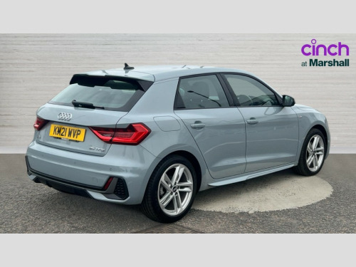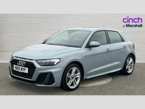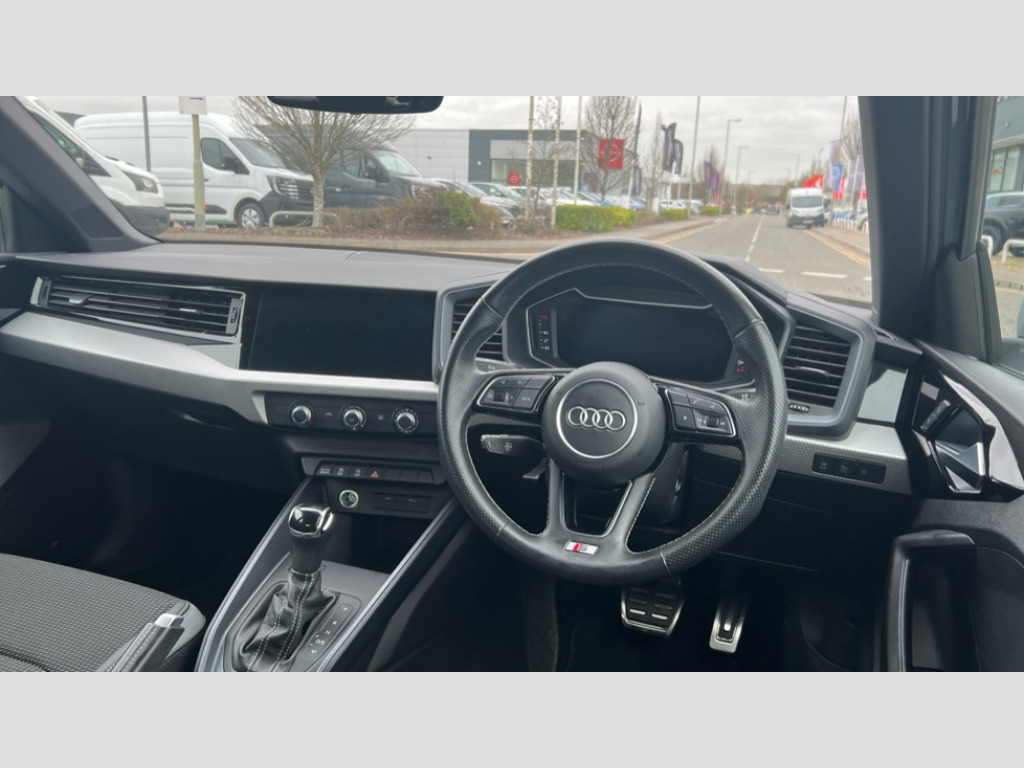 Audi A1 35 TFSI S Line 5dr S Tronic 10.25" Digital instrument cluster display classis style instrument dials + speed,odometer,time,outside temperature,telephone menu + fuel level warning, Audi connect safety emergency and service including E-call, Audi drive select - power steering assistance + engine + gear shift 3 preset modes (auto, dynamic, efficiency and an Individual mode), Audi smartphone interface with connect compatible smartphone via USB directly MMI display + Nav,music, third party apps controlled via MMI controller, Automatic start/stop system, Bluetooth interface, Cruise control, Driver's information system, Electromechanical power steering, Lane departure warning system, Service interval indicator, Speed limiter, Voice control system, Washer fluid level indicator, Sports suspension, 1 x SDXC card reader, 2 x USB type C connection points, DAB Digital radio, MMI radio plus with 8.8" colour MMI display screen and MMI touch, Auto dimming rear view mirror, Body coloured door mirrors, Door sills with aluminium inlays and S Line logo, Electric front and rear windows, Electrically adjustable, heated, folding door mirrors with integrated LED side indicator, Front side air inlets in grained matt black and C frame in titanium black, Heat insulating glass windscreen and side windows, Heated rear windscreen, LED headlights with LED rear lights + dynamic rear indicators + headlight adjustment and high beam, turning light + LED daytime running lights, Radiator grille and rear diffuser in matt titanium black, Radiator protective grille frame in matt aluminium silver, Rain and light sensors, Rear fog lights, Rear wiper, S line badges on front wings, Side front spoiler lips in grained matt black, 12V socket in centre console with two cup holders, 3 rear seats with headrests, 40:60 Split folding rear seat or folded fully, Black cloth headlining, Driver and passenger seat with manual height adjust with forward and backwards adjustment, Front and rear black floor mats with contrast stitching in fine silver, Front head restraints, Height and reach adjustable steering wheel, ISOFIX child seat mounting for front passenger and outer rear seats including top tether attachment point of outer rear seats, Leather gear knob with aluminium trim, Luggage compartment light with front and rear reading lights, Manually adjustable lumbar support in front seats, Stainless steel pedals, LED interior lighting pack - A1, Luggage compartment pack - A1, S line exterior styling pack - A1 Sportback, 3x3 point rear seatbelts, Audi pre-sense front with pedestrain and cyclist recognition, Brake assist function, Driver and front passenger airbag with front side and head airbags, Electronic Stability Control including ABS, EBD, ASR and EDL, Front passenger airbag deactivation switch, Hill hold assist, Seatbelt height adjustment for front seats, Seatbelt monitoring, Tyre pressure warning light, Warning triangle and first aid kit, Anti theft alarm, Anti theft wheel bolts and loose wheel warning, Immobiliser, Remote central locking with 2 foldaway keys, Aluminium trim for control switches, air vents and digital instrument cluster, Silver grey inlays polygon structure in diamond paint finish, Structured grey accent areas including air vents, door handle recesses and centre console in quartz paint finish