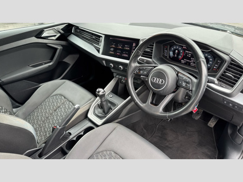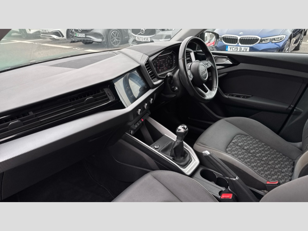 Audi A1 35 TFSI Sport 5dr 10.25" Digital instrument cluster display screen, Audi connect safety emergency and service including E-call, Audi drive select, Audi smartphone interface, Automatic start/stop system, Bluetooth interface, Driver's information system, Electromechanical power steering, Lane departure warning system, Service interval indicator, Speed limiter, Voice control system, Washer fluid level indicator, Dynamic suspension, 1 x SDXC card reader, 1 x USB type C and 1 USB type A charging points, Audi music interface, Bluetooth audio streaming, DAB Digital radio, MMI radio plus with 8.8" colour MMI display screen and MMI touch, Auto dimming rear view mirror, Body coloured bumpers, Body coloured door mirrors, Electric front and rear windows, Front side air inlets in grained matt black and C frame in titanium black, Heat insulating glass windscreen and side windows, Heated rear windscreen, LED headlights with LED rear lights + dynamic rear indicators, Radiator grille in matt titanium black, Radiator protective grille frame in matt aluminium silver, Rain and light sensors, Rear fog lights, Rear wiper, Scandium grey tailpipe trim, Side front spoiler lips in grained matt black, Titanium black matt diffuser, 12V socket in centre console with two cup holders, 3 rear seats, Door sills trims with aluminium inlays, Driver and passenger seat with manual height adjust with forward and backwards adjustment, Front head restraints, Front/rear floor mats, Height and reach adjustable steering wheel, Illuminated glovebox, ISOFIX child seat mounting in front passenger and rear outer seats, Leather gear knob with aluminium trim, Leatherette handbrake grip, Luggage compartment light with front and rear reading lights, Lumbar adjustment for front seats, Novum cloth upholstery with front sport seats, Rear head restraints, Split folding rear seats, Titanium grey cloth headlining, 3x3 point rear seatbelts, Audi pre-sense front with pedestrain and cyclist recognition, Brake assist function, Driver and front passenger airbag with front side and head airbags, Electronic Stability Control including ABS, EBD, ASR and EDL, Front and rear seatbelt reminder, Front passenger airbag deactivation switch, Hill hold assist, Seatbelt height adjustment for front seats, Seatbelt monitoring, Tyre pressure warning light, Warning triangle and first aid kit, Anti theft alarm, Anti theft wheel bolts and loose wheel warning, Immobiliser, Locking wheel bolts, Remote central locking with 2 remote folding keys, Aluminium trim for control switches, air vents and digital instrument cluster, Silver grey accent areas including air vents, door handle recesses and centre console in diamond paint finish, Slate grey inlays polygon structure in fine paint finish